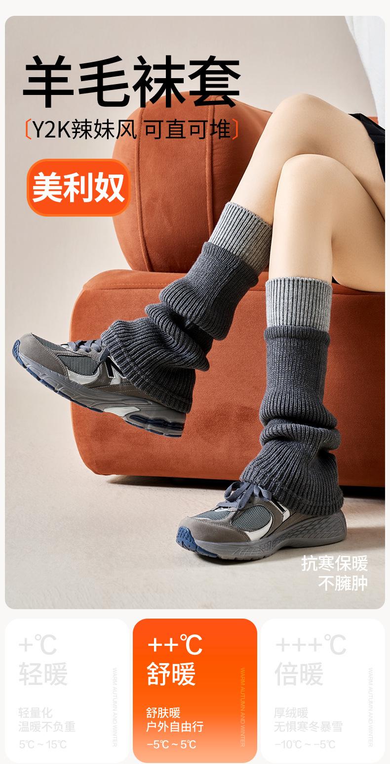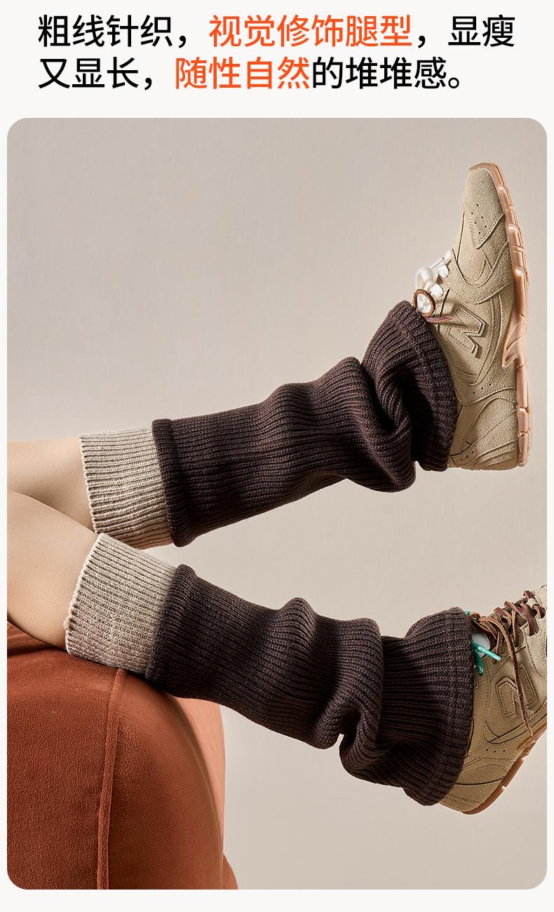 Compra Calentadores de Pierna de Lana Merino para Mujer Bloque de Color Tejido Grueso Cálidos Calcetines Arrugados ins Tendencia Estilo Universitario Y2K Calcetines Zhuji al por mayor en Joom.pro