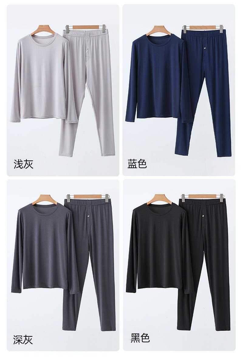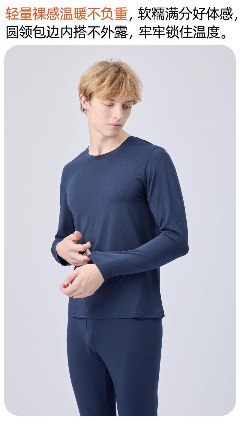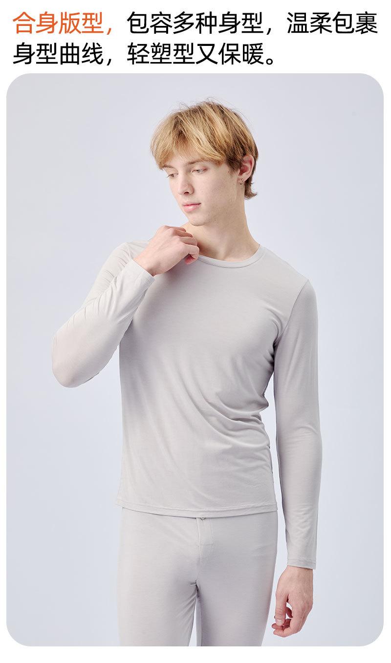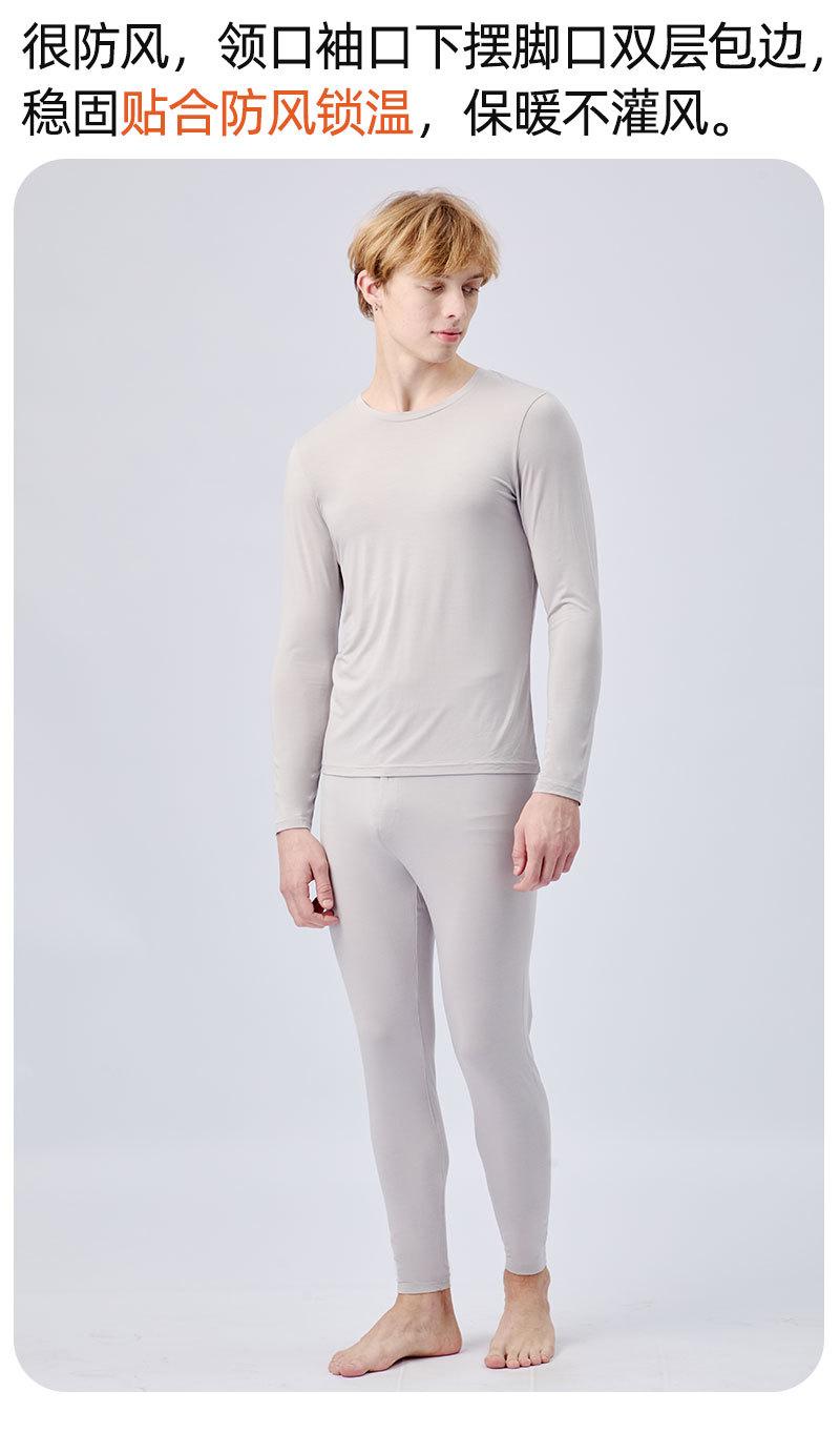 Conjunto de Ropa Interior Cálida de Modal para Hombre Otoño Invierno Capa Base Delgada Clase A Cuello Redondo Ropa de Otoño Pantalones de Otoño