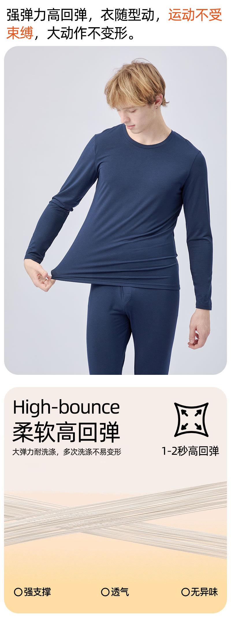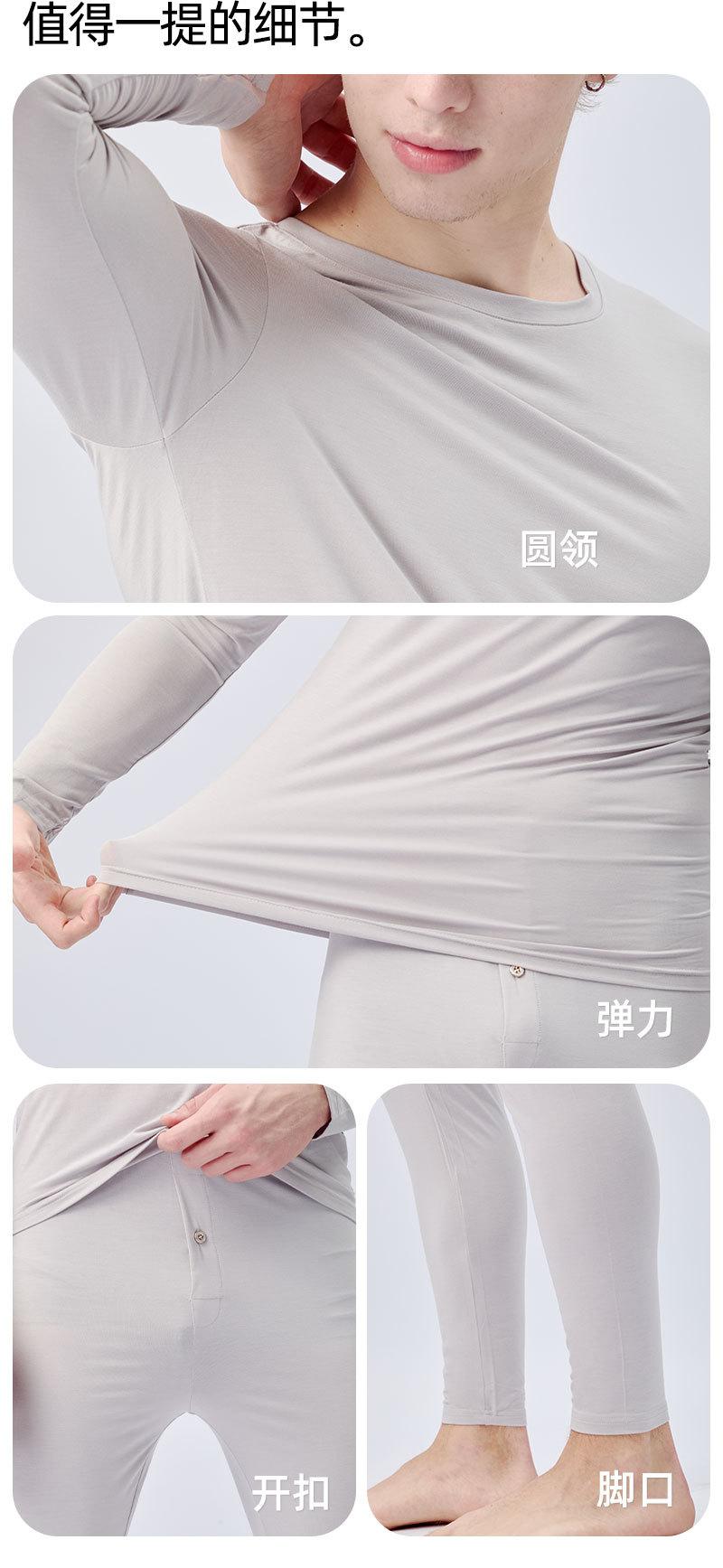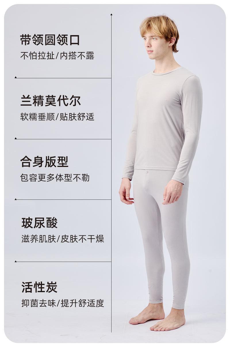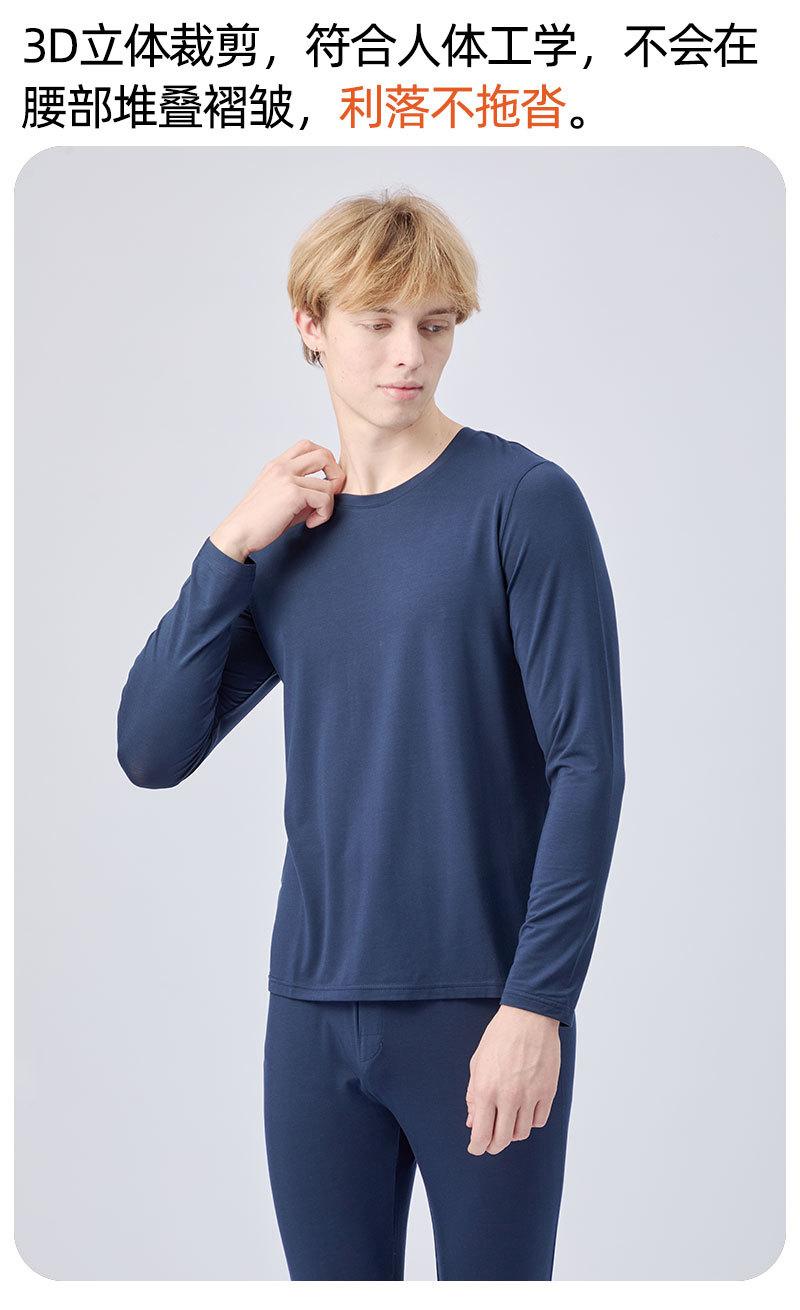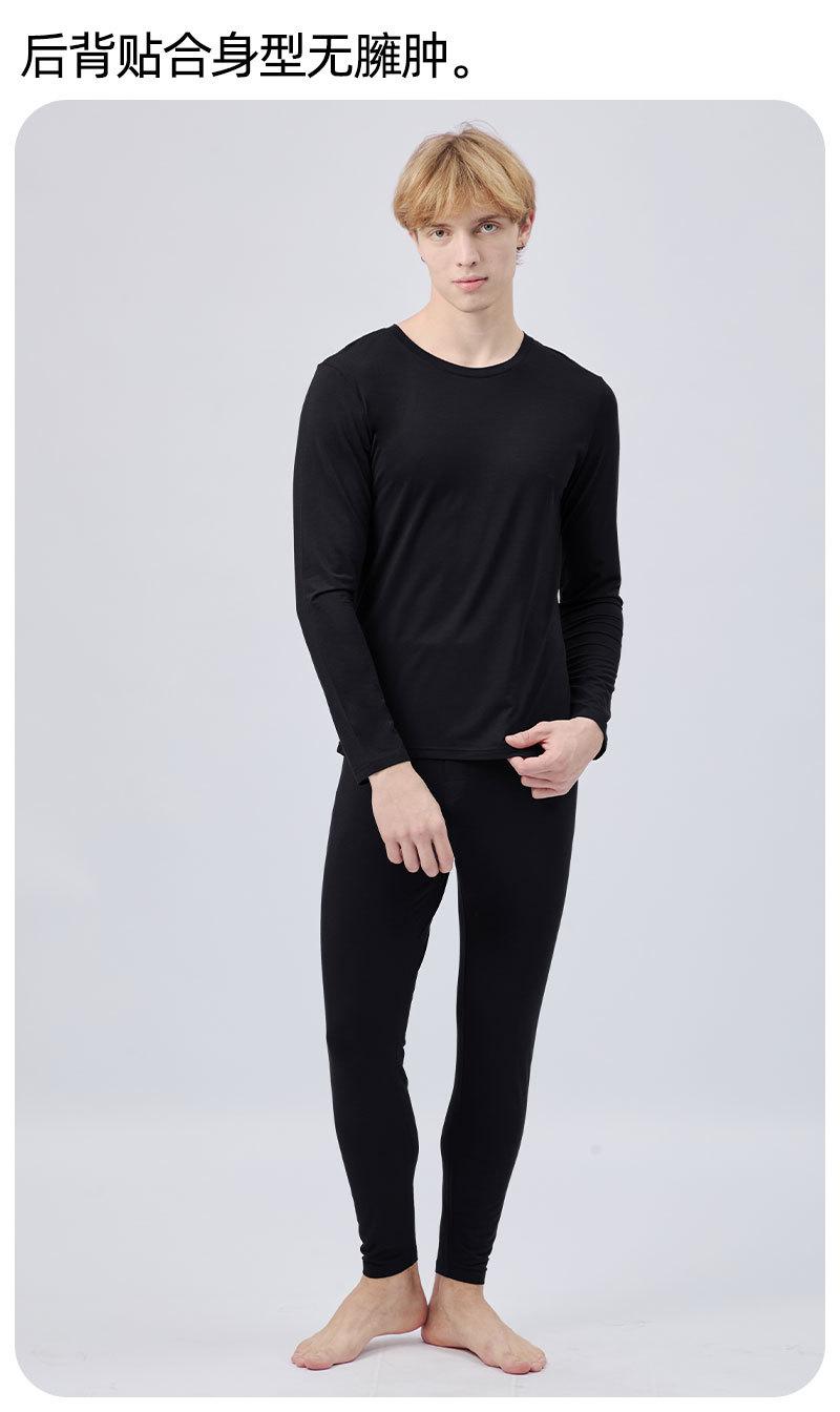 Conjunto de Ropa Interior Cálida de Modal para Hombre Otoño Invierno Capa Base Delgada Clase A Cuello Redondo Ropa de Otoño Pantalones de Otoño