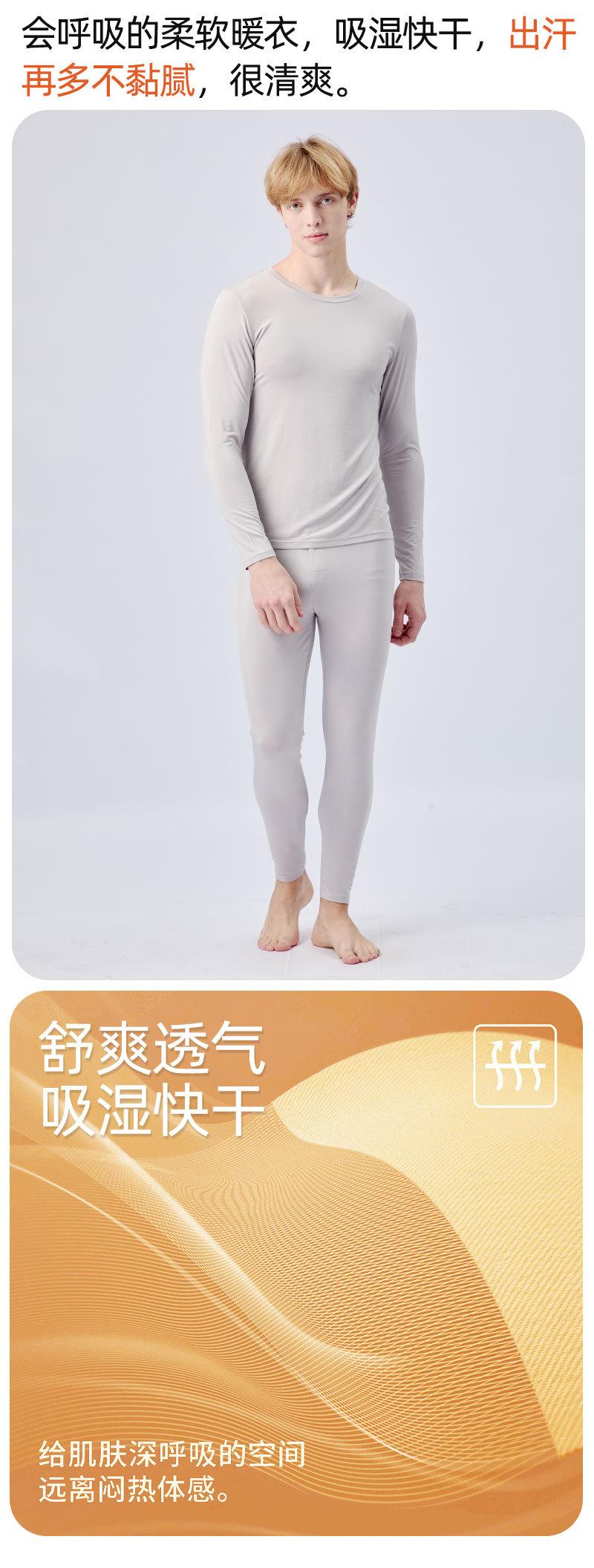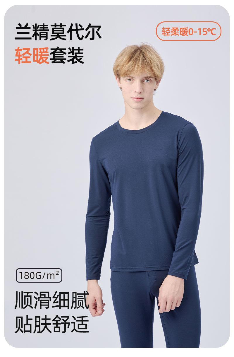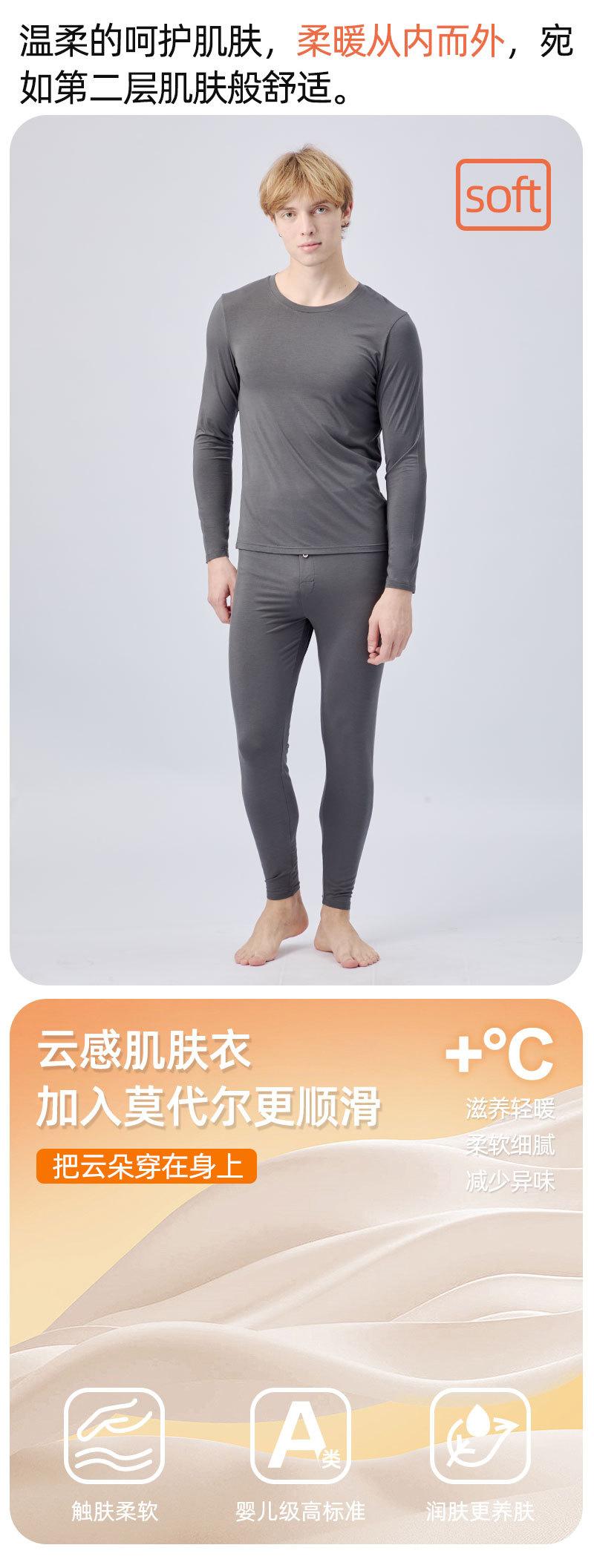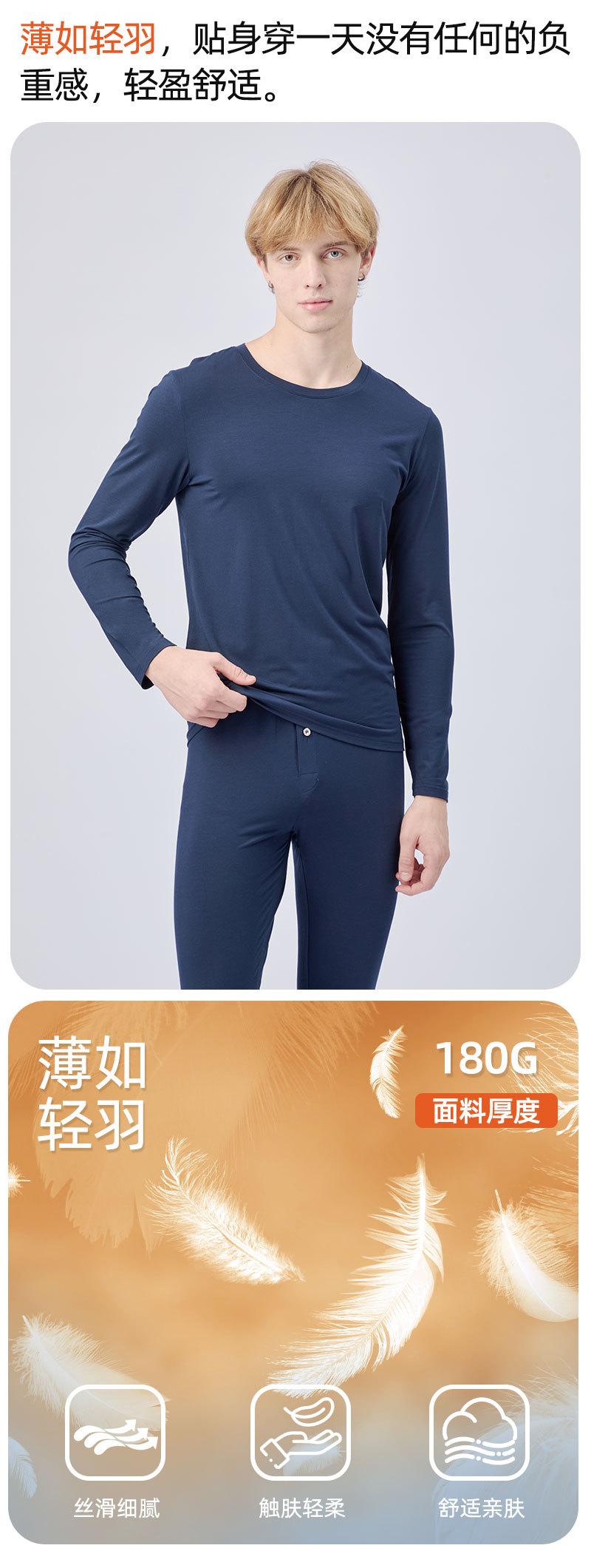 Conjunto de Ropa Interior Cálida de Modal para Hombre Otoño Invierno Capa Base Delgada Clase A Cuello Redondo Ropa de Otoño Pantalones de Otoño