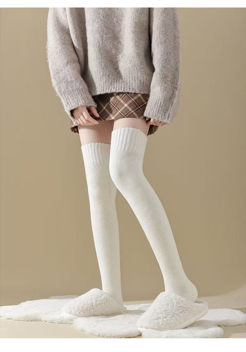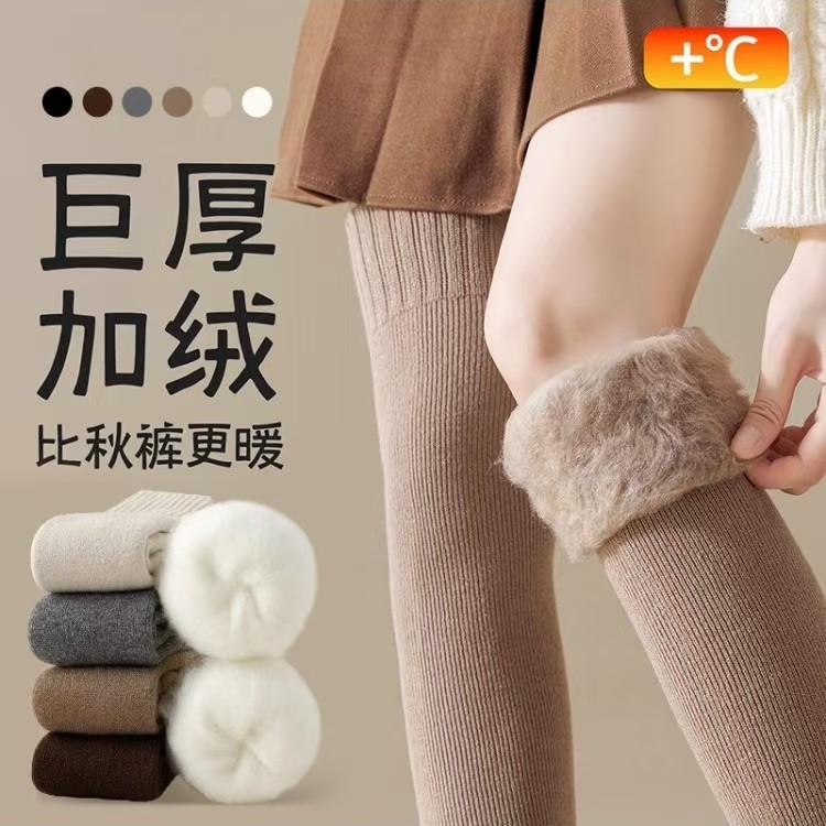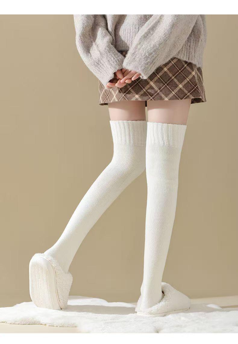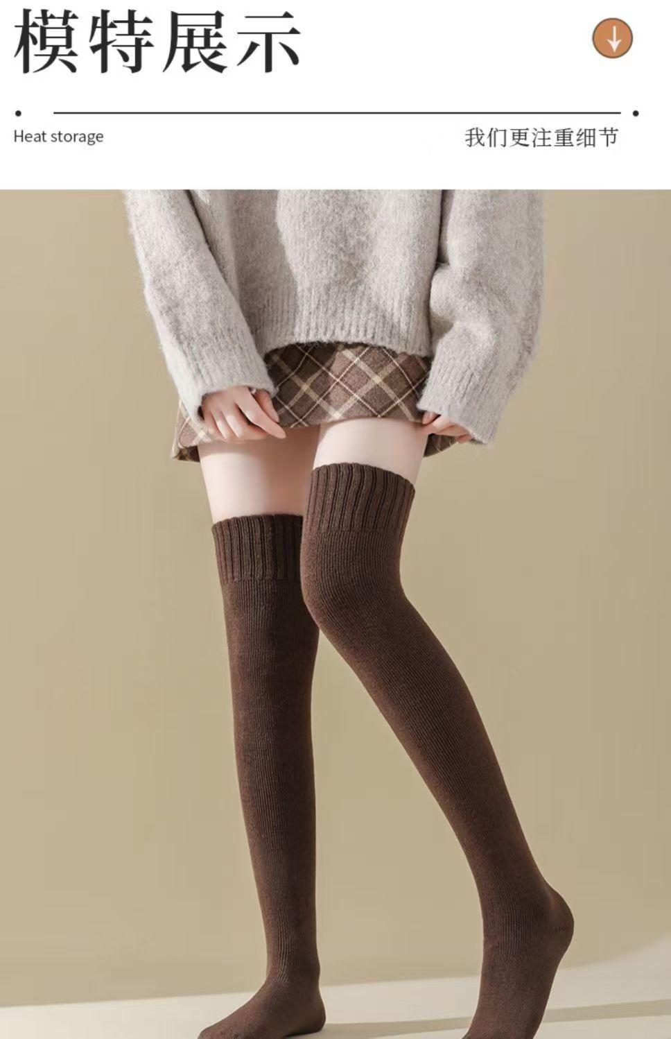 Calcetines de Felpa por Encima de la Rodilla para Mujer Estilo Otoño e Invierno Calcetines Largos Cálidos con Forro Polar Espesor Rodilleras Calcetines Largos hasta el Muslo de Tubo Alto Invierno