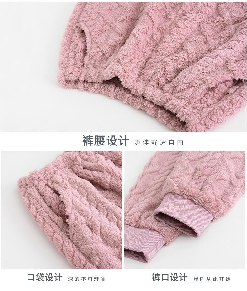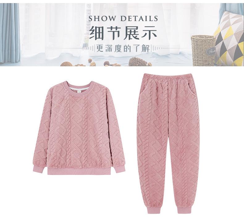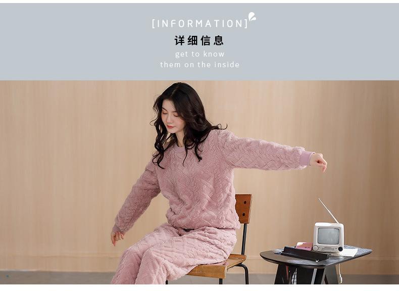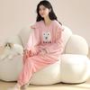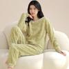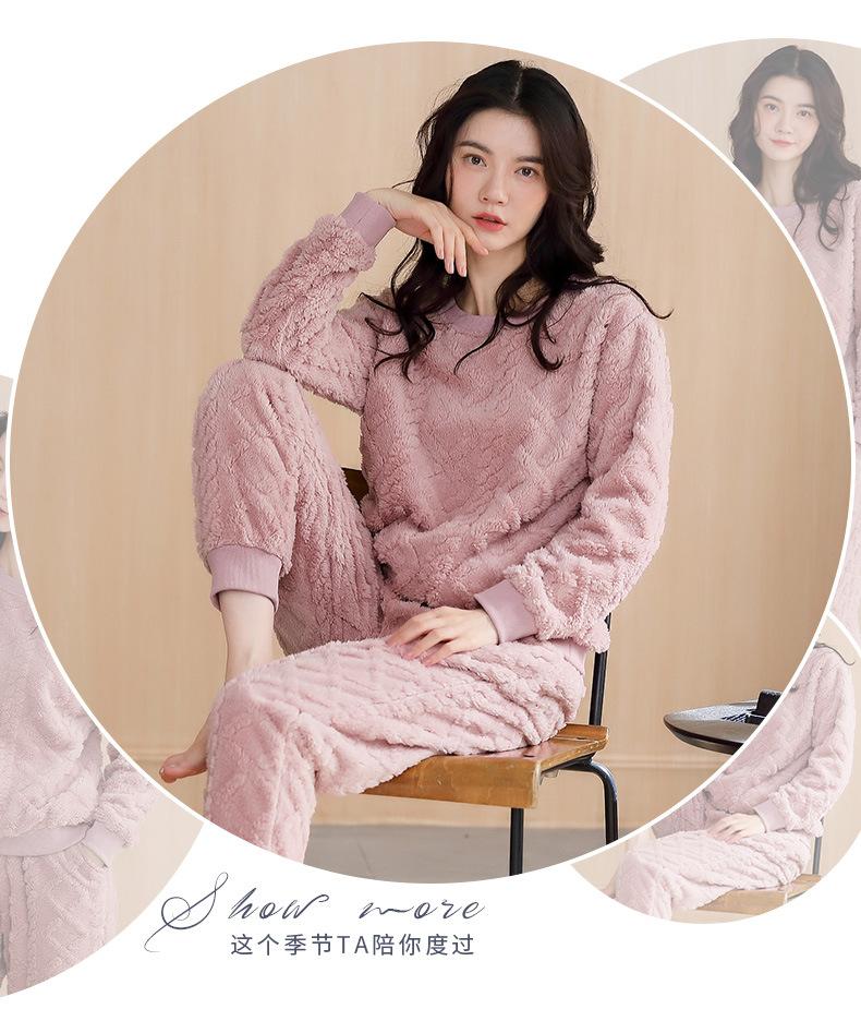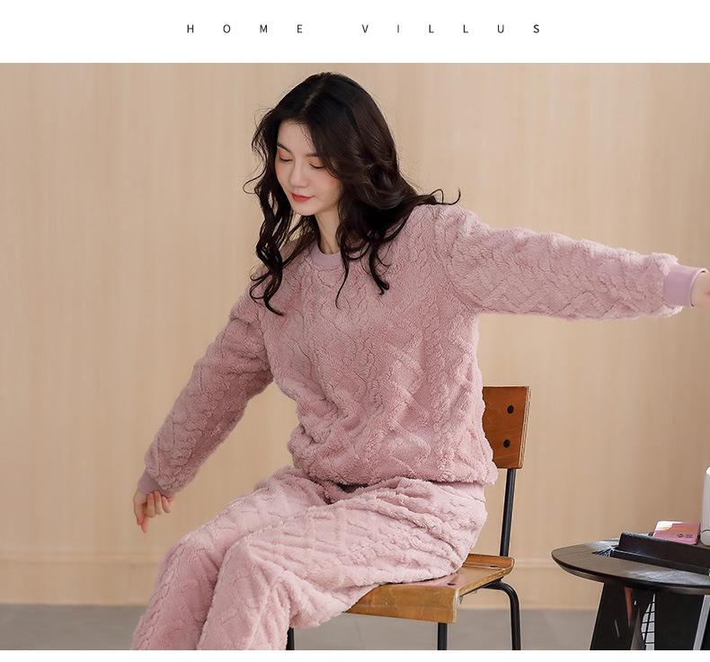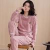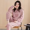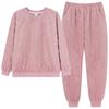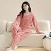Pijama de Invierno de Forro Polar Coral para Mujer Otoño Invierno Grueso Plus Terciopelo Cuello Redondo Rosa Talla Grande Franela Ropa de Casa Conjunto de Mujer