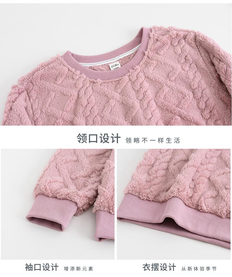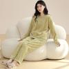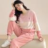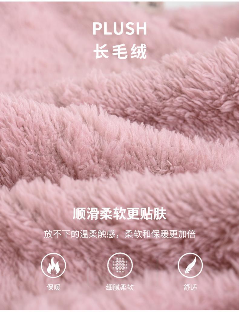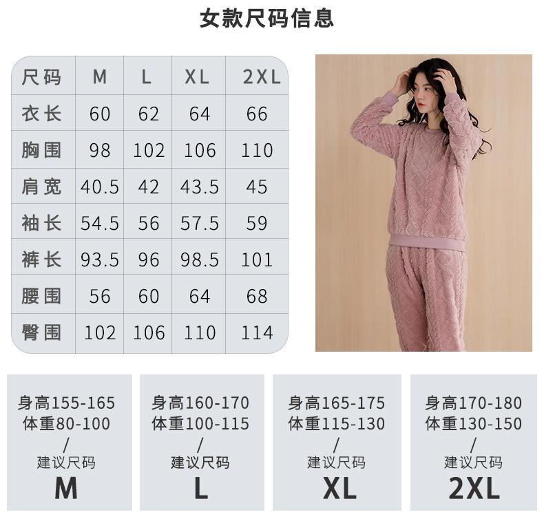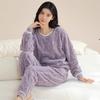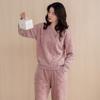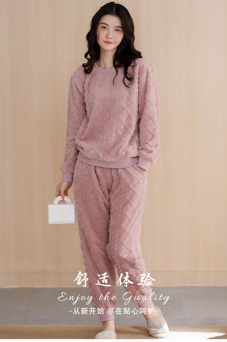 Pijama de Invierno de Forro Polar Coral para Mujer Otoño Invierno Grueso Plus Terciopelo Cuello Redondo Rosa Talla Grande Franela Ropa de Casa Conjunto de Mujer