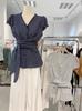 Estilo coreano versión coreana ropa de mujer 2025 verano cuadros cuello en V entallada adelgazante camisa top