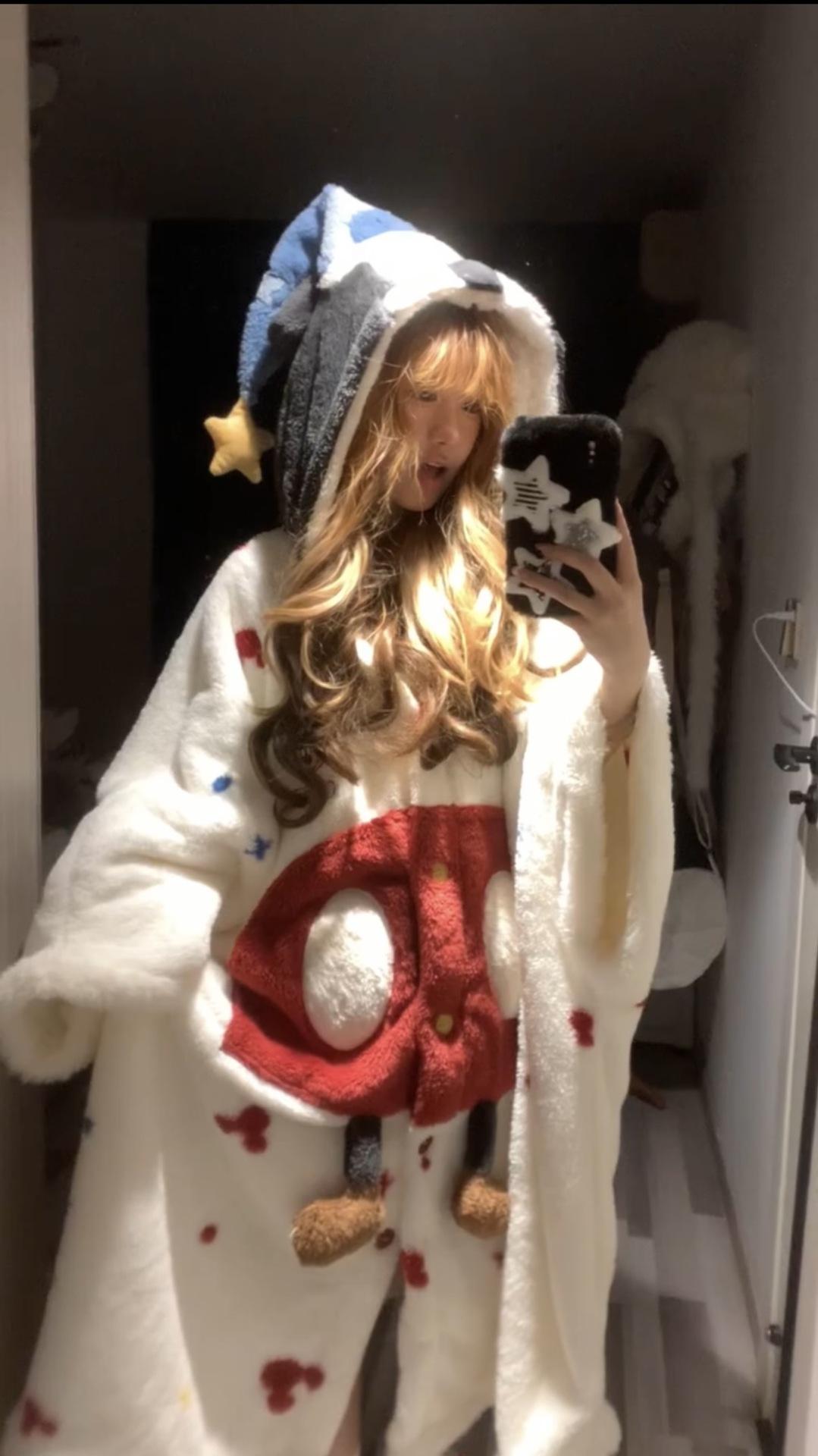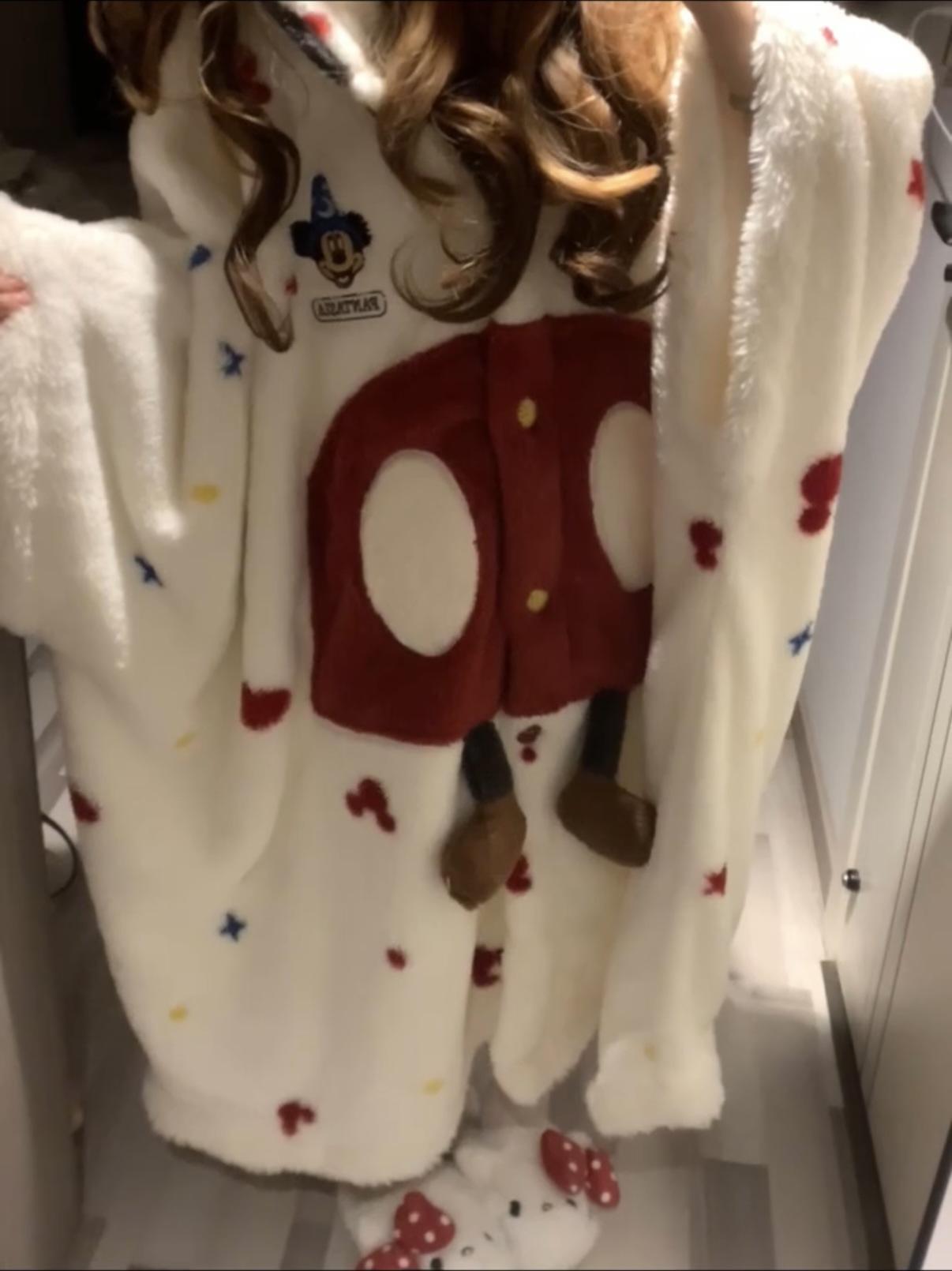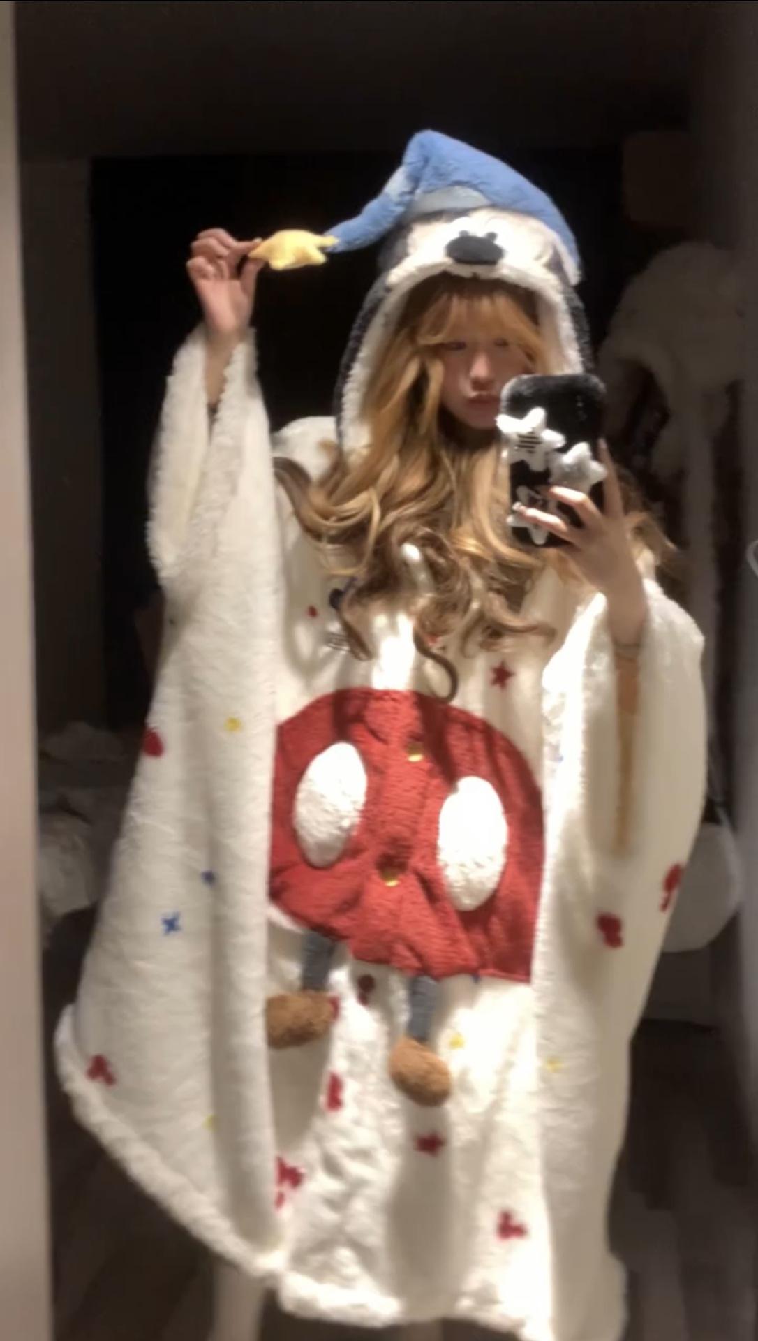 Pijama de Noche de Felpa de Dibujos Animados Lindo para Niña Ropa de Dormir para Mujer Otoño e Invierno Nuevo Polar Coral Ropa de Casa Bata Gruesa con Capucha