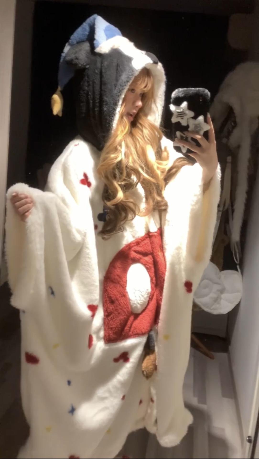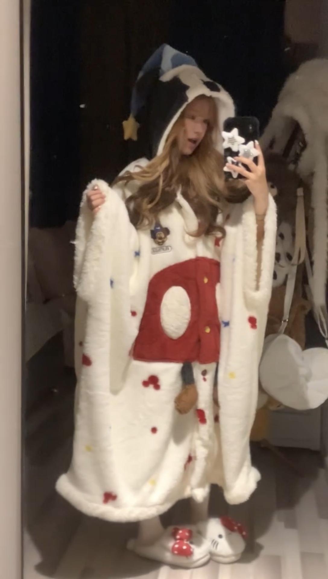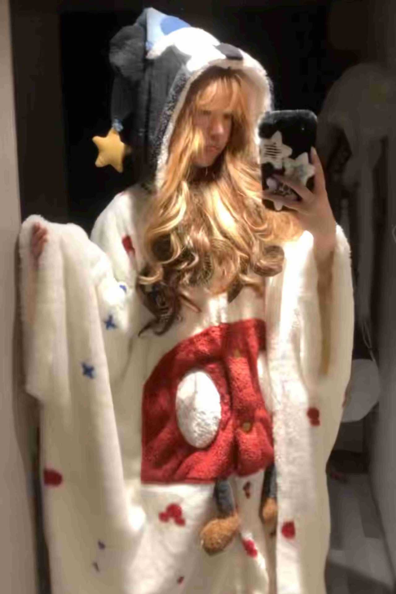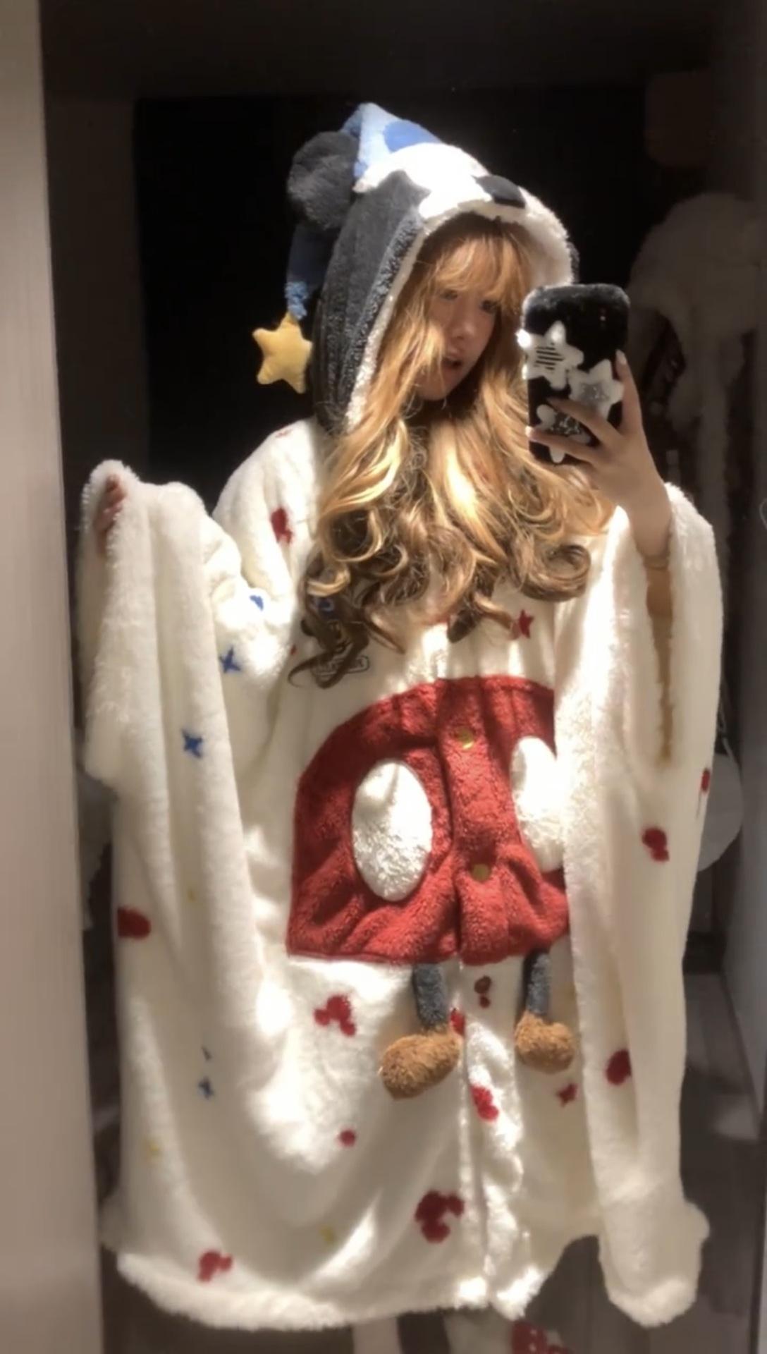 Pijama de Noche de Felpa de Dibujos Animados Lindo para Niña Ropa de Dormir para Mujer Otoño e Invierno Nuevo Polar Coral Ropa de Casa Bata Gruesa con Capucha