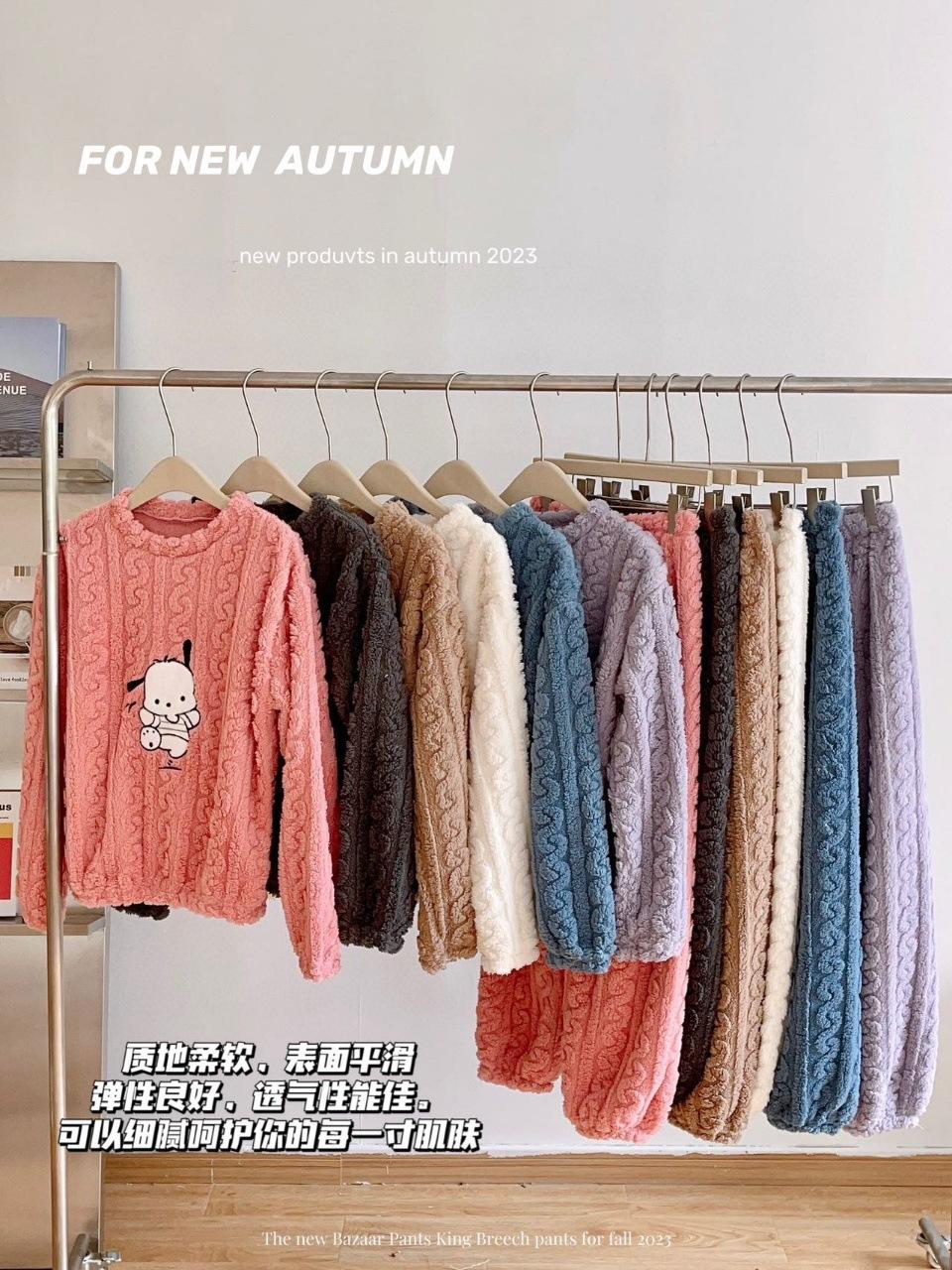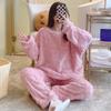 Conjunto de pijama de terciopelo de algodón Shu cuidadosamente seleccionado para mujer, otoño e invierno, grueso y cálido, de manga larga, para estar en casa de forro polar de coral, se puede usar en exteriores