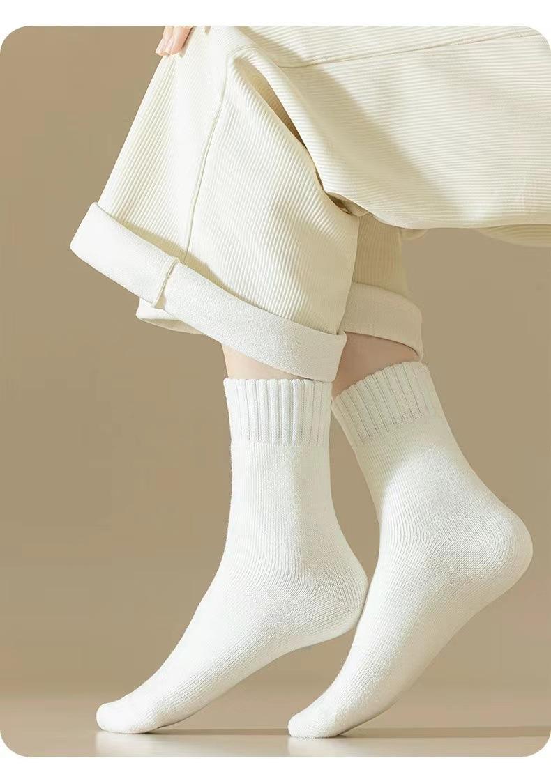 Calcetines de Lana Mujer Otoño Invierno Más Terciopelo Engrosados Calcetines de Piso Cálidos Calcetines de Cachemira Calcetines hasta la Rodilla Calcetines para Casa para Dormir Venta al por Mayor
