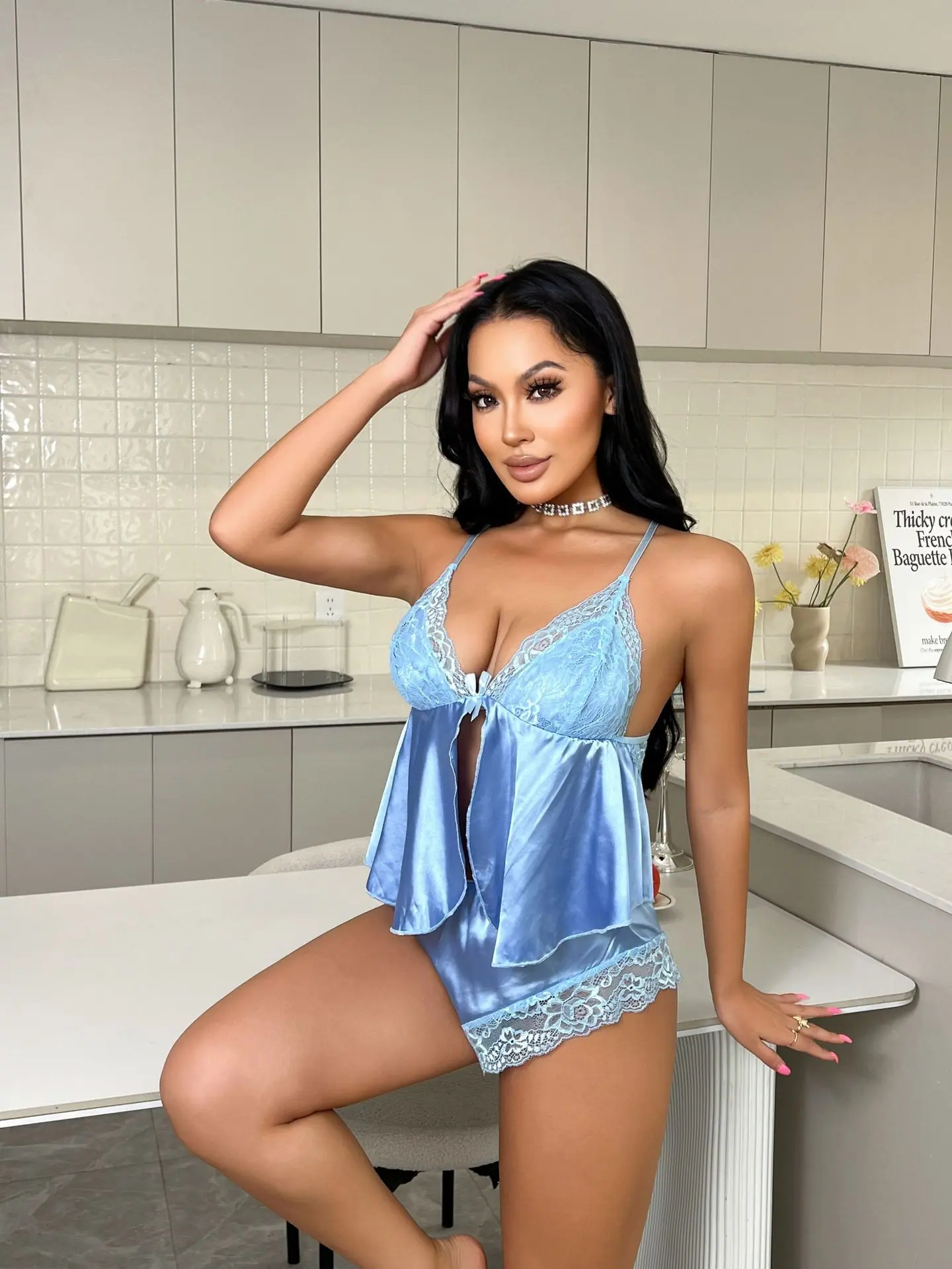 Nuevo Conjunto de Camisola de Encaje Europeo y Americano y Shorts de Pijama Cuello en V Puro y Sexy Femenino Conjunto para el Hogar Pijama Erótico