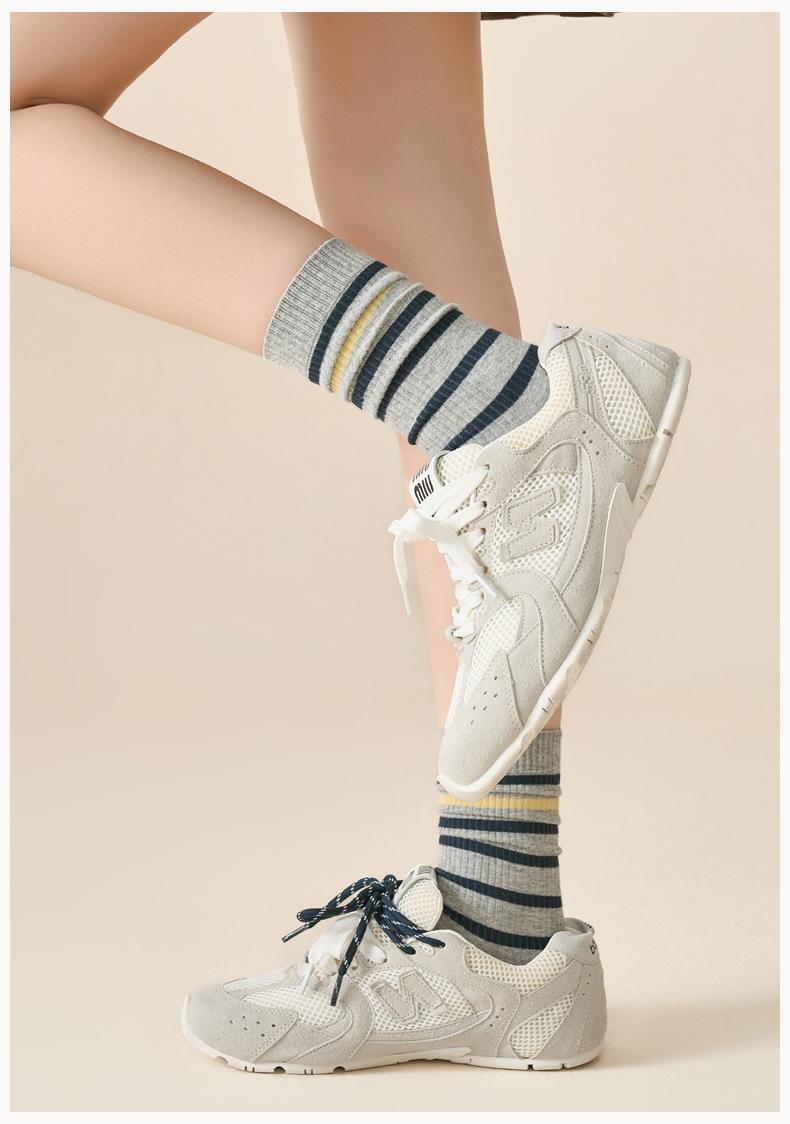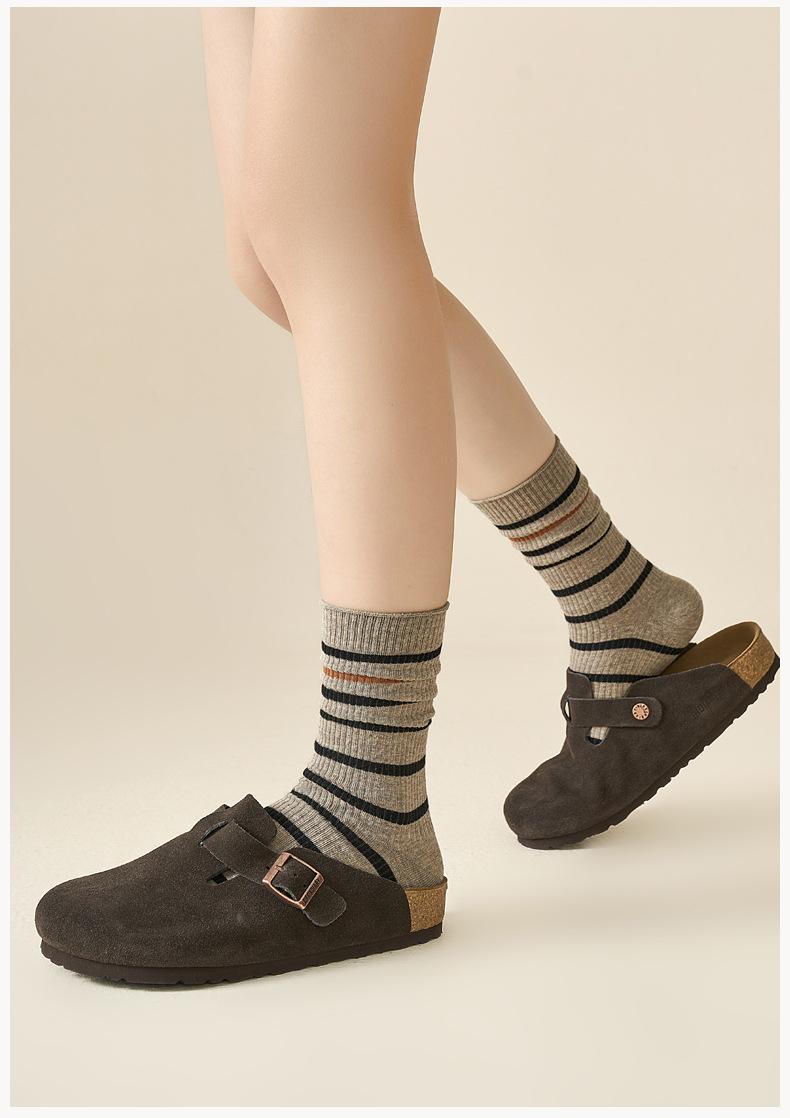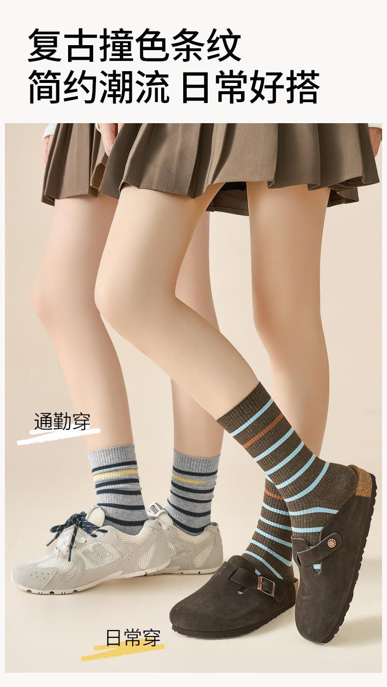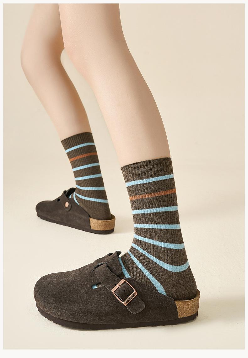 Calcetines de rayas con bloques de color para mujer, de algodón, absorbe el sudor, transpirables, elásticos, sin costuras, de media caña, a la moda, amigables con la piel, cómodos, calcetines holgados