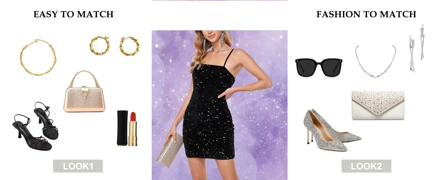 Vestido Sexy Brillante con Diseño Único: Este sexy vestido corto te da una figura de reloj de arena. Vestido mini bodycon de noche con tirantes ajustables, la longitud del tirante se puede ajustar libremente para satisfacer diferentes necesidades. Este vestido corto mini bodycon de fiesta es juguetón y coqueto.