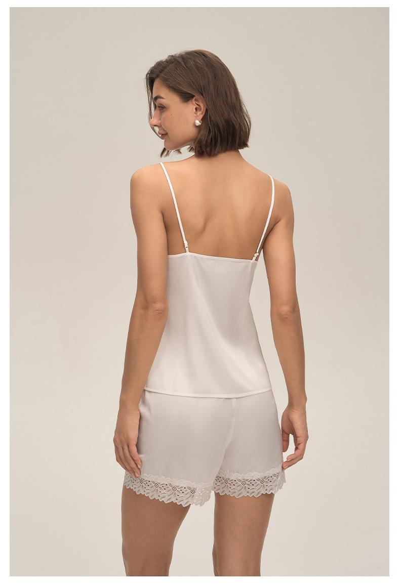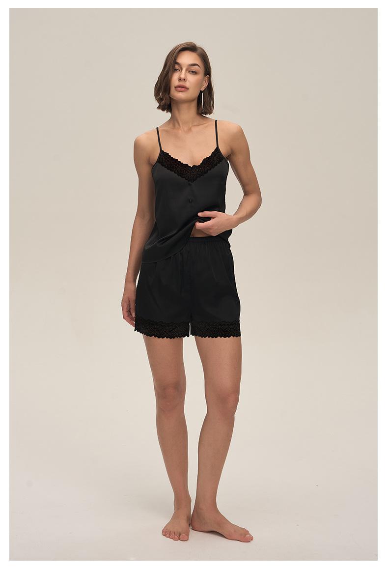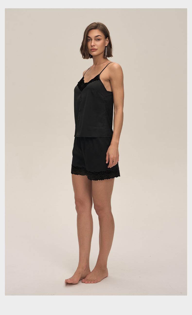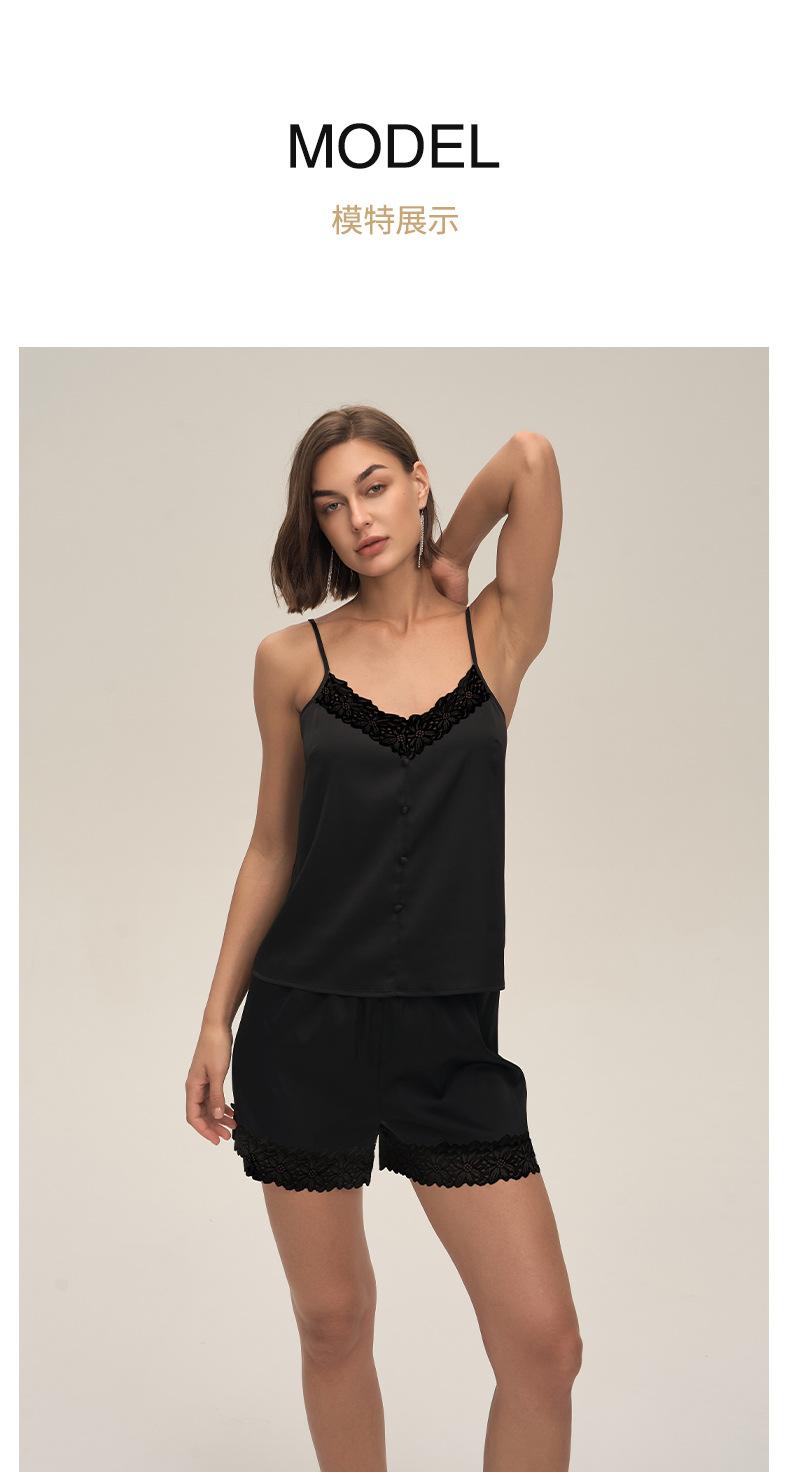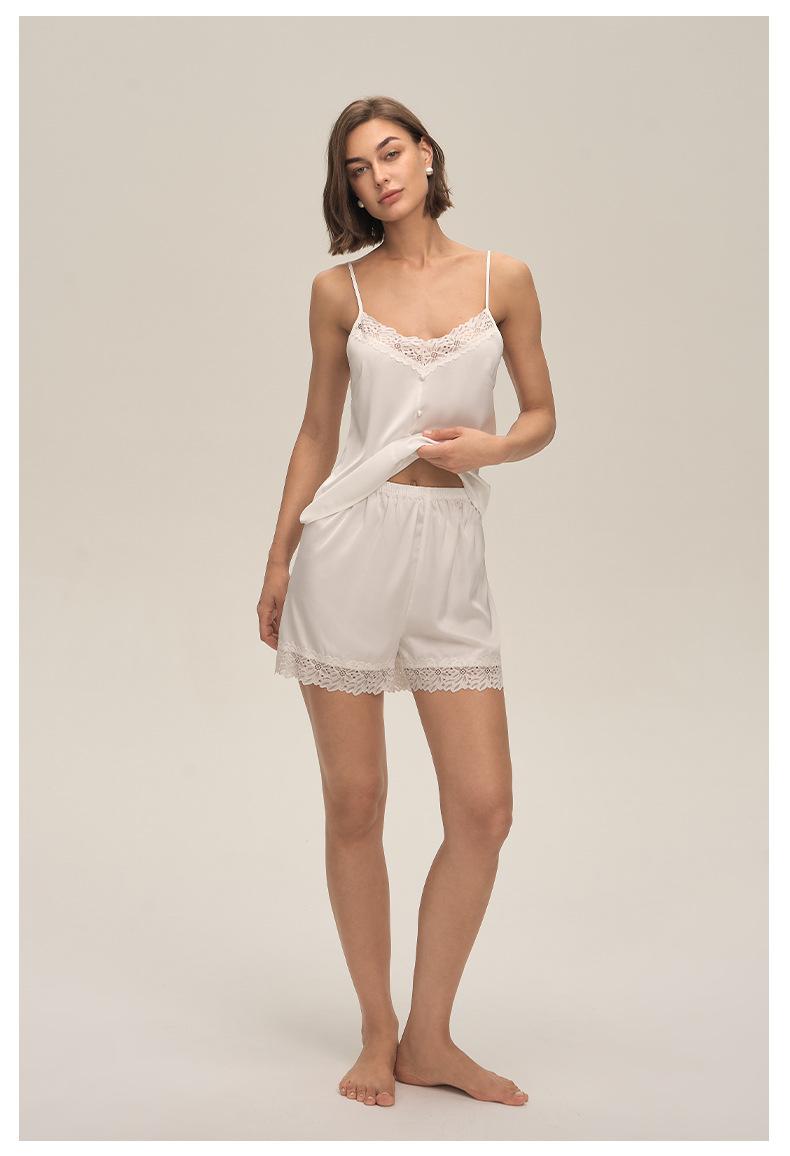 Pijama de Mujer Transfronterizo Europeo y Americano Nuevo Ropa de Casa Casual Cómodo Set de Camisola de Encaje y Shorts para el Hogar DT3930