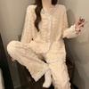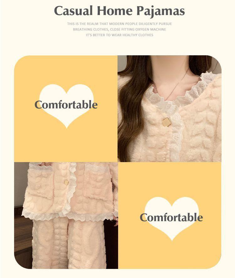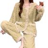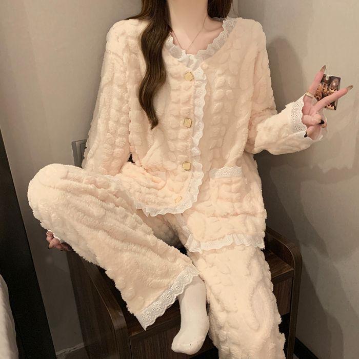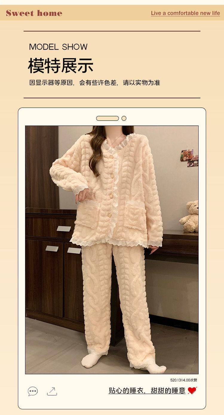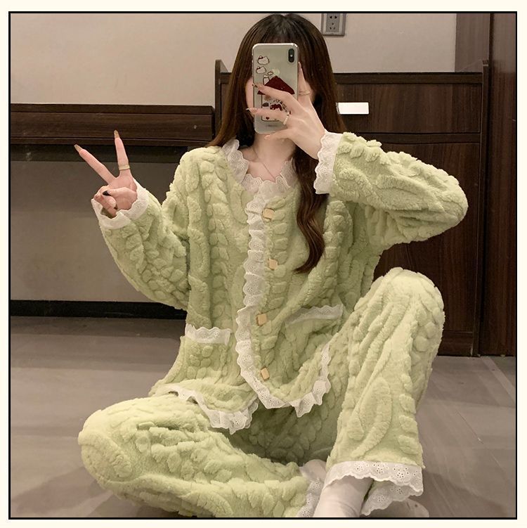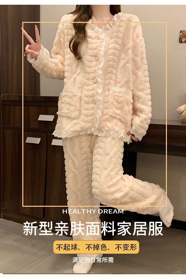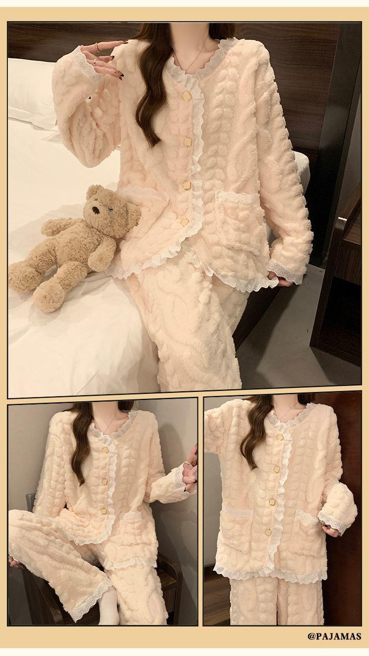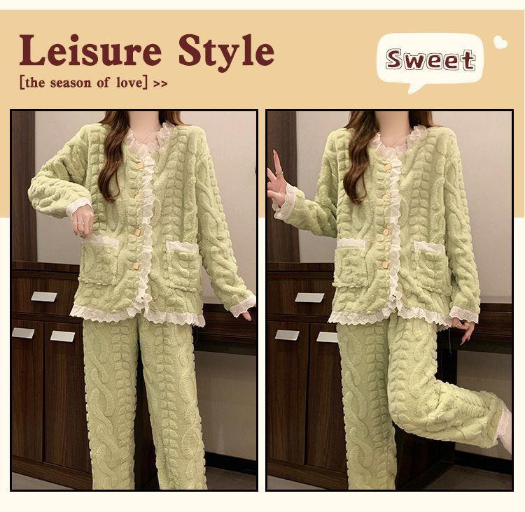 Cárdigan grueso de forro polar de coral para otoño e invierno, estilo princesa, jacquard de franela, pijama dulce para niña, conjunto de ropa para el hogar para mujer