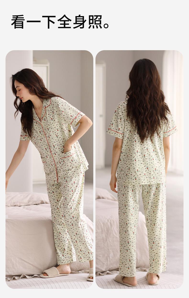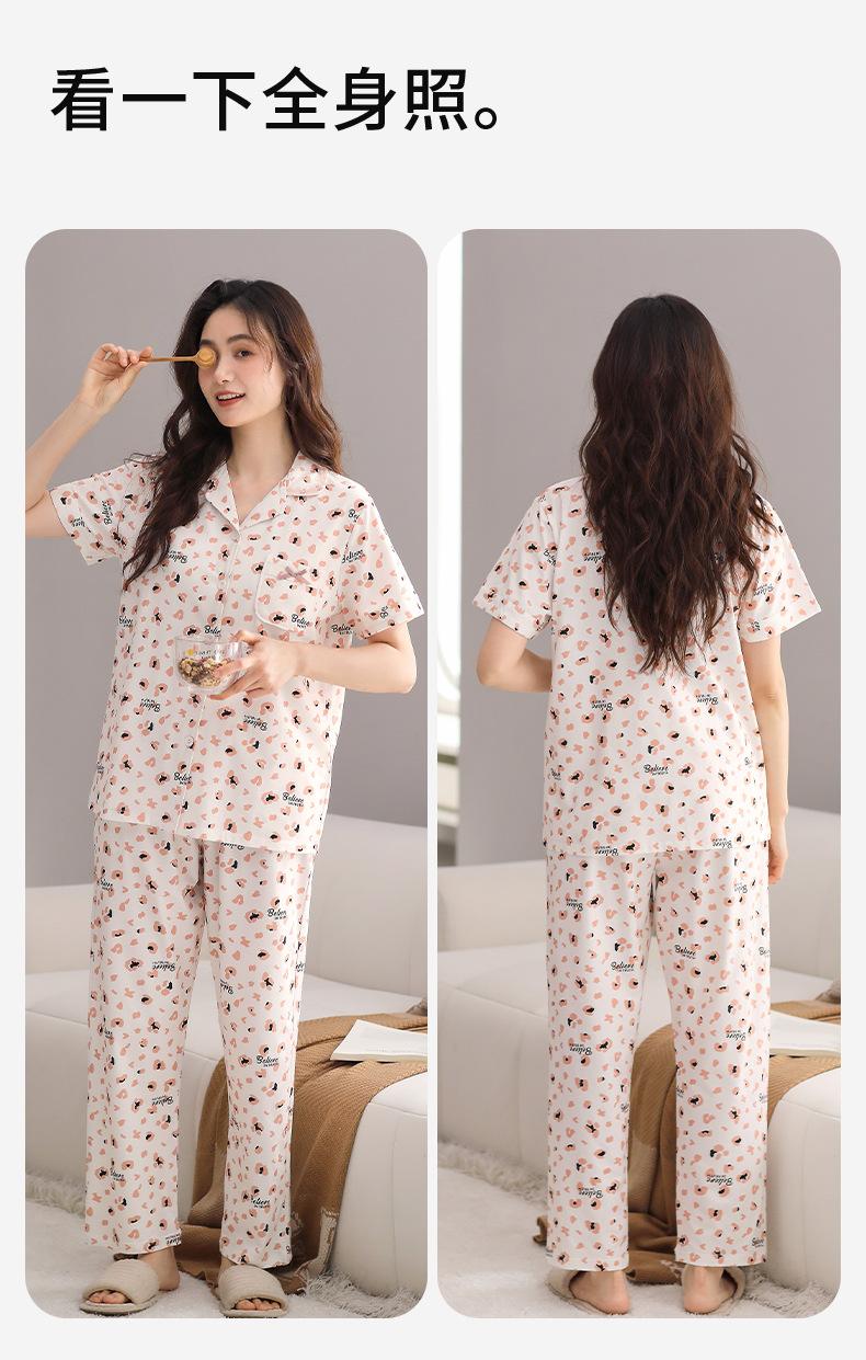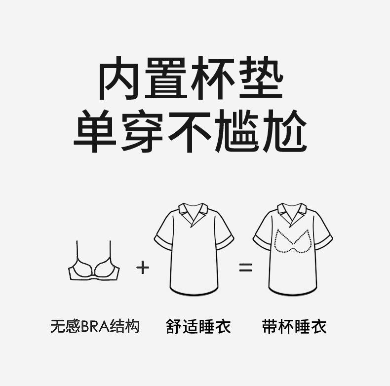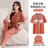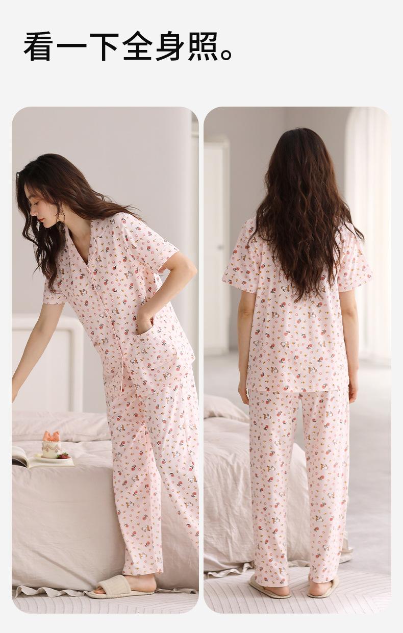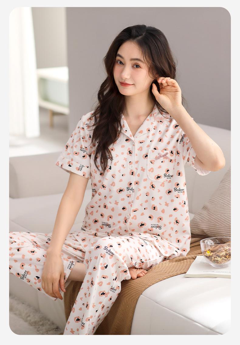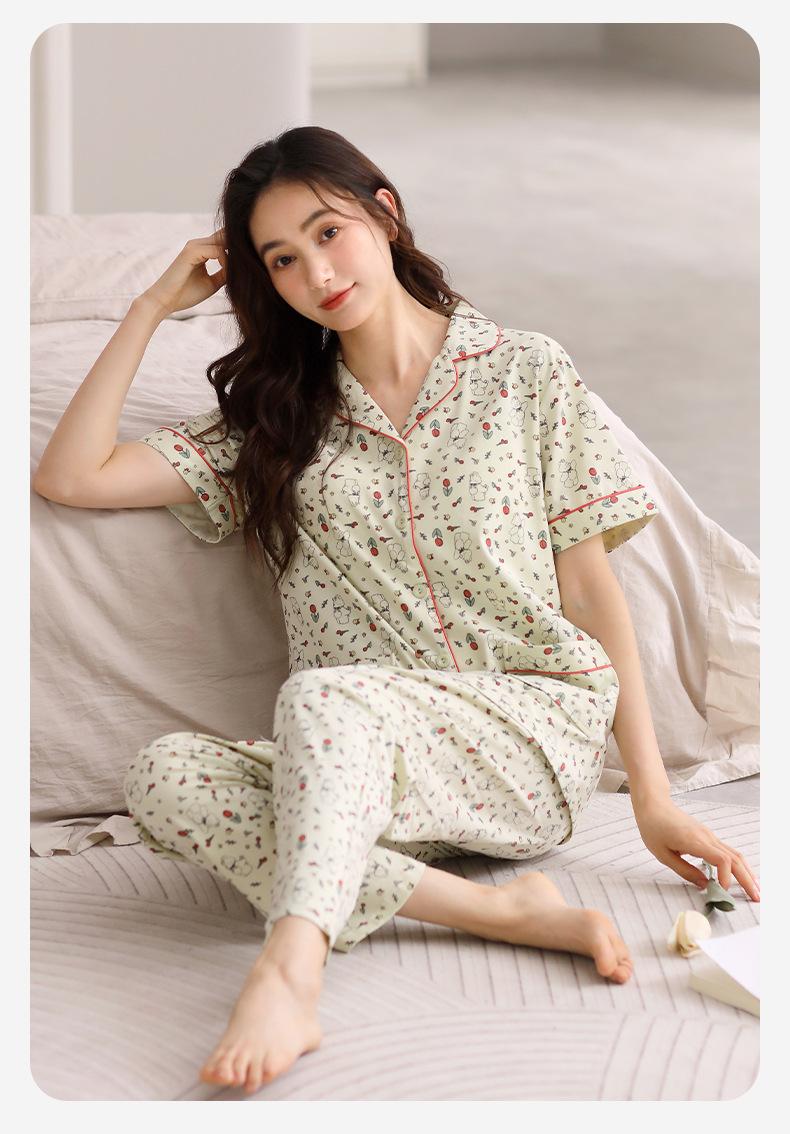 Pijama con Almohadilla en el Pecho para Mujer Verano Delgado Algodón Puro Manga Corta Pantalones Cárdigan Anti-Axila Ropa para el Hogar Traje para Exterior