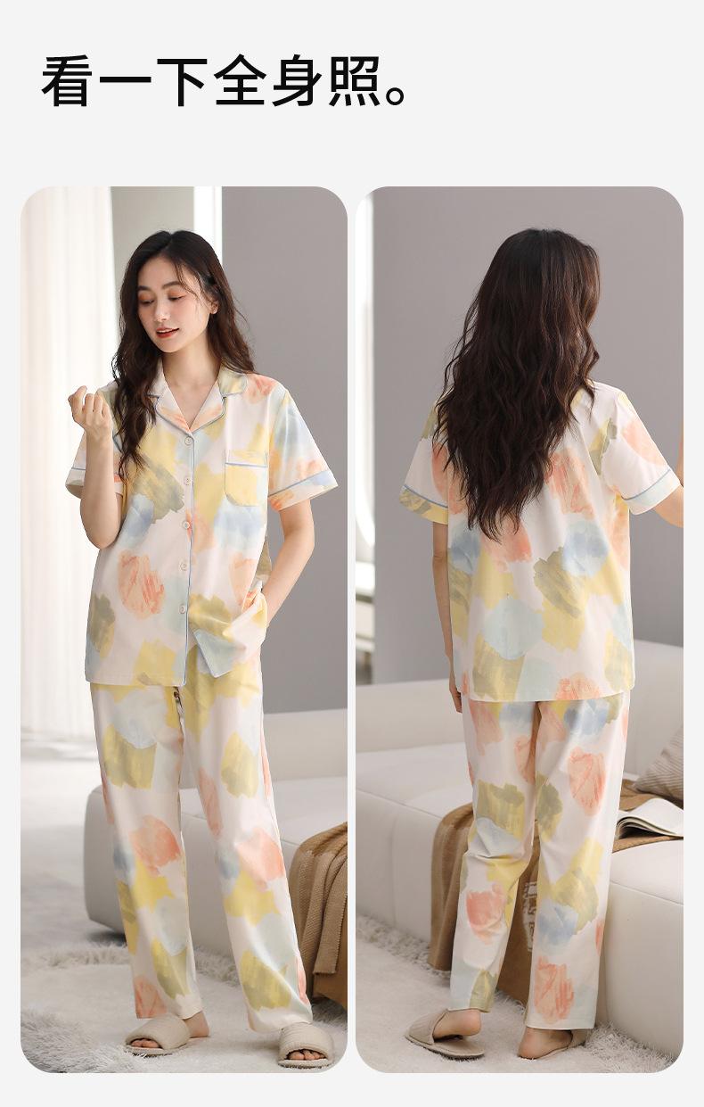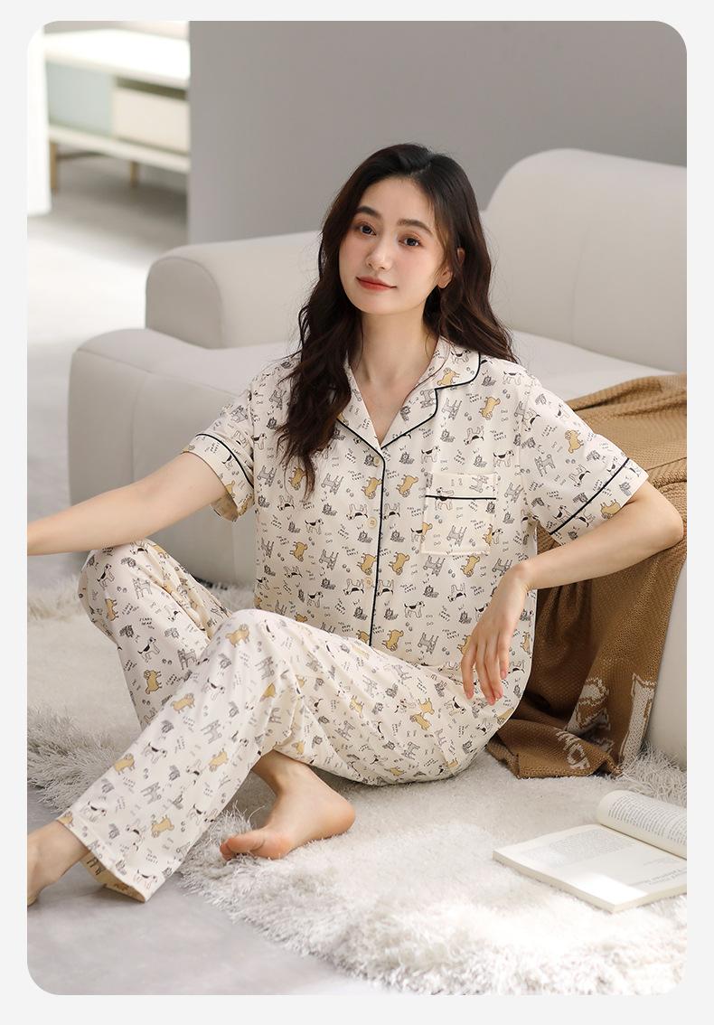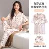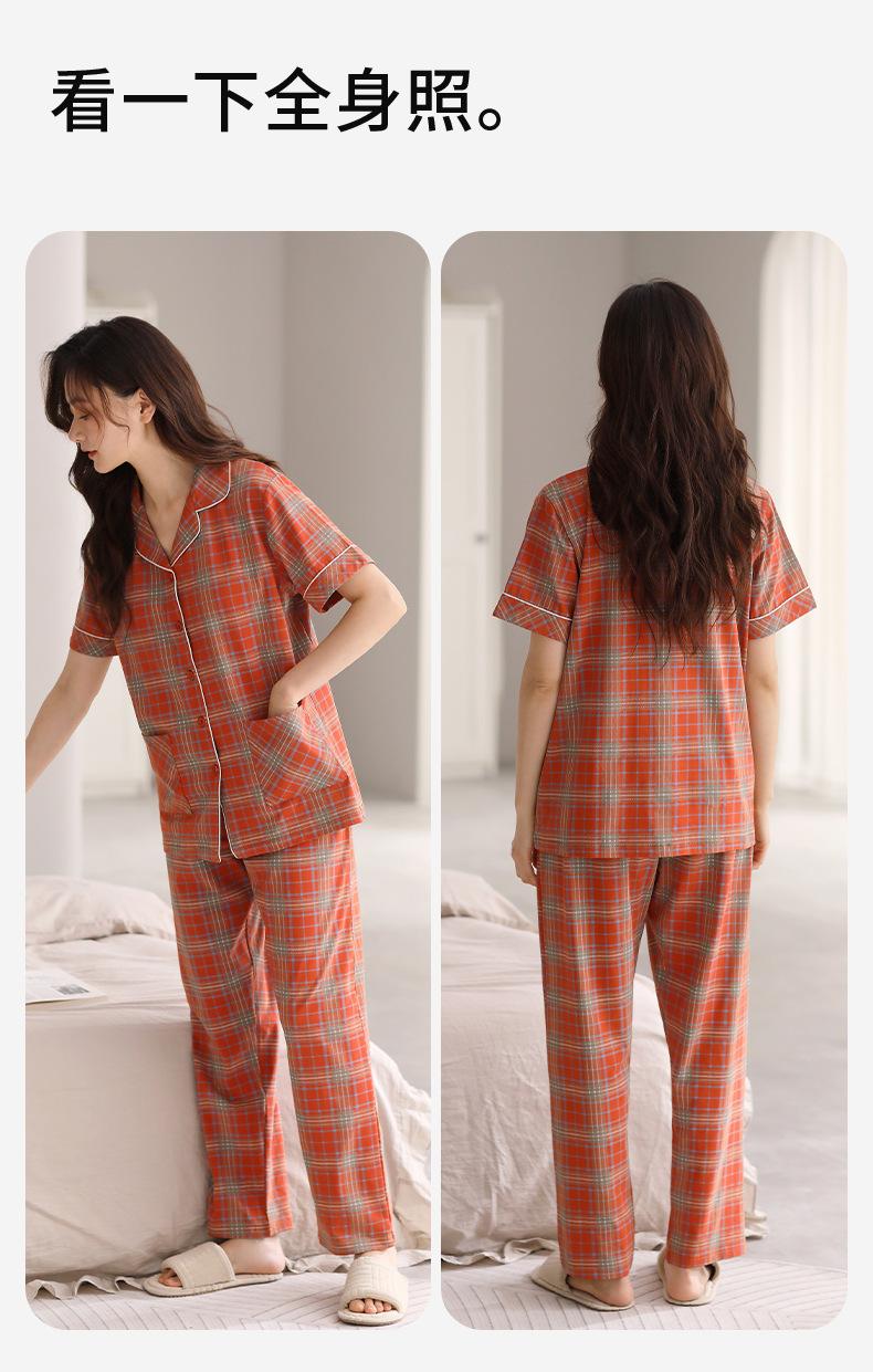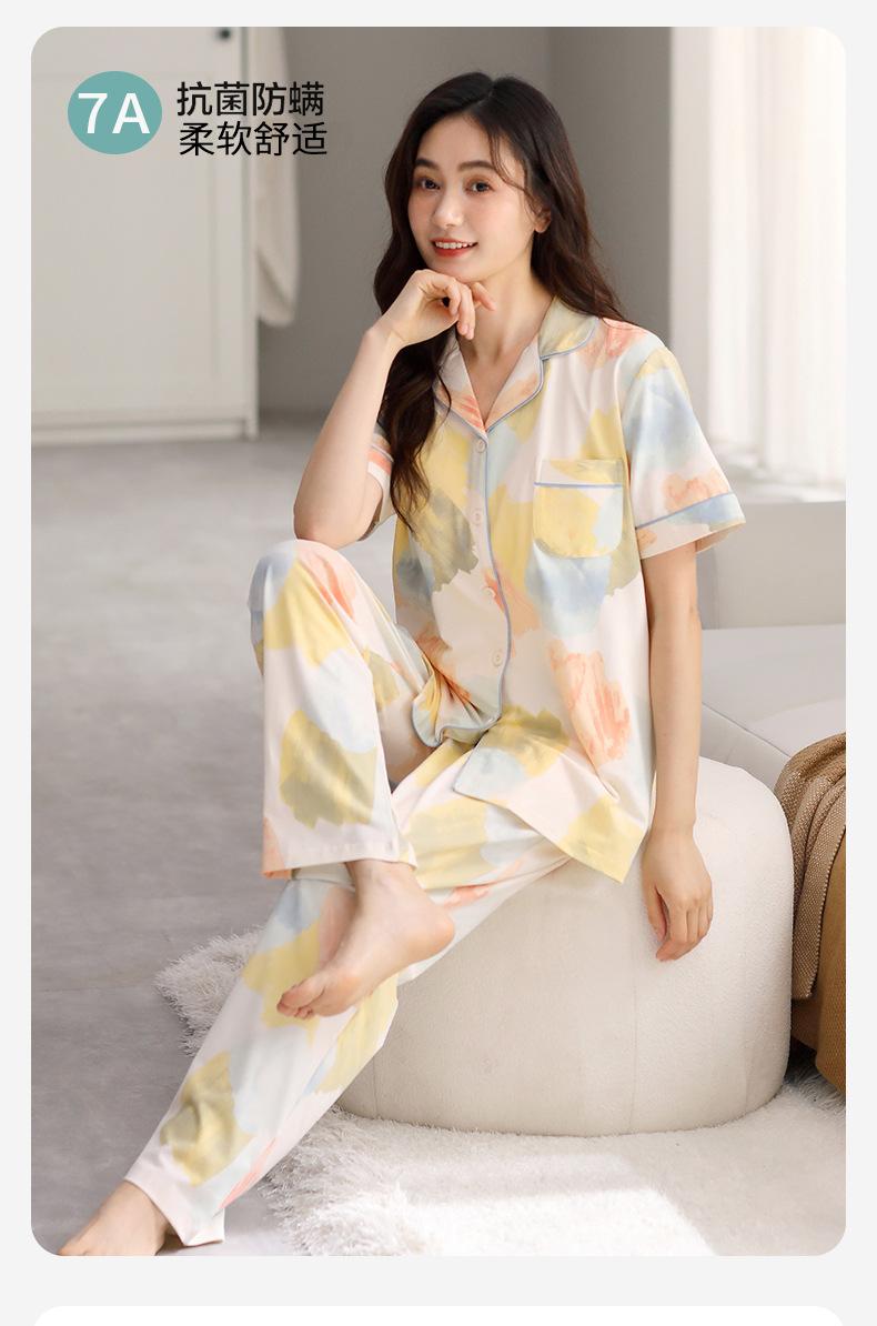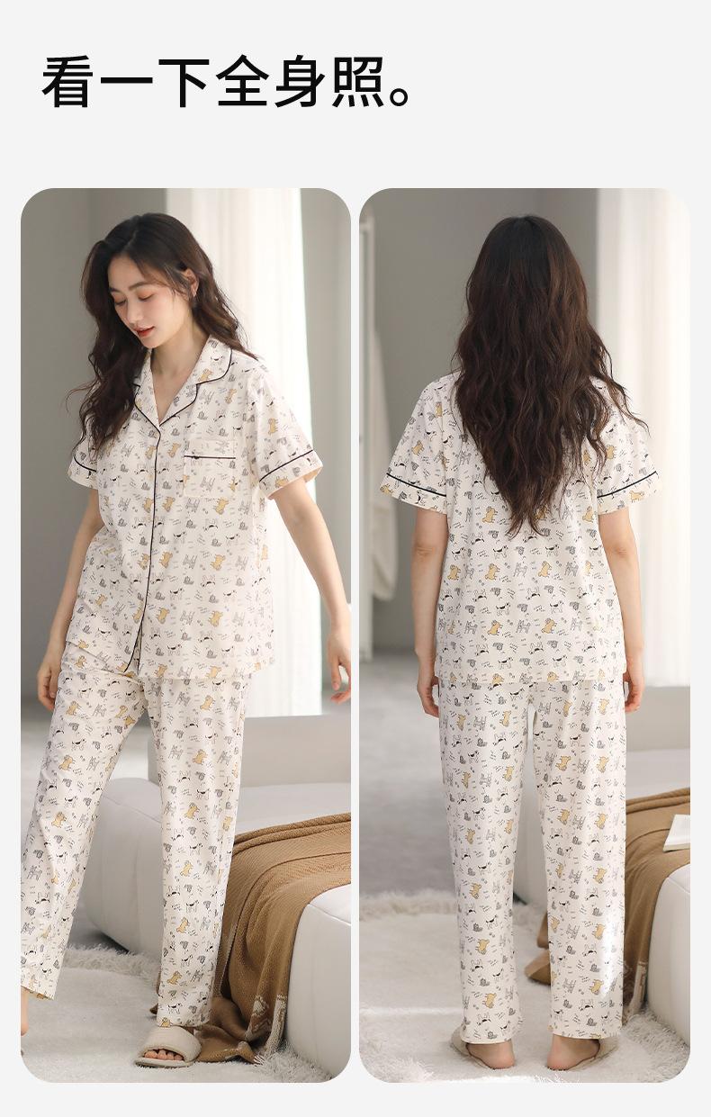 Pijama con Almohadilla en el Pecho para Mujer Verano Delgado Algodón Puro Manga Corta Pantalones Cárdigan Anti-Axila Ropa para el Hogar Traje para Exterior