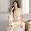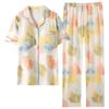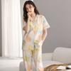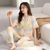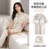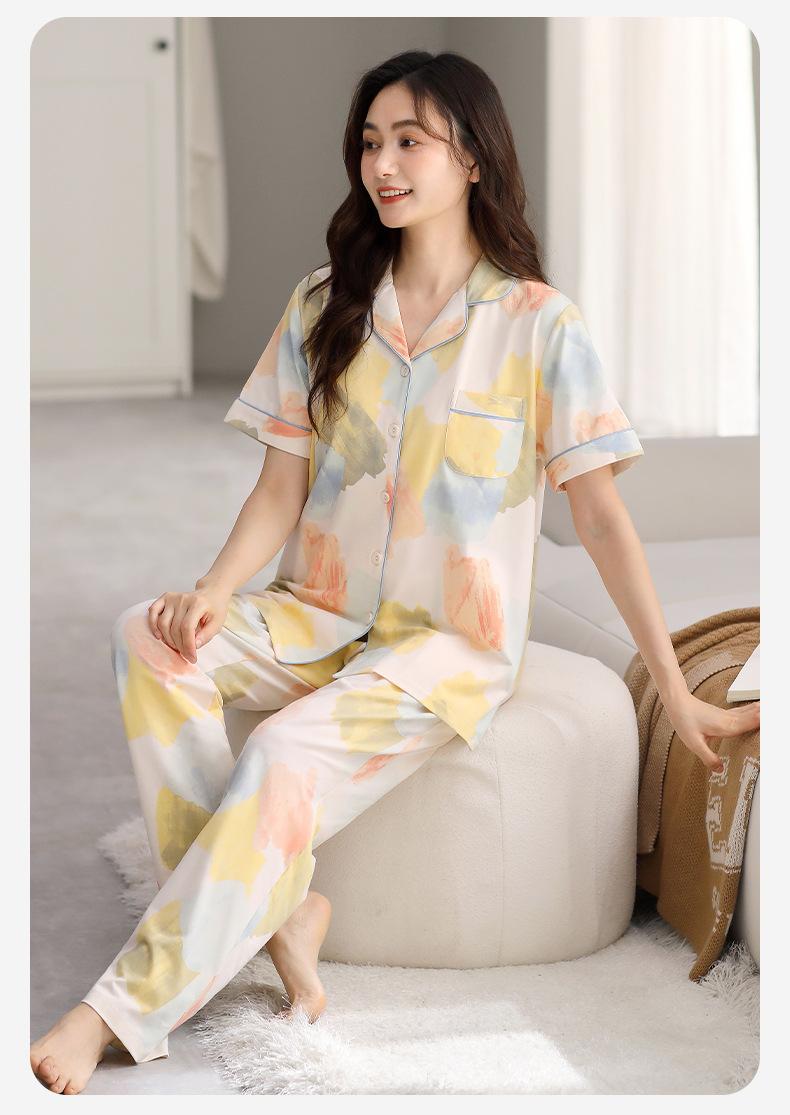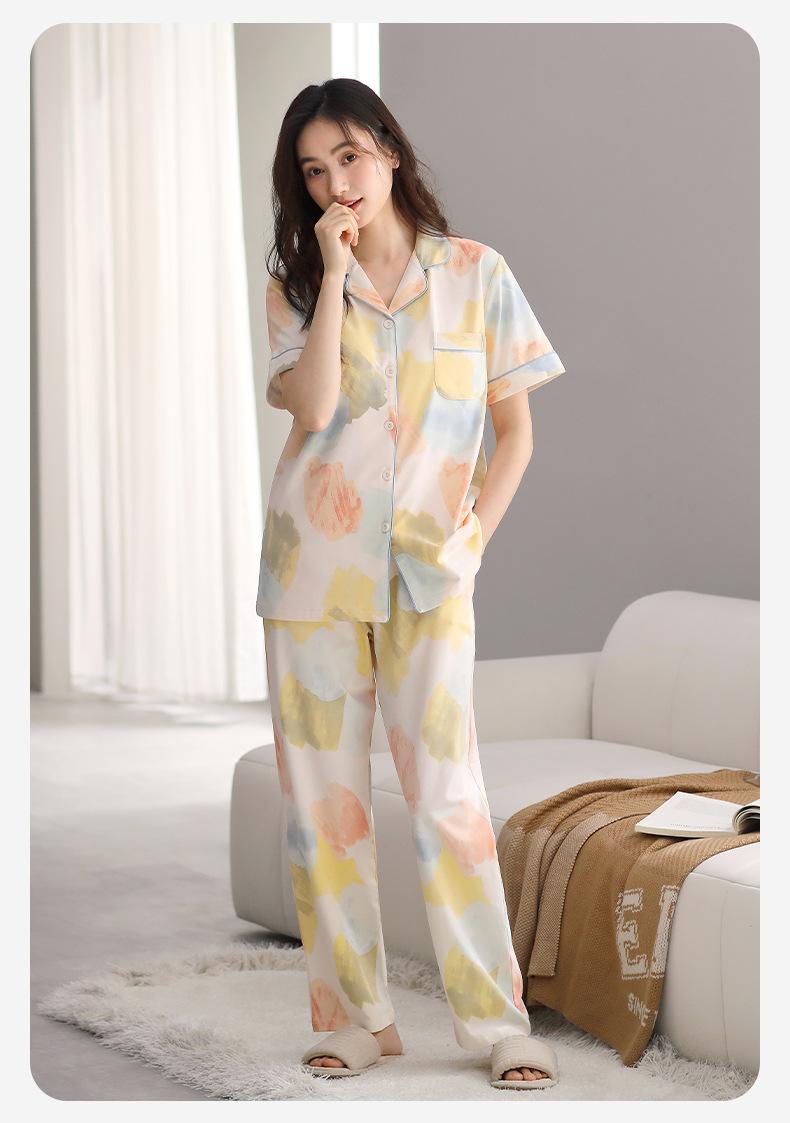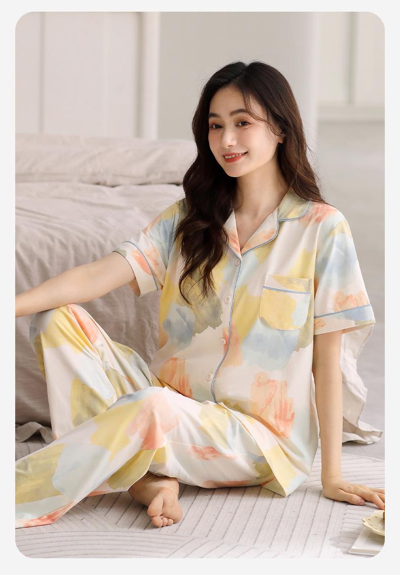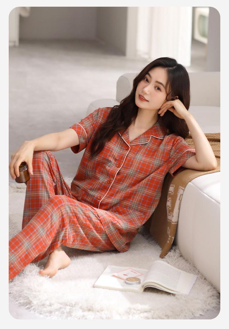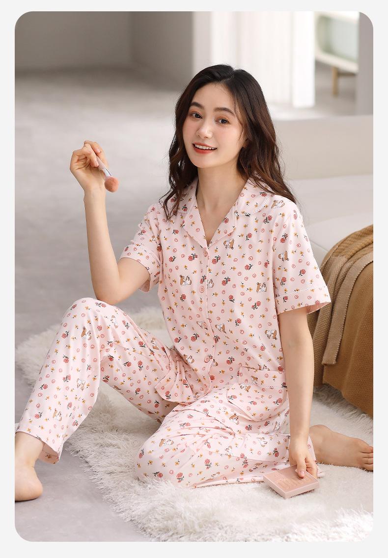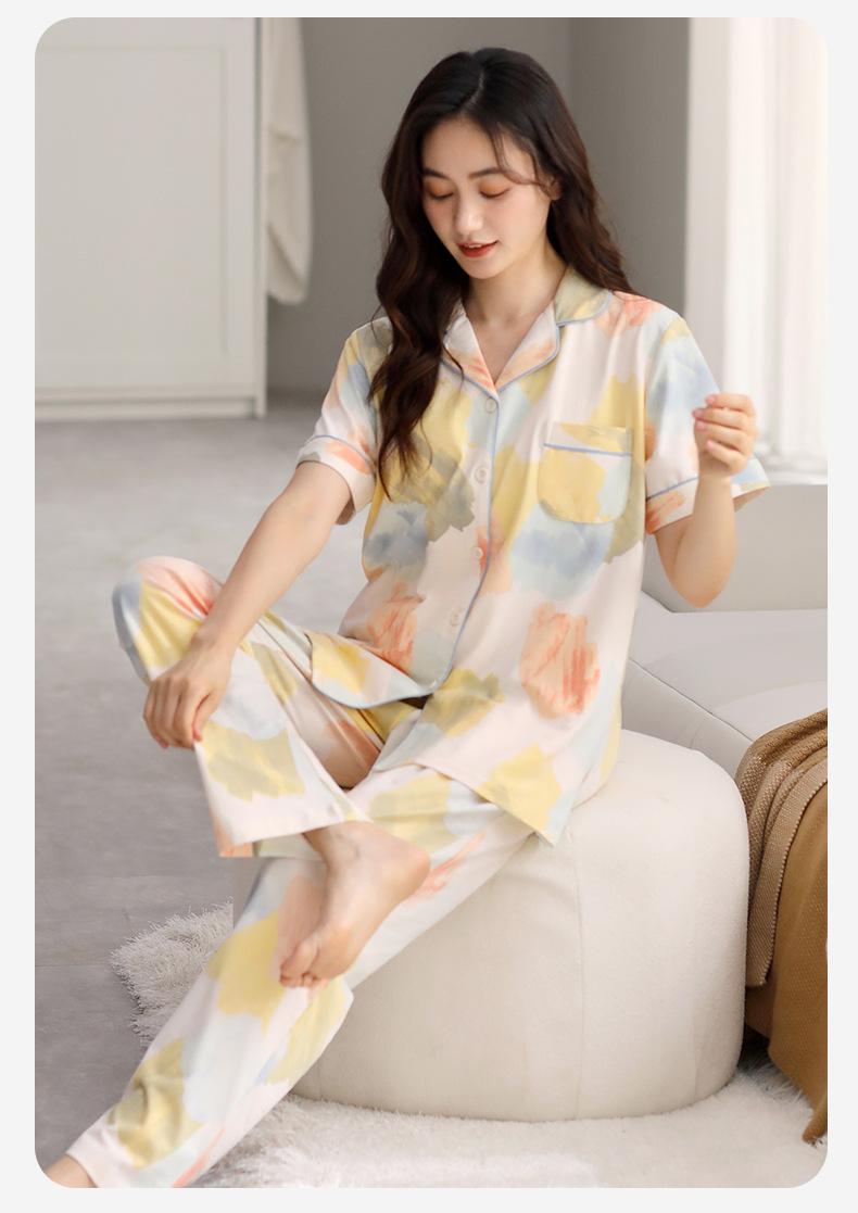 Pijama con Almohadilla en el Pecho para Mujer Verano Delgado Algodón Puro Manga Corta Pantalones Cárdigan Anti-Axila Ropa para el Hogar Traje para Exterior