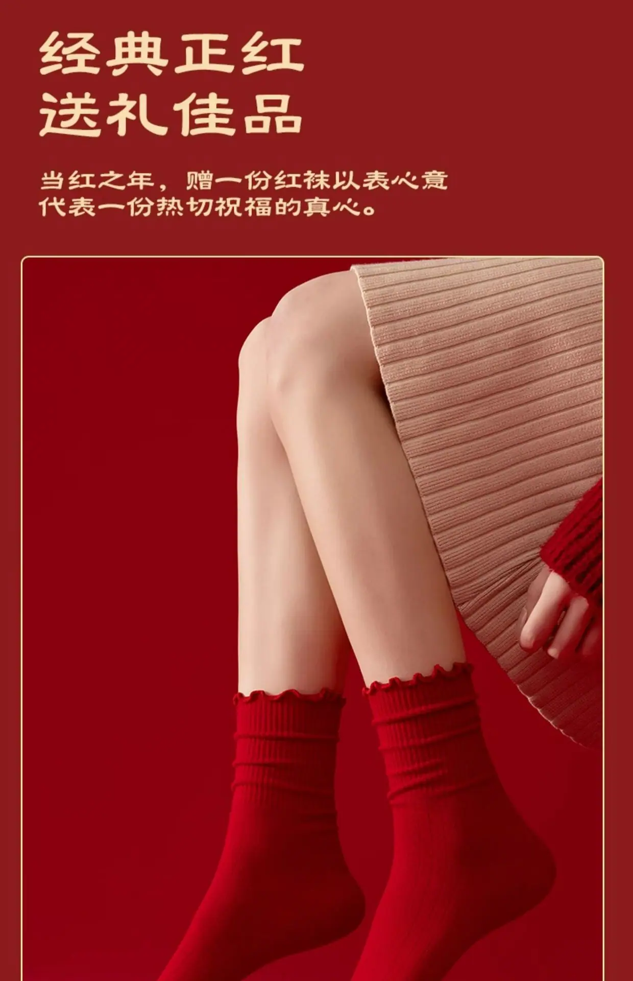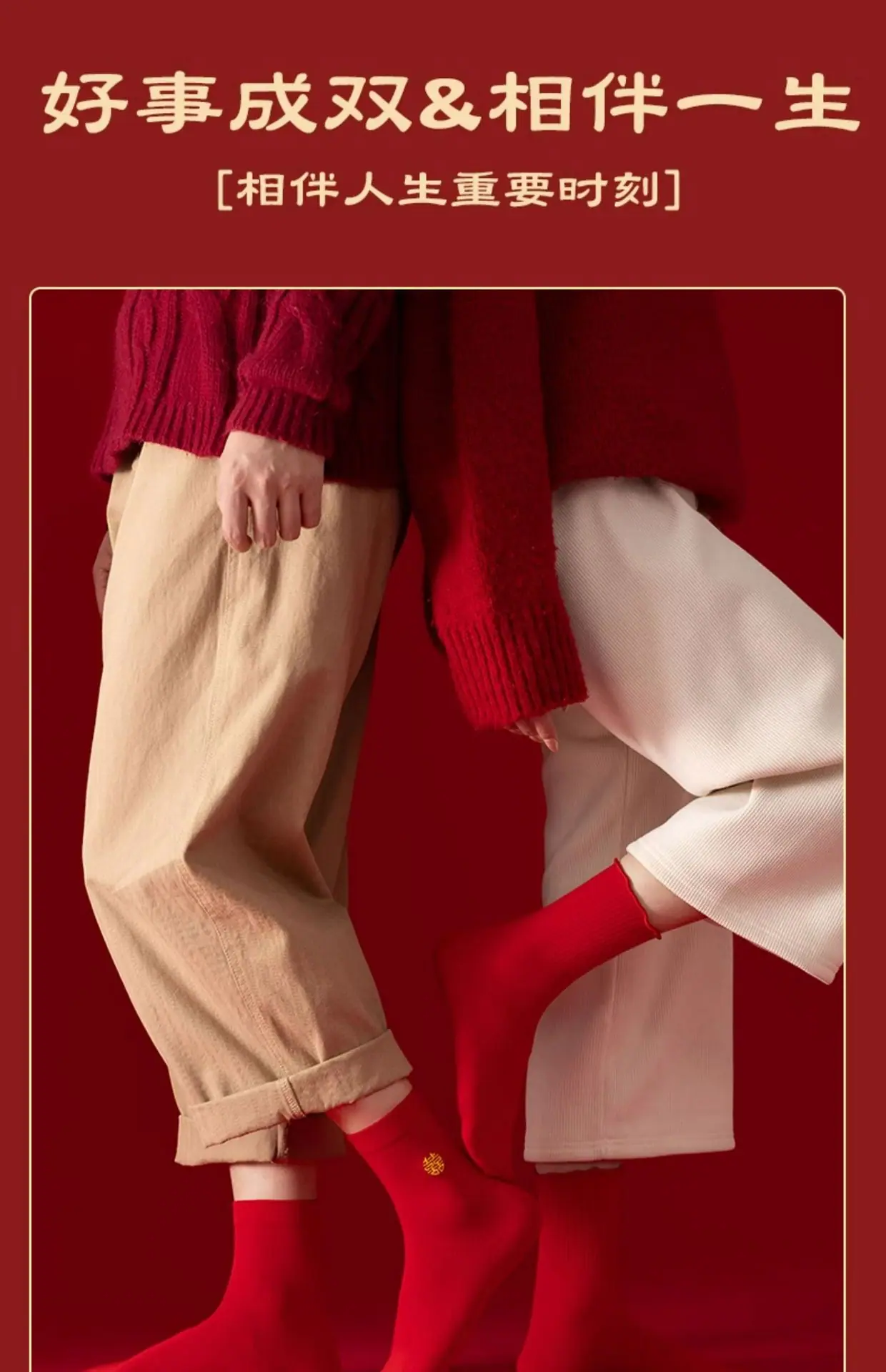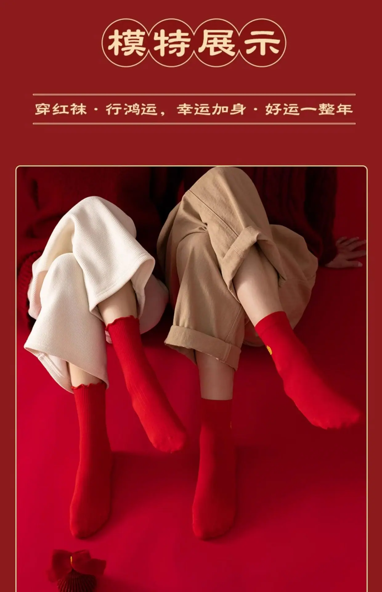 Calcetines de mujer calcetines rojo festivo de algodón puro calcetines año del zodiaco calcetines de año nuevo calcetines de media caña para pareja de boda para hombre calcetines rojos grandes calcetines Zhuji