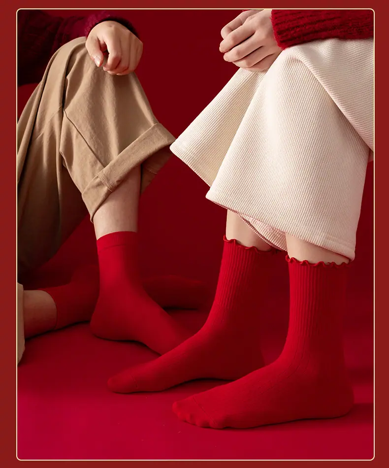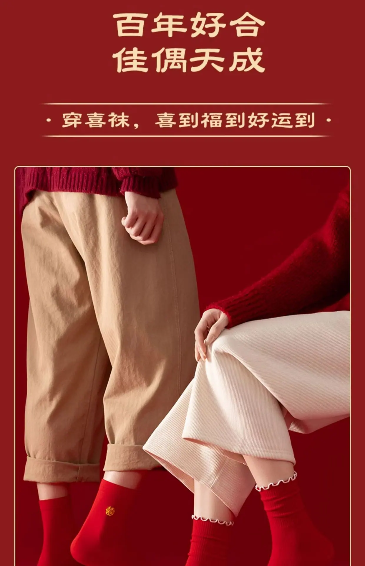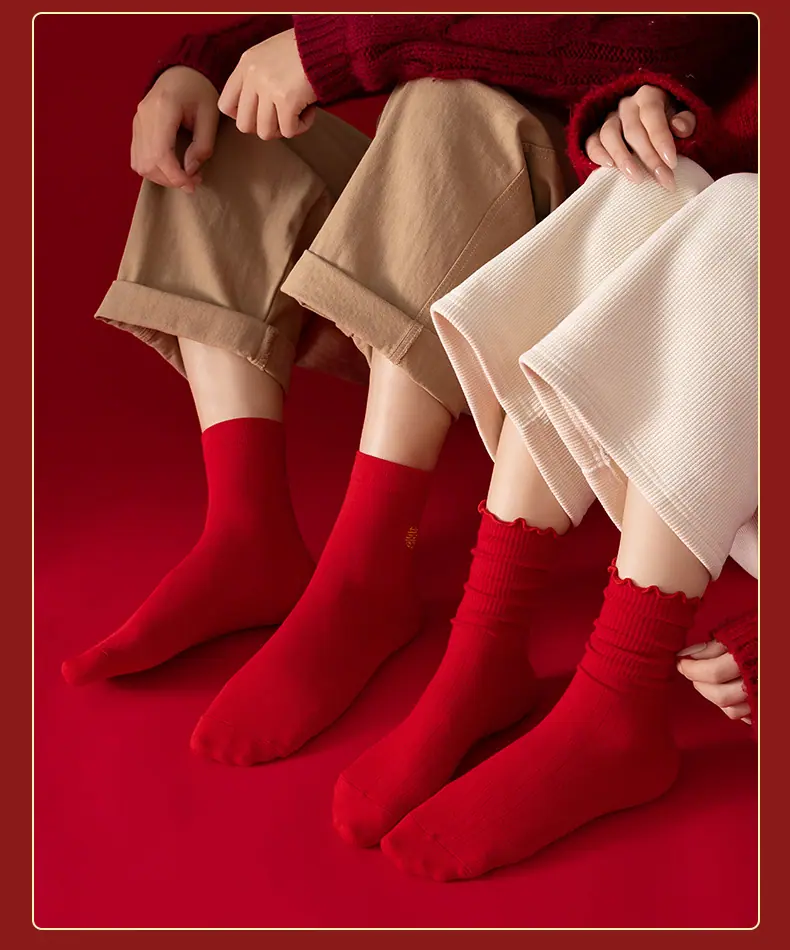 Calcetines de mujer calcetines rojo festivo de algodón puro calcetines año del zodiaco calcetines de año nuevo calcetines de media caña para pareja de boda para hombre calcetines rojos grandes calcetines Zhuji