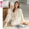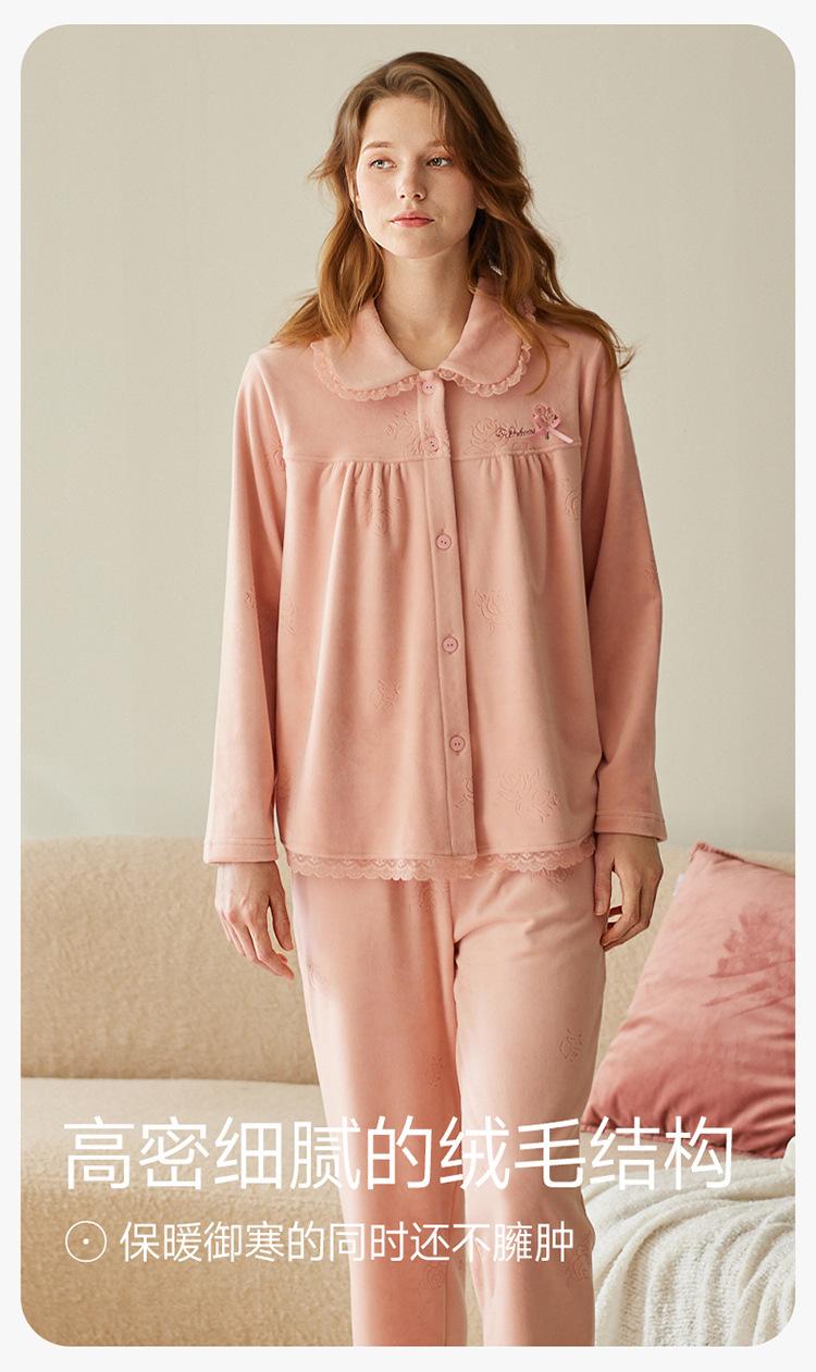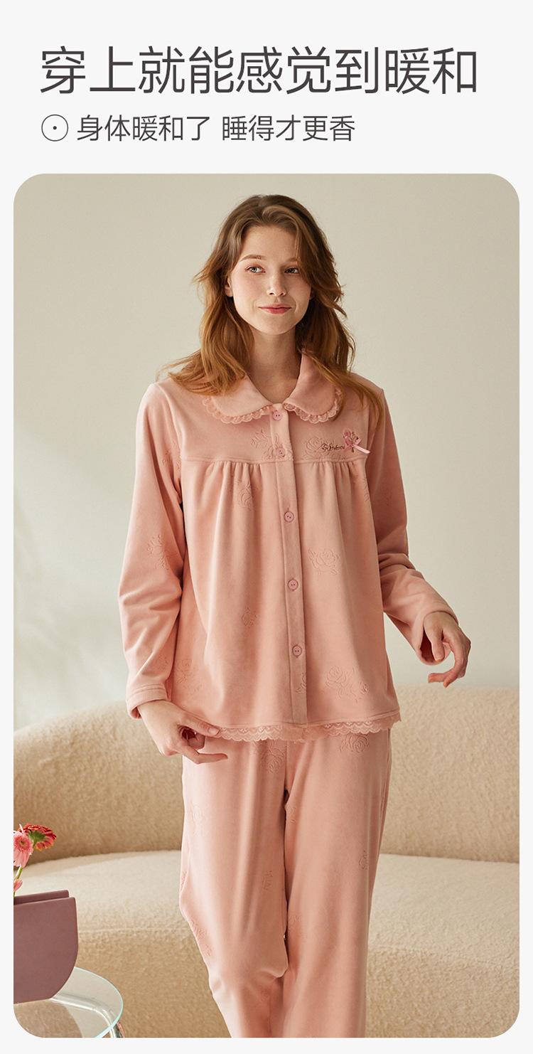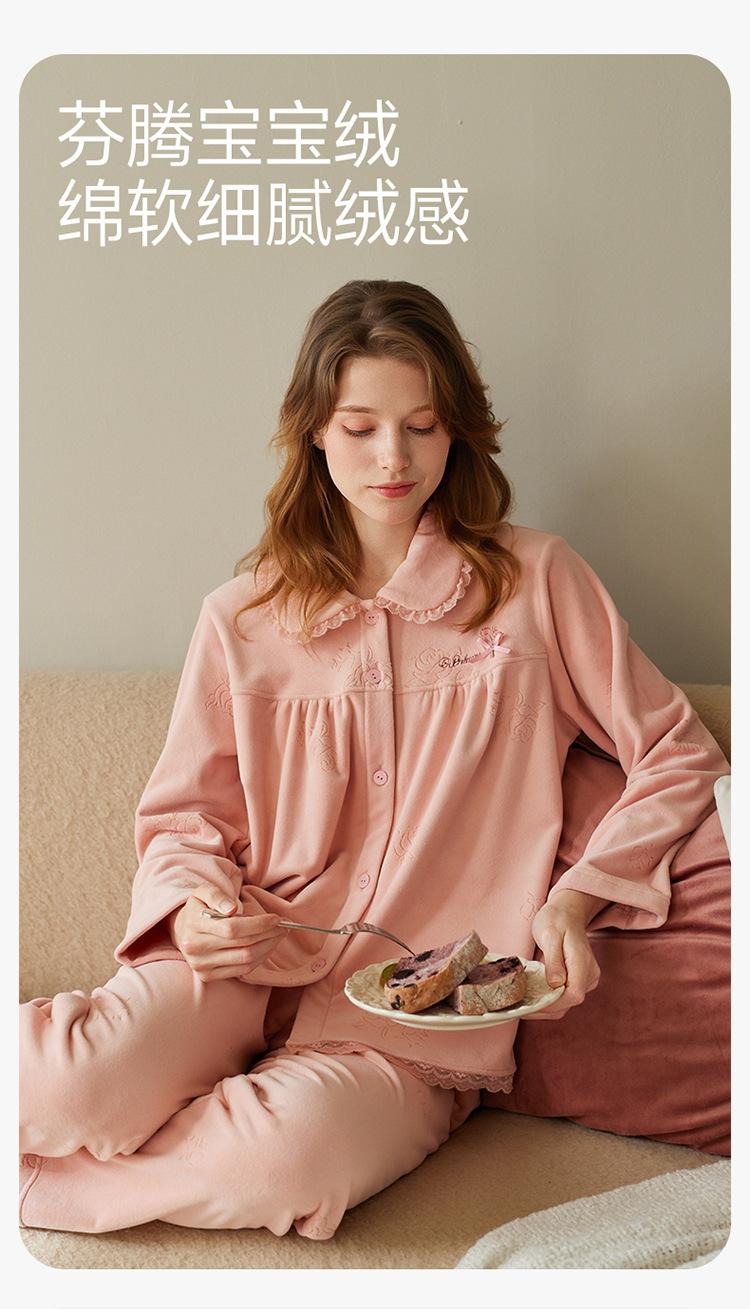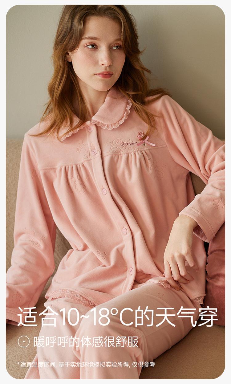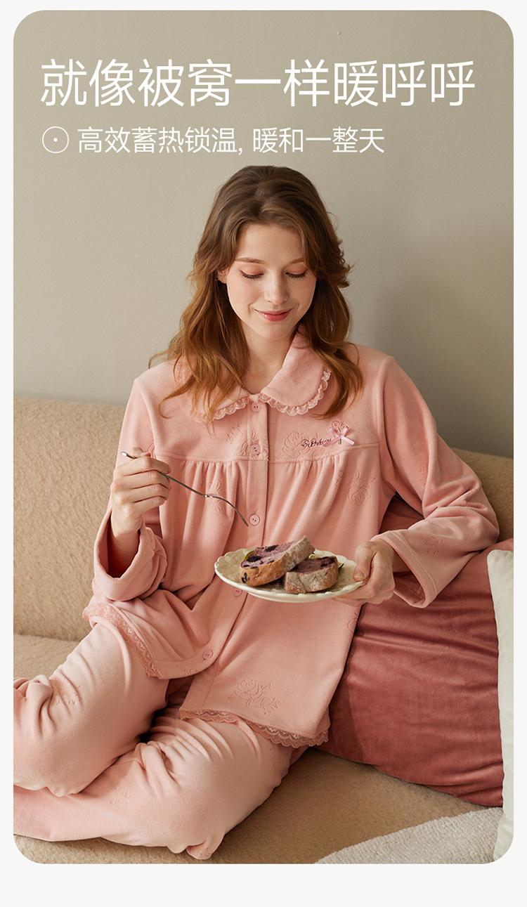 Fenteng [Forro Polar para Bebé] Pijama para Mujer Otoño e Invierno Set Grueso Aterciopelado Flannel Holgado Talla Grande Ropa para el Hogar