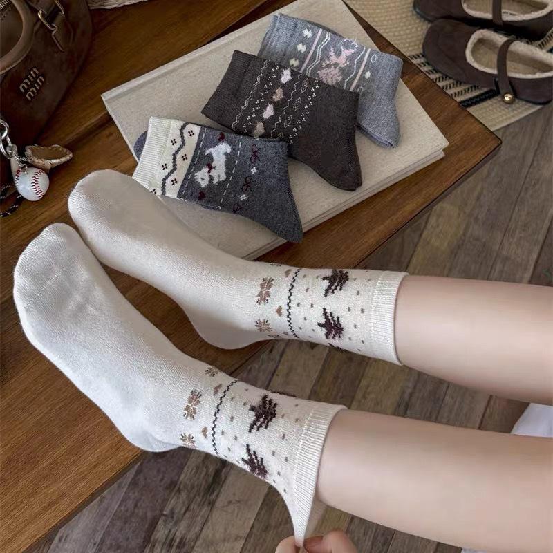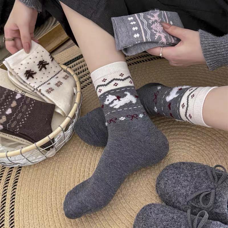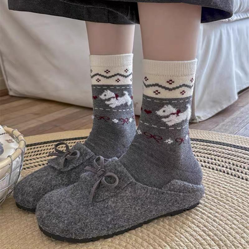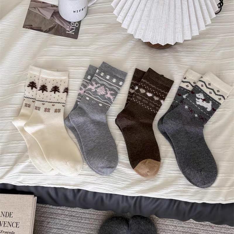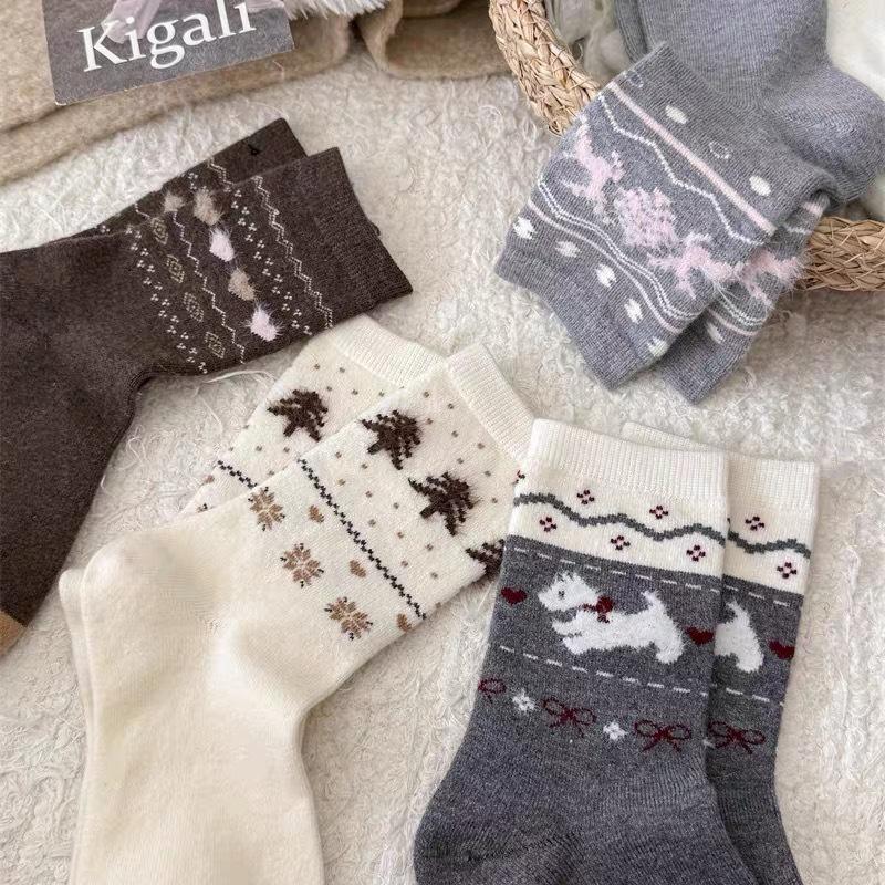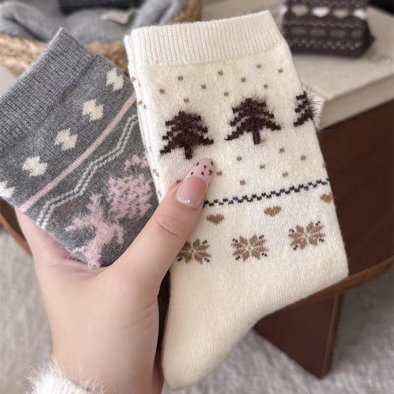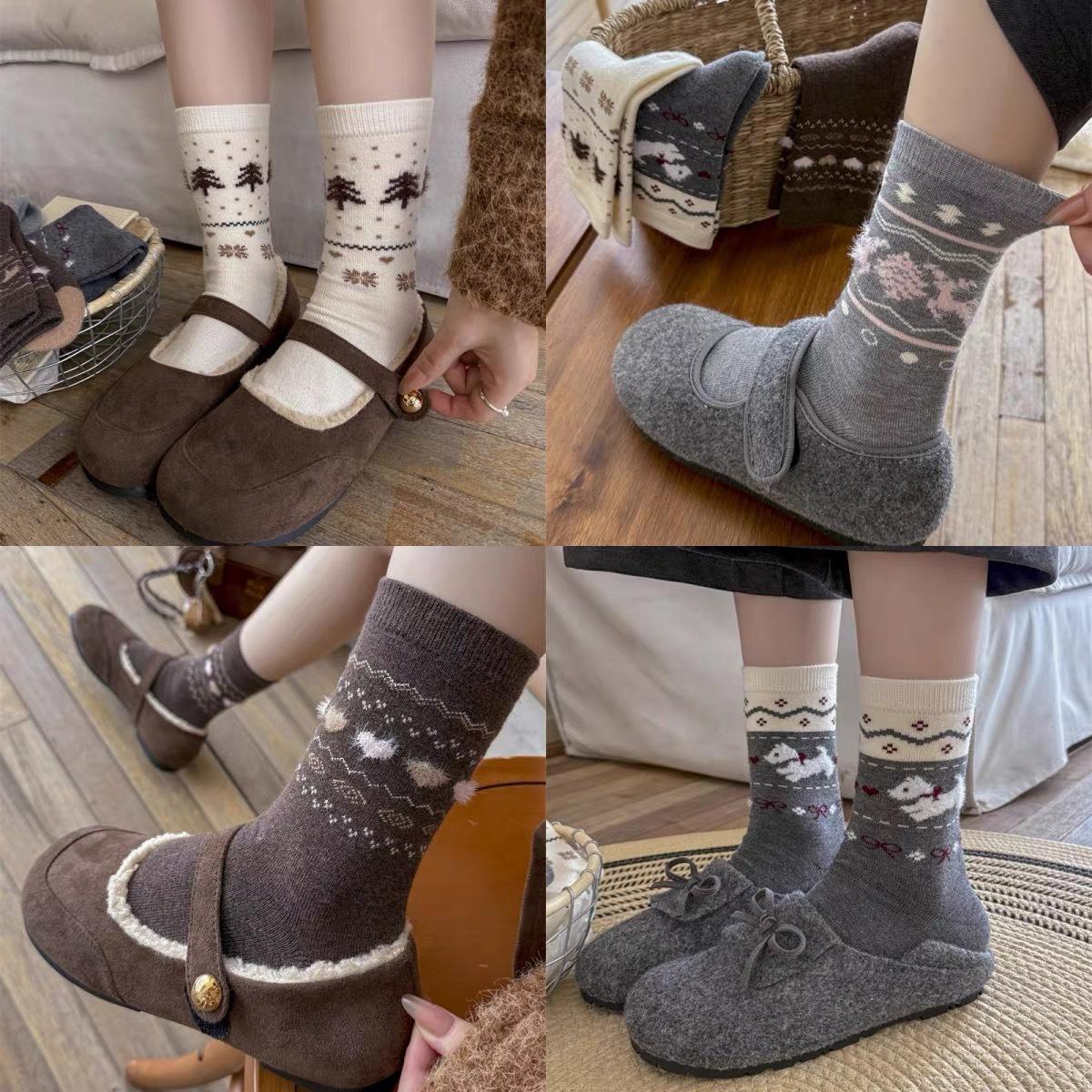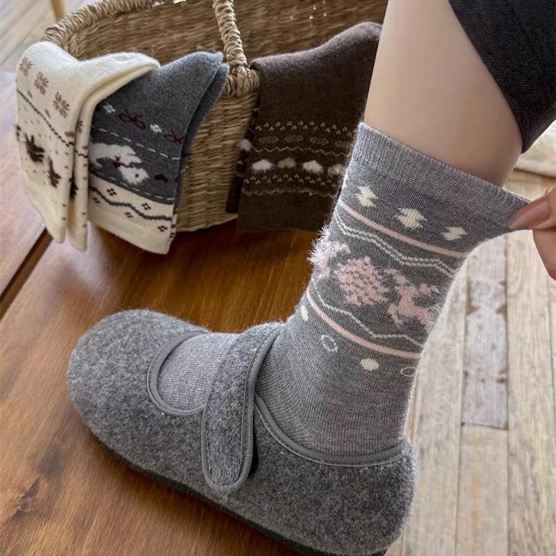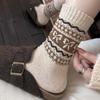 Calcetines de Invierno para Mujer Calcetines de Lana hasta Media Pantorrilla Cálidos Gruesos Fair Isle con Volantes Estilo Coreano Lindo para Dama Calcetines sin Costuras