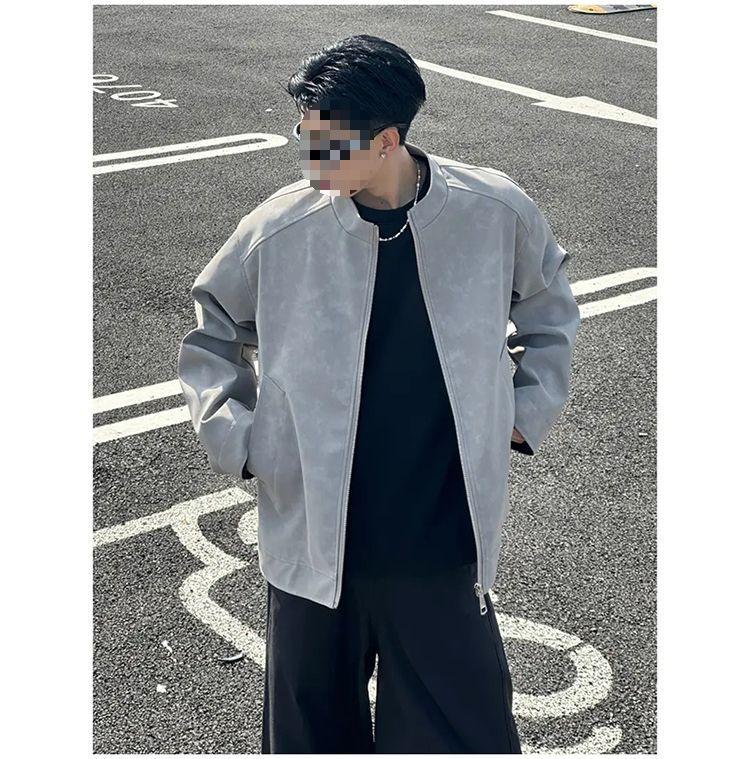 Chaqueta de cuero estilo retro americano top 2025 primavera y otoño nueva chaqueta holgada casual versátil con cuello alto hombres