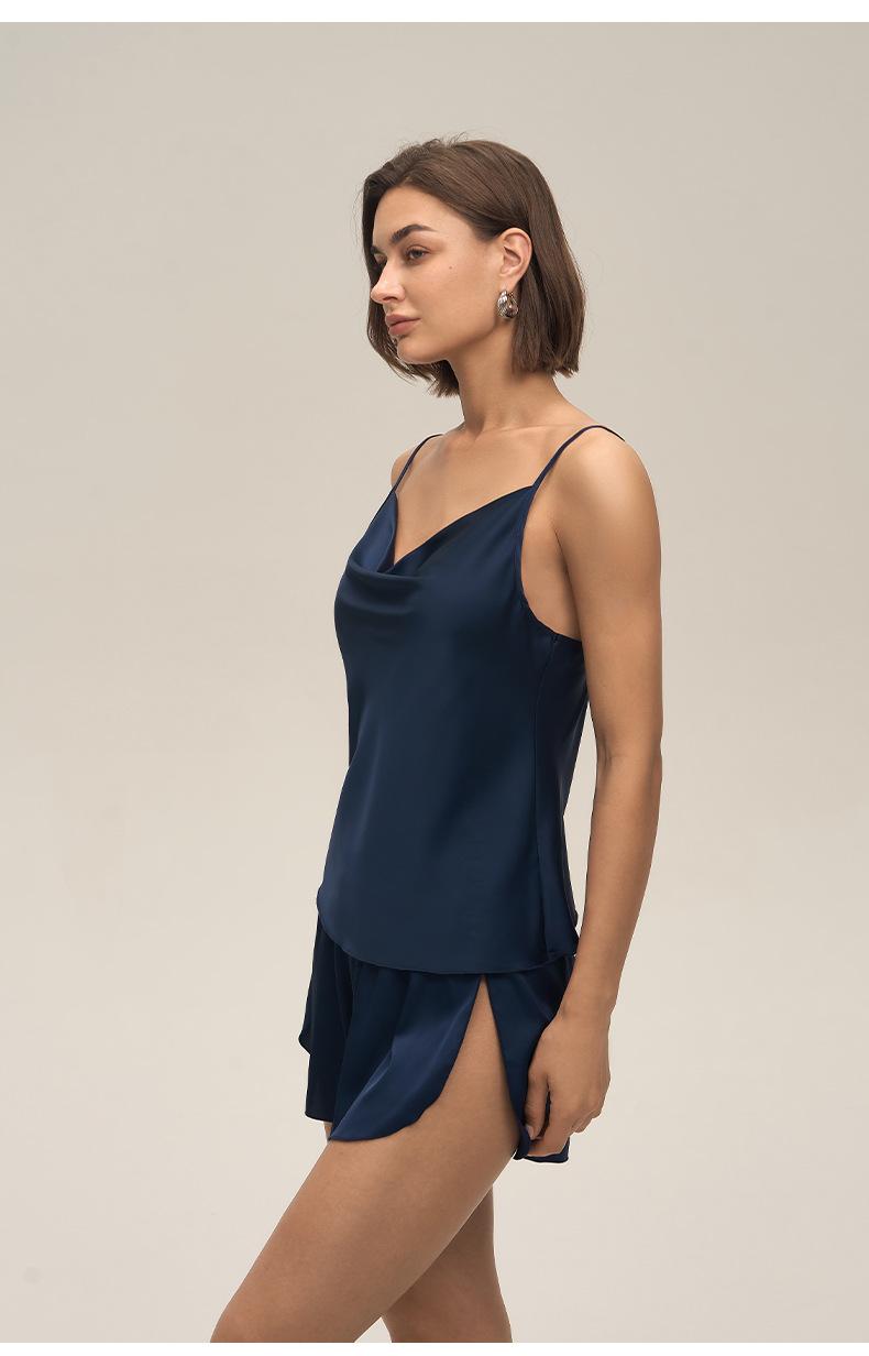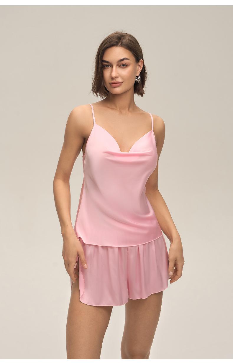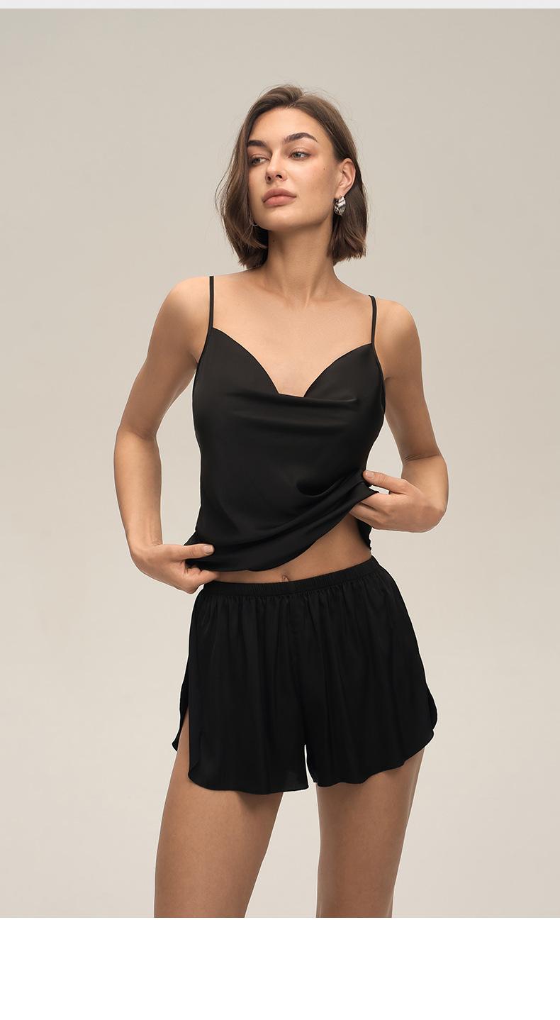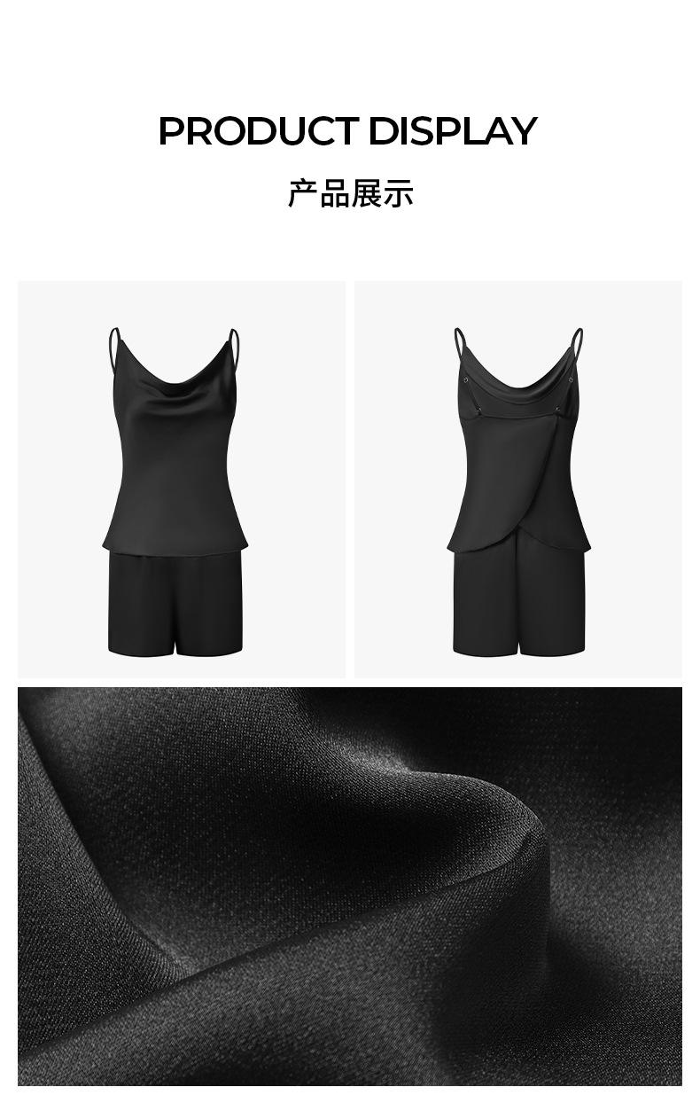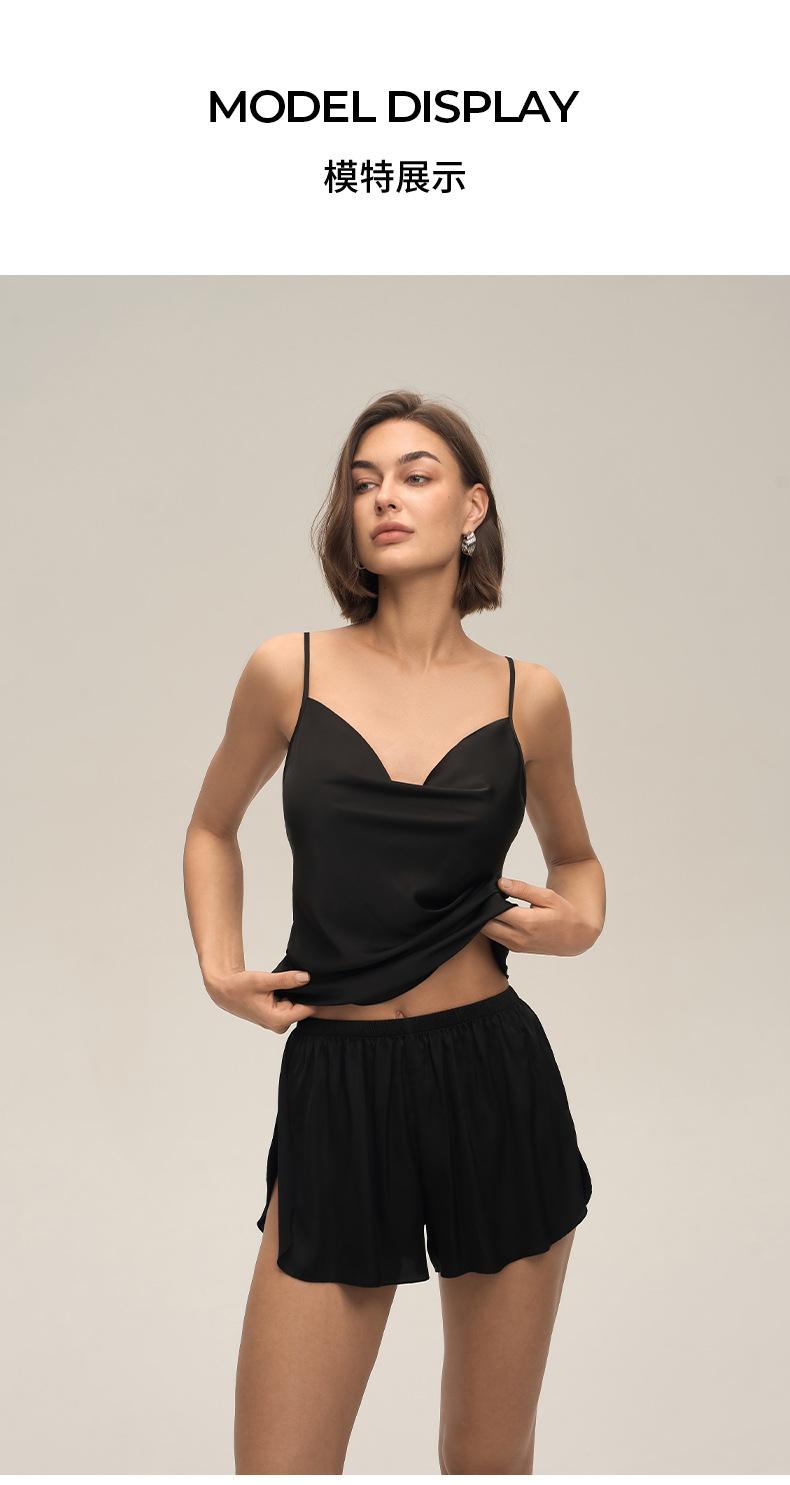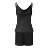 Nuevo Conjunto Sexy para Mujer Transfronterizo Europeo y Americano de Color Sólido con Cuello Caído, Tirantes Espagueti y Shorts Sencillo Casual para Estar en Casa DT3928