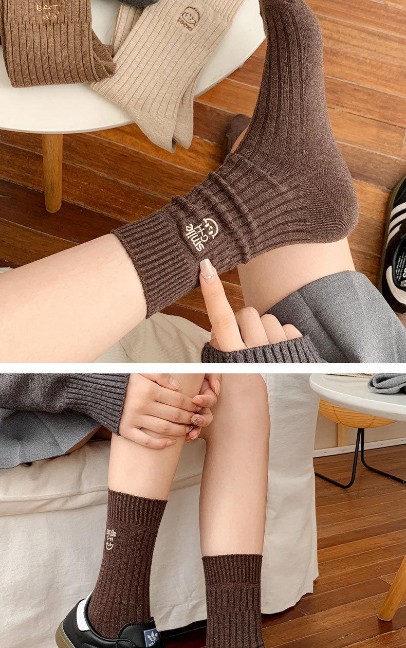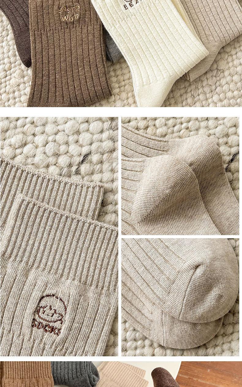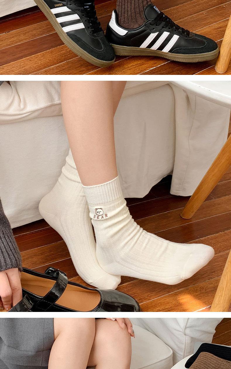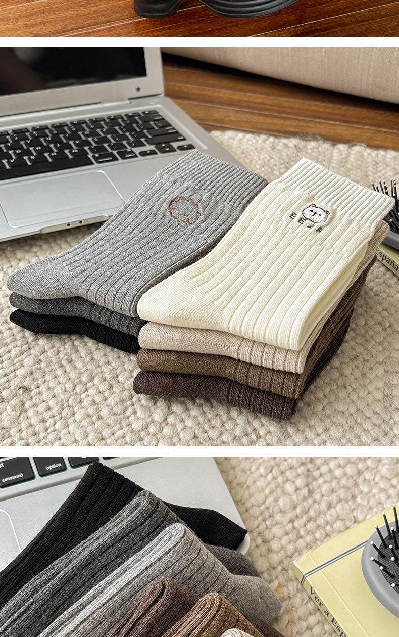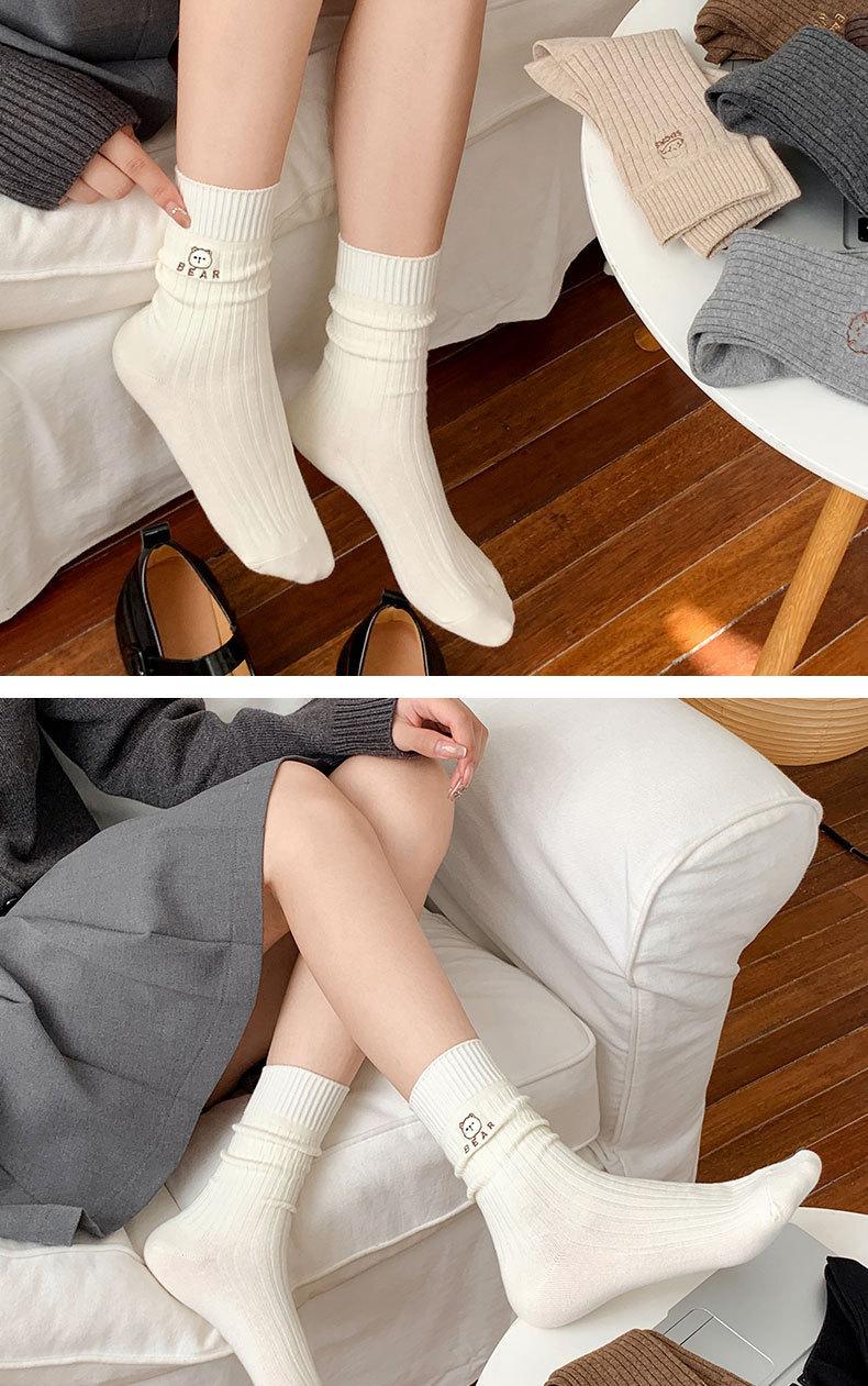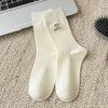 Calcetines de mujer de algodón puro hasta la mitad de la pantorrilla, otoño e invierno, rojo de internet, ins, modernos, bordado, corazón, lazo, caricatura, todo algodón, calcetines holgados