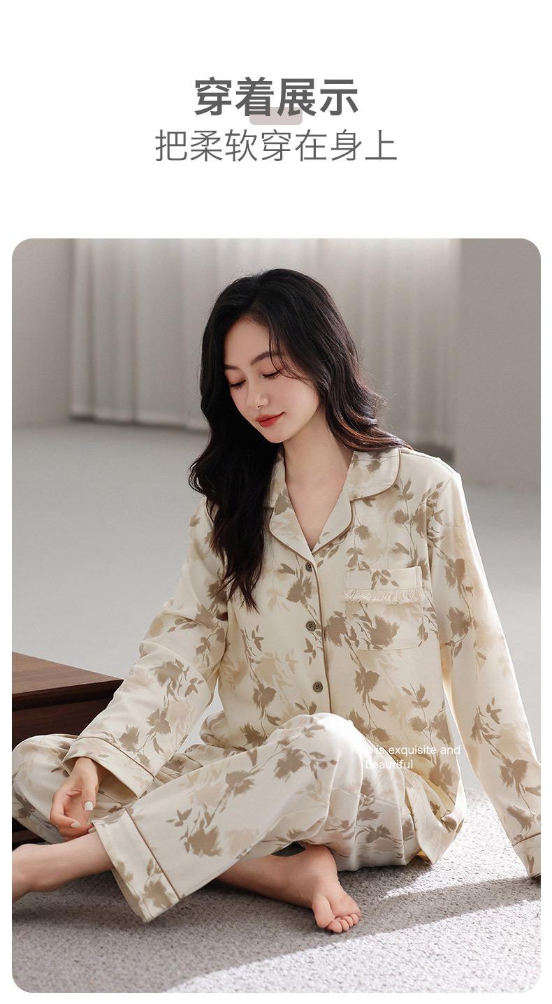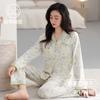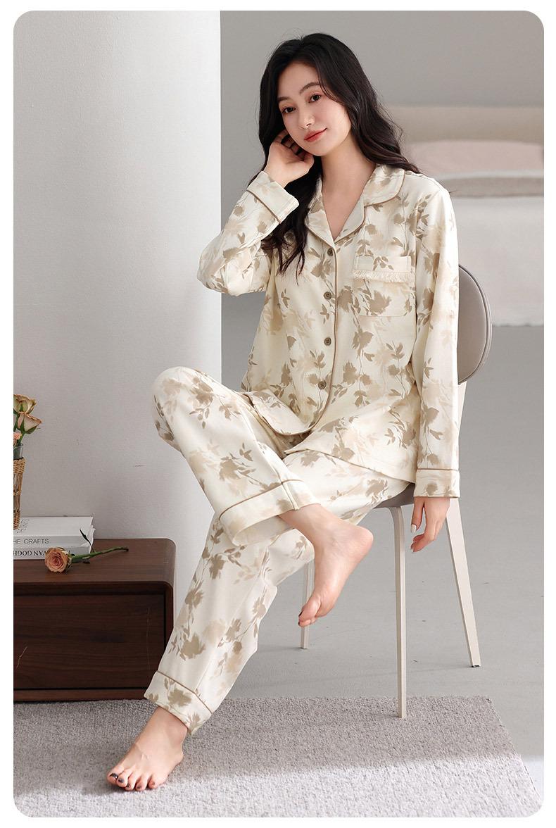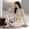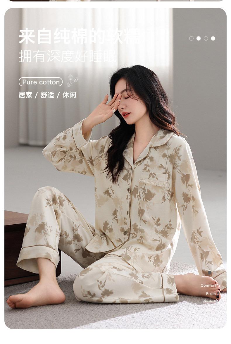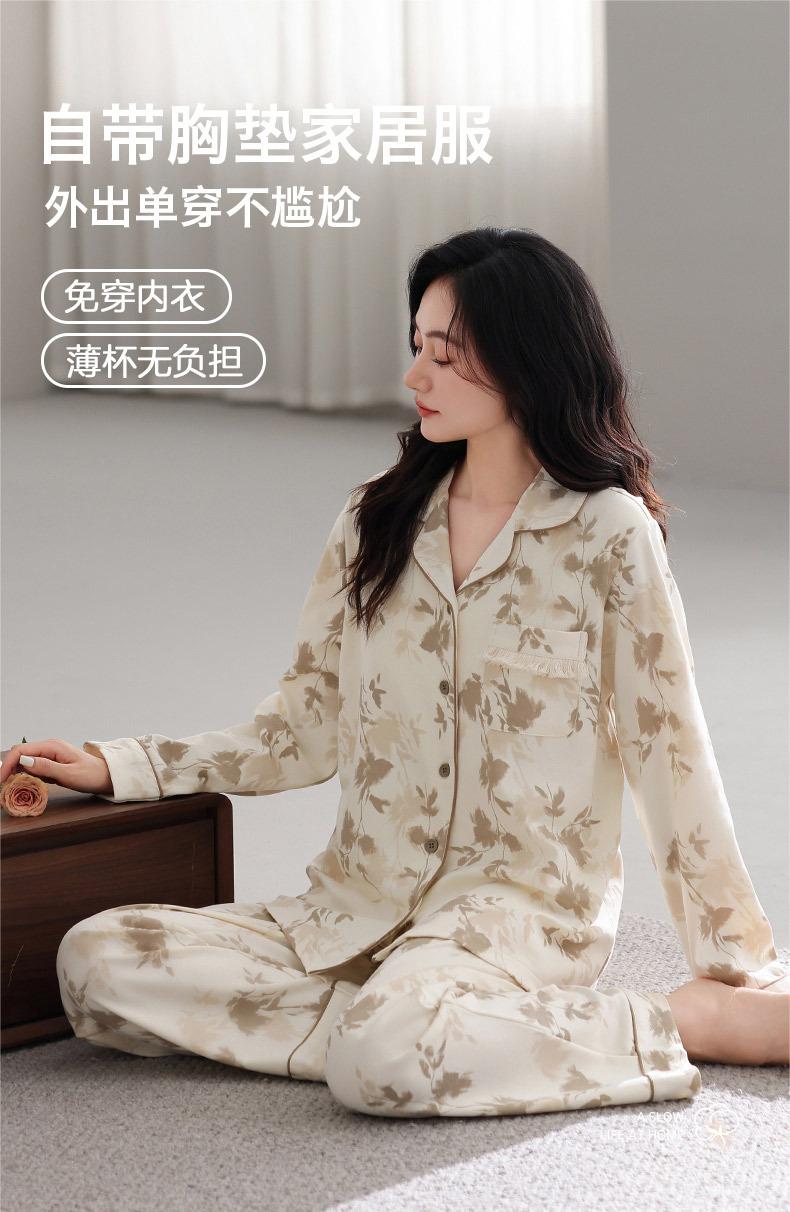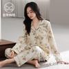Pijama de Algodón Puro de Manga Larga para Primavera y Otoño para Mujer con Almohadillas en el Pecho Nuevo Otoño 2025 Señoras de Mediana Edad Otoño Ropa de Casa de Alta Gama