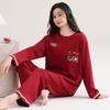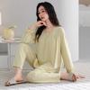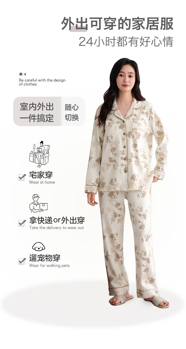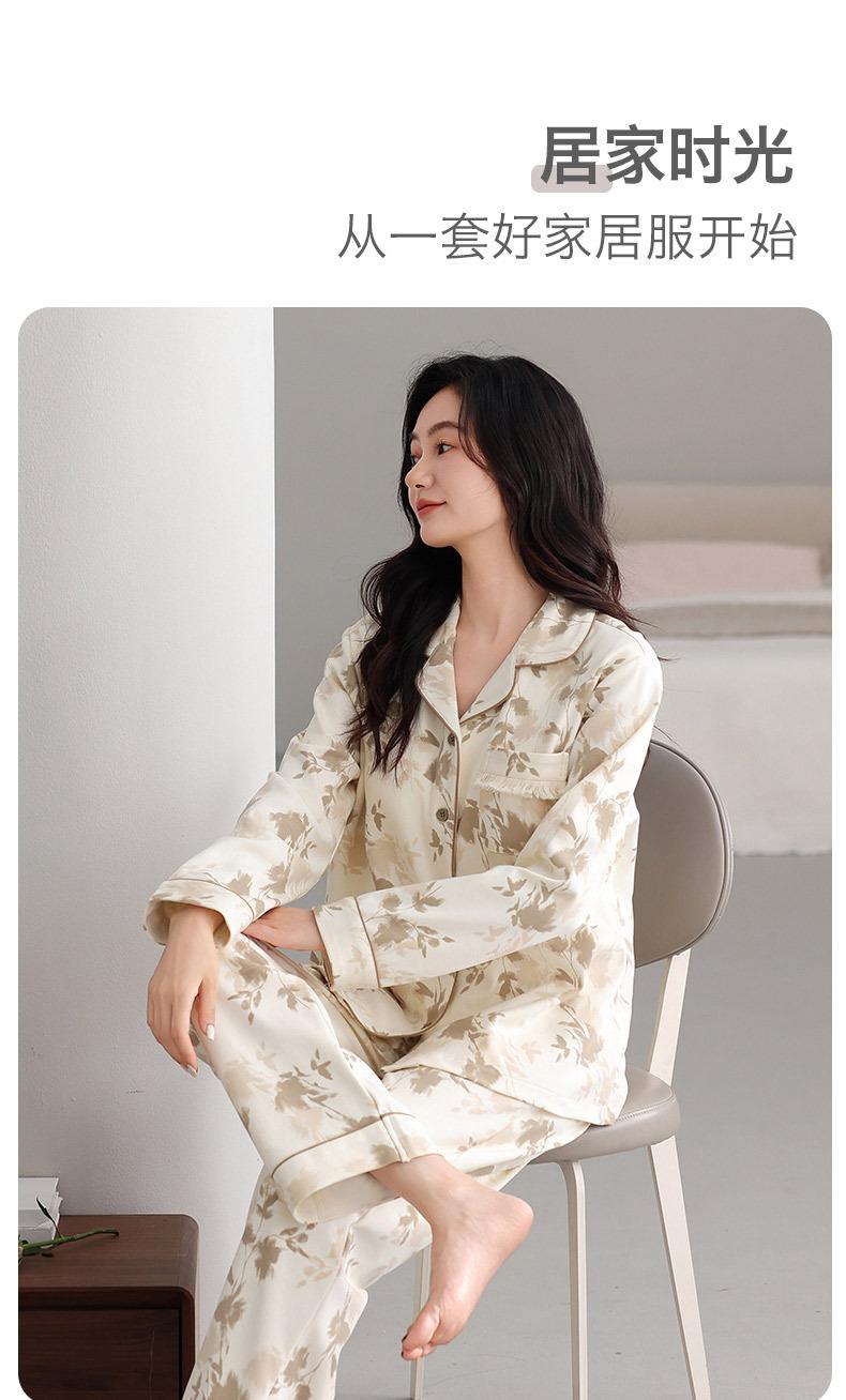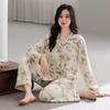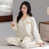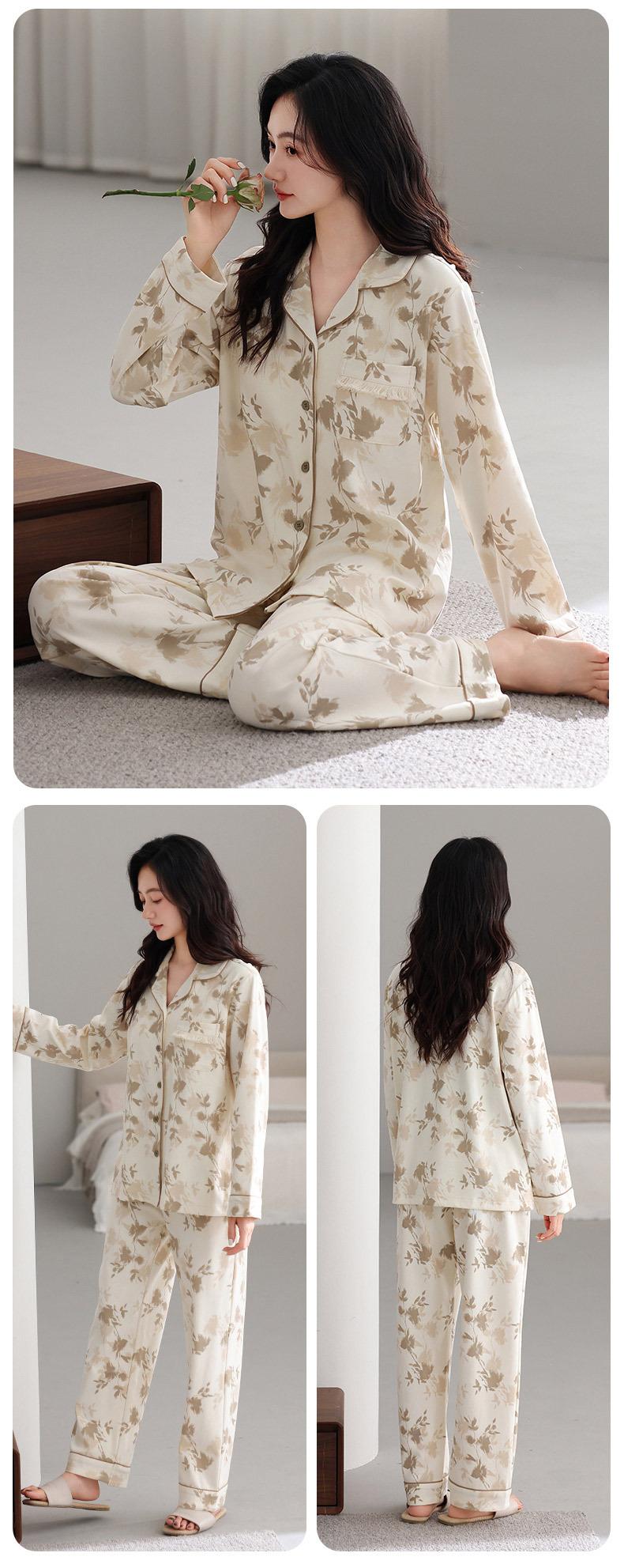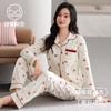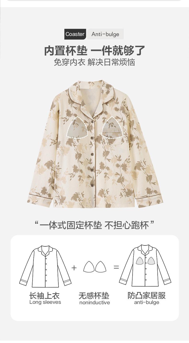 Pijama de Algodón Puro de Manga Larga para Primavera y Otoño para Mujer con Almohadillas en el Pecho Nuevo Otoño 2025 Señoras de Mediana Edad Otoño Ropa de Casa de Alta Gama