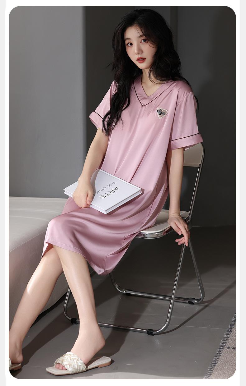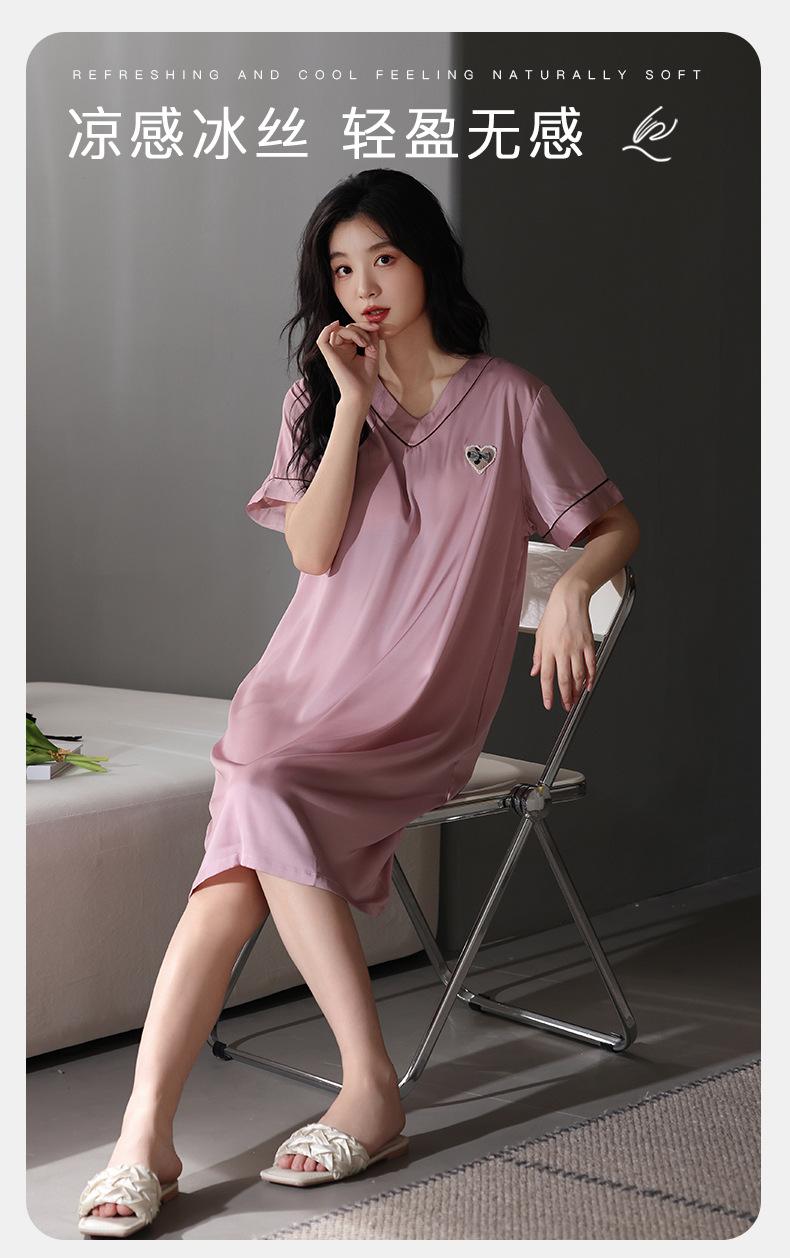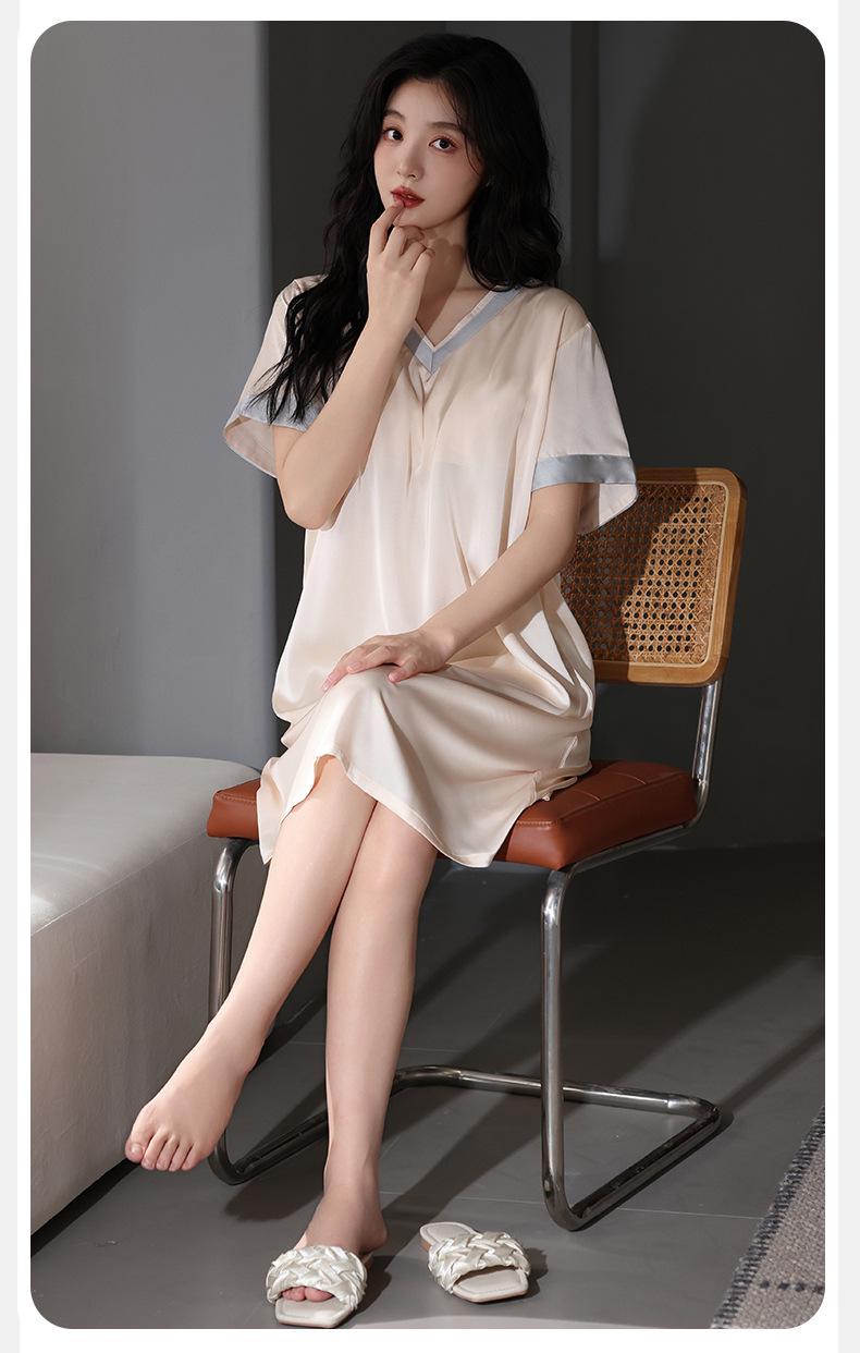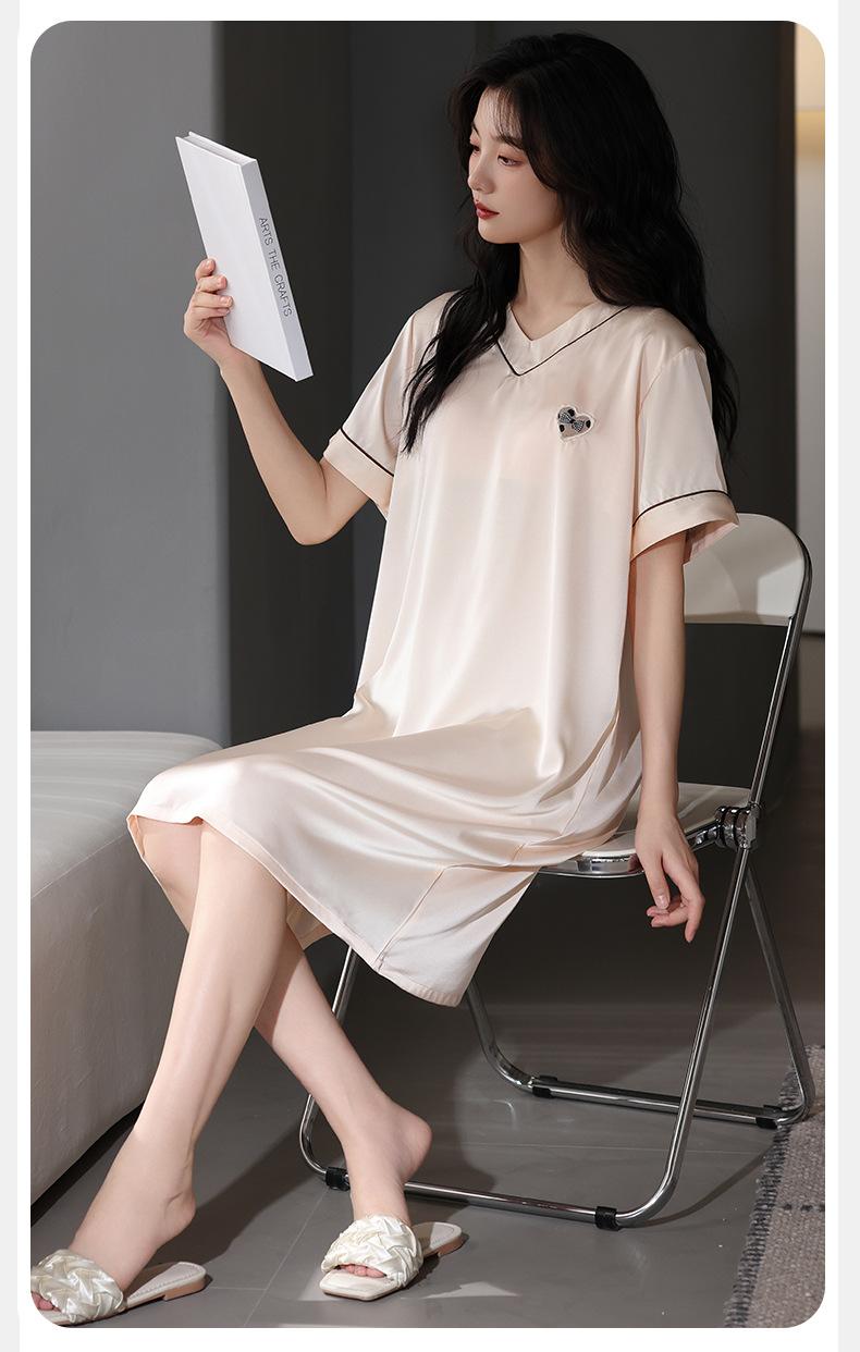 Camisón Pijama de Mujer Verano Seda de Hielo Manga Corta Delgada Fresca 2025 Nuevo Seda de Simulación de Alta Gama Ropa para el Hogar
