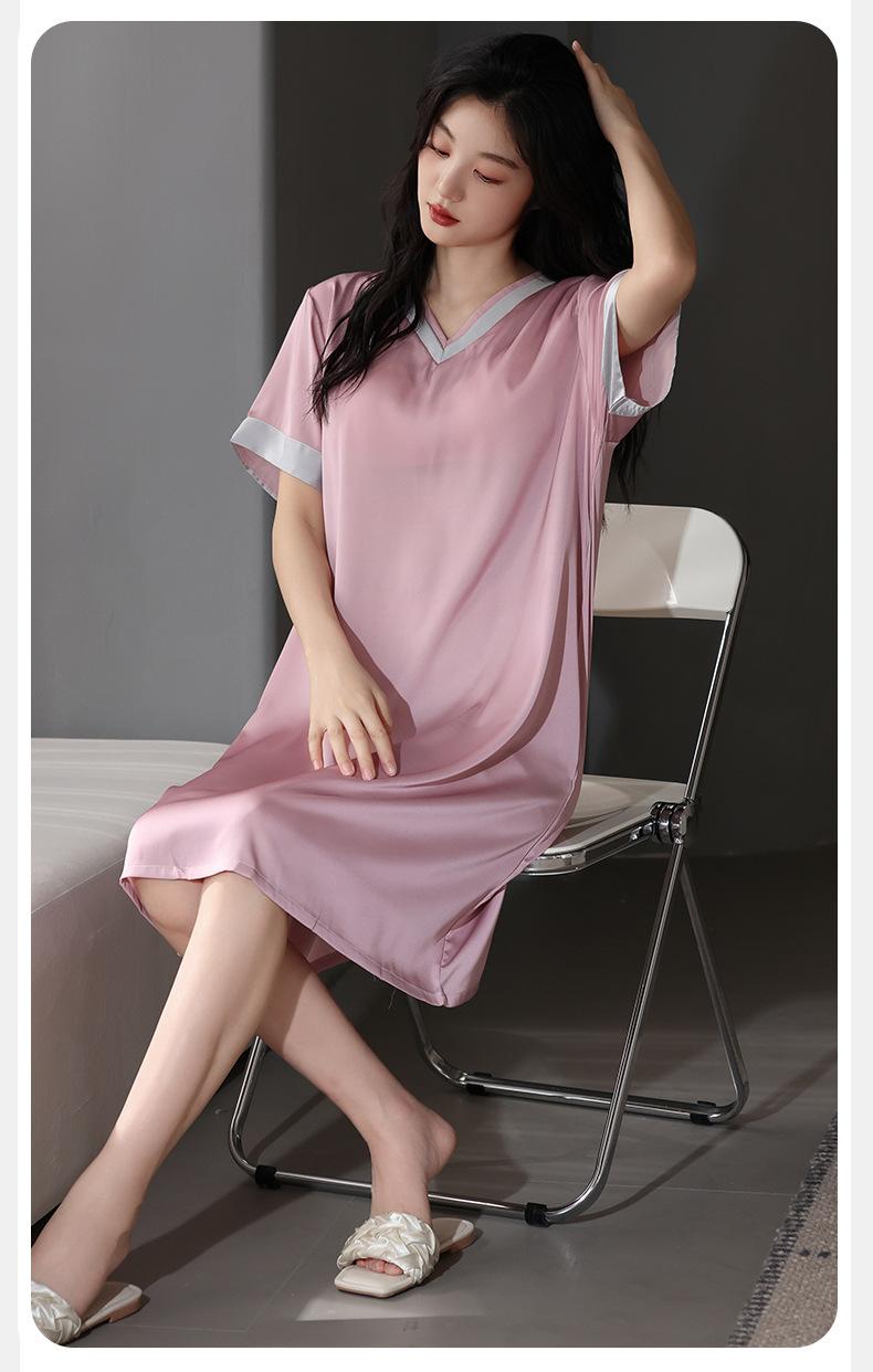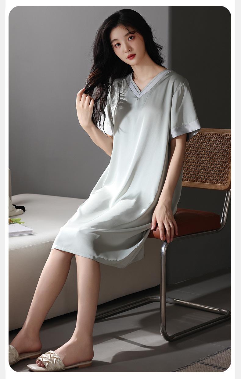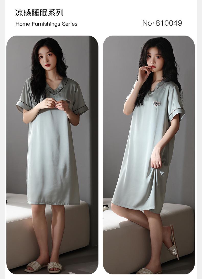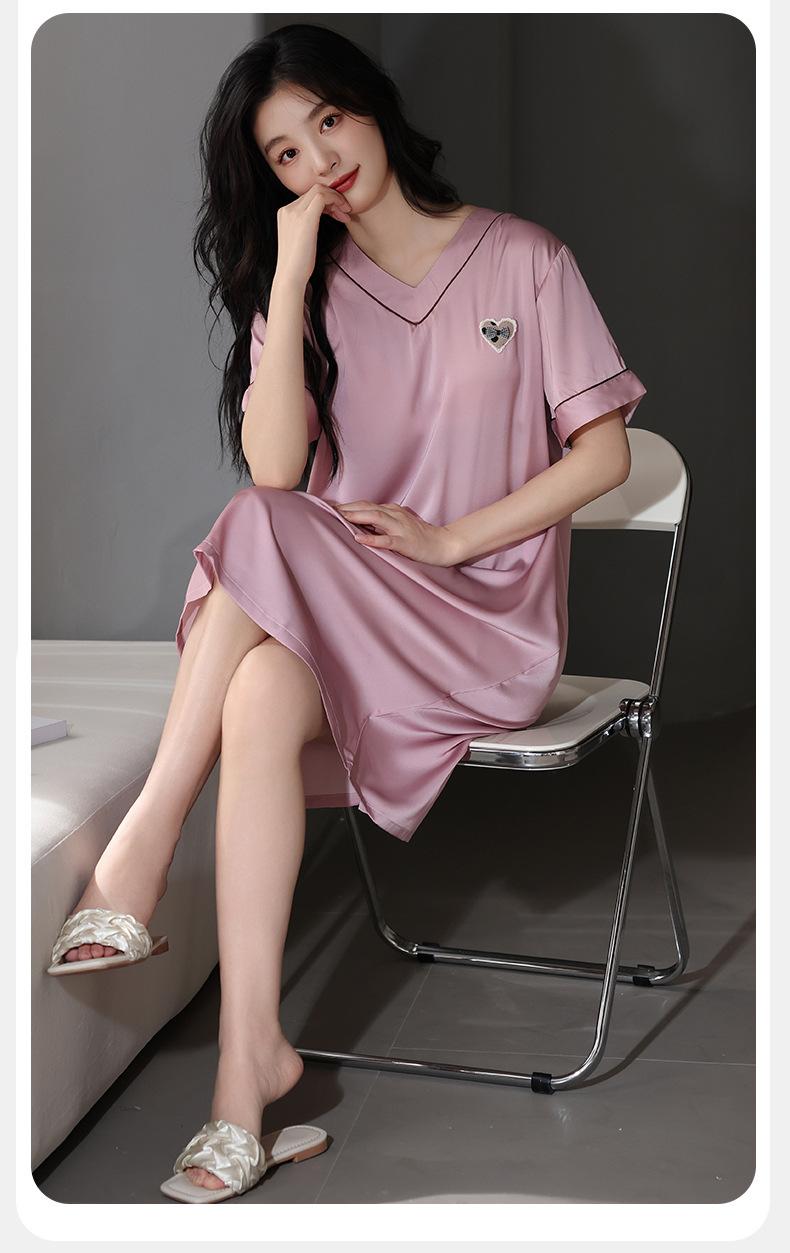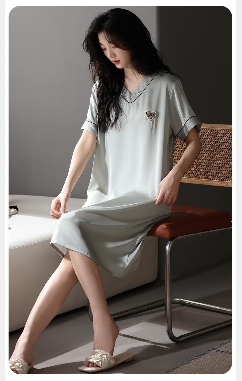 Camisón Pijama de Mujer Verano Seda de Hielo Manga Corta Delgada Fresca 2025 Nuevo Seda de Simulación de Alta Gama Ropa para el Hogar