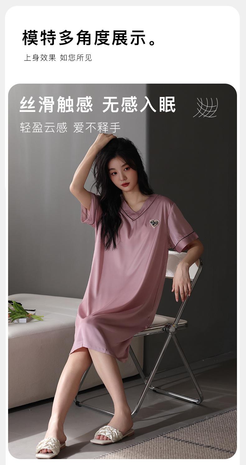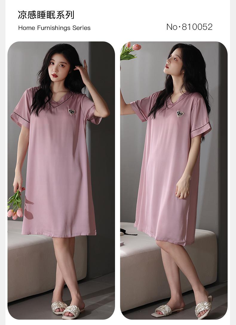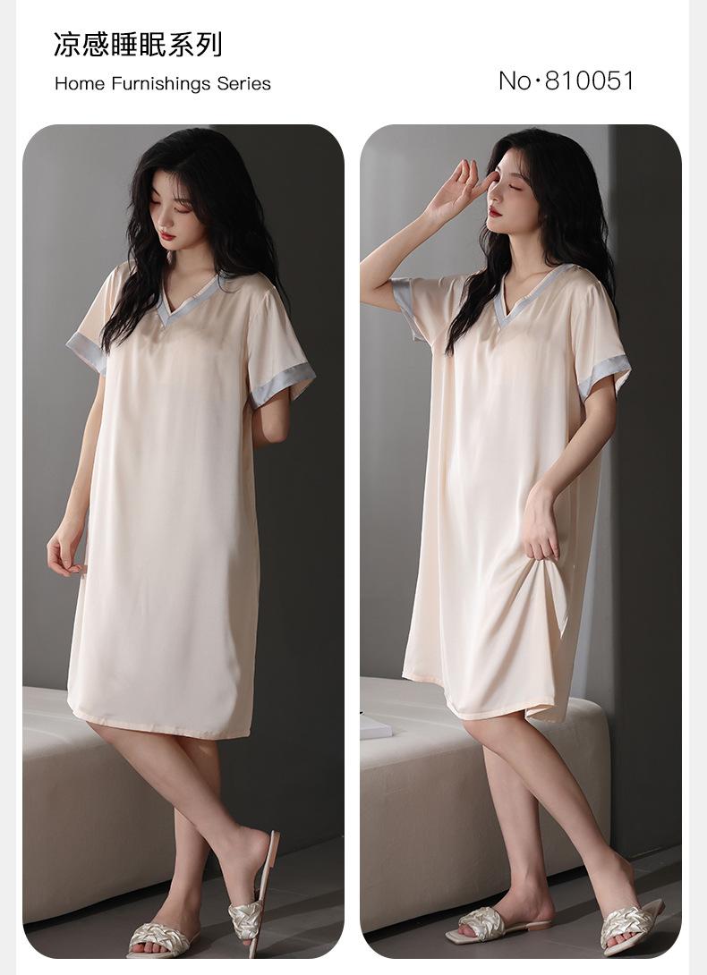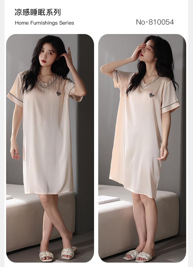 Camisón Pijama de Mujer Verano Seda de Hielo Manga Corta Delgada Fresca 2025 Nuevo Seda de Simulación de Alta Gama Ropa para el Hogar