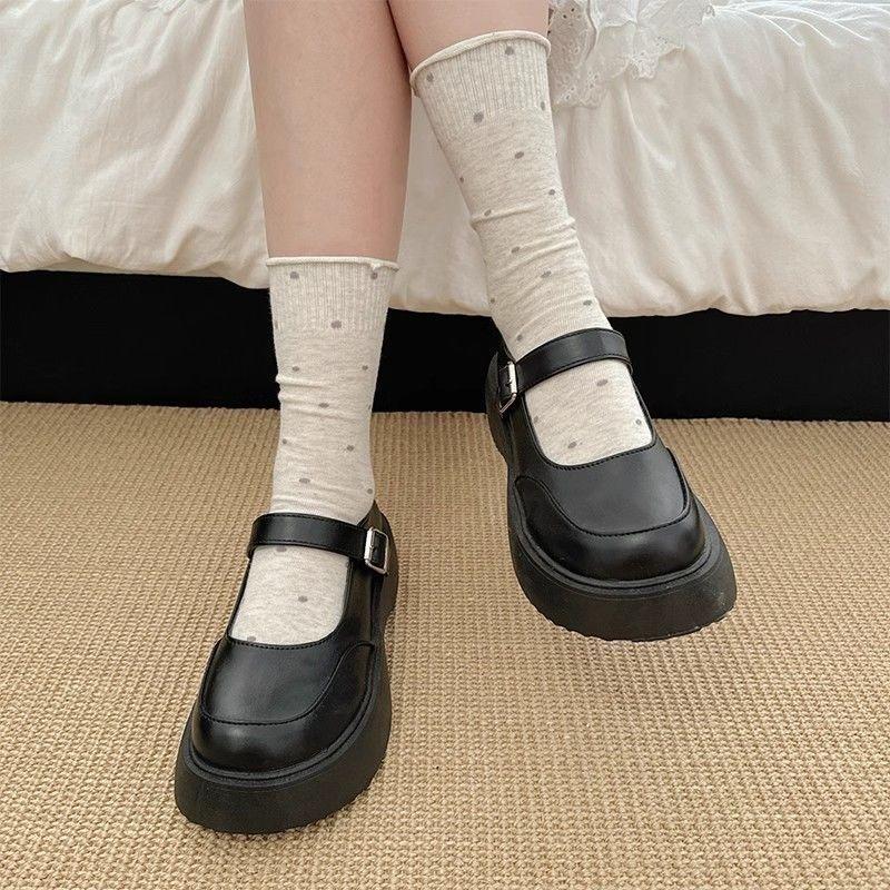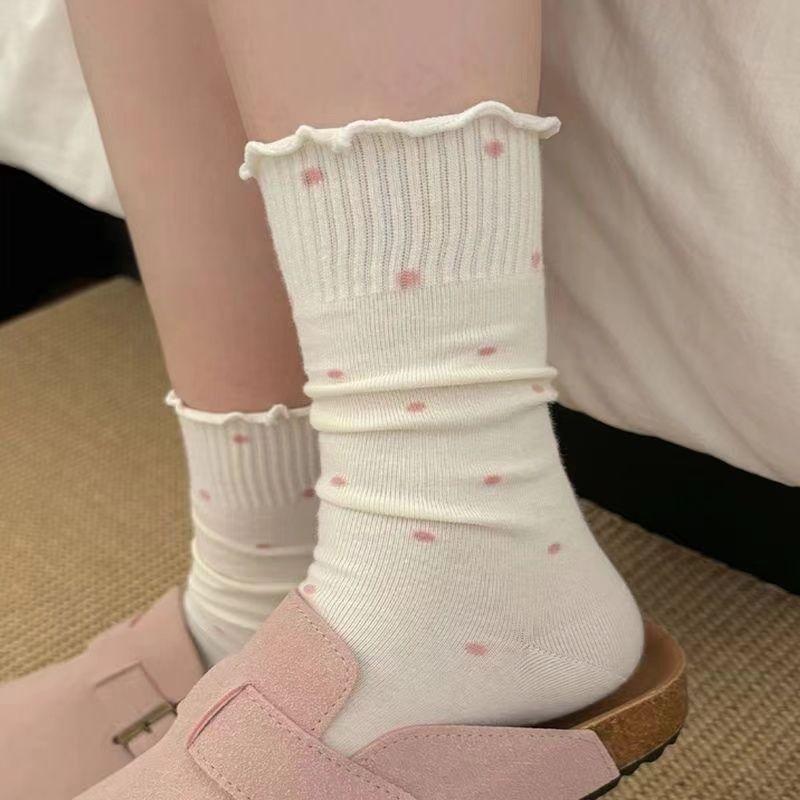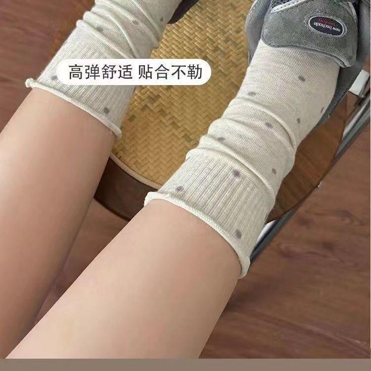 Calcetines de mujer ins media pantorrilla encaje de oreja verano lunares lindos calcetines holgados primavera y otoño calcetines de estudiante japonés calcetines largos de mujer
