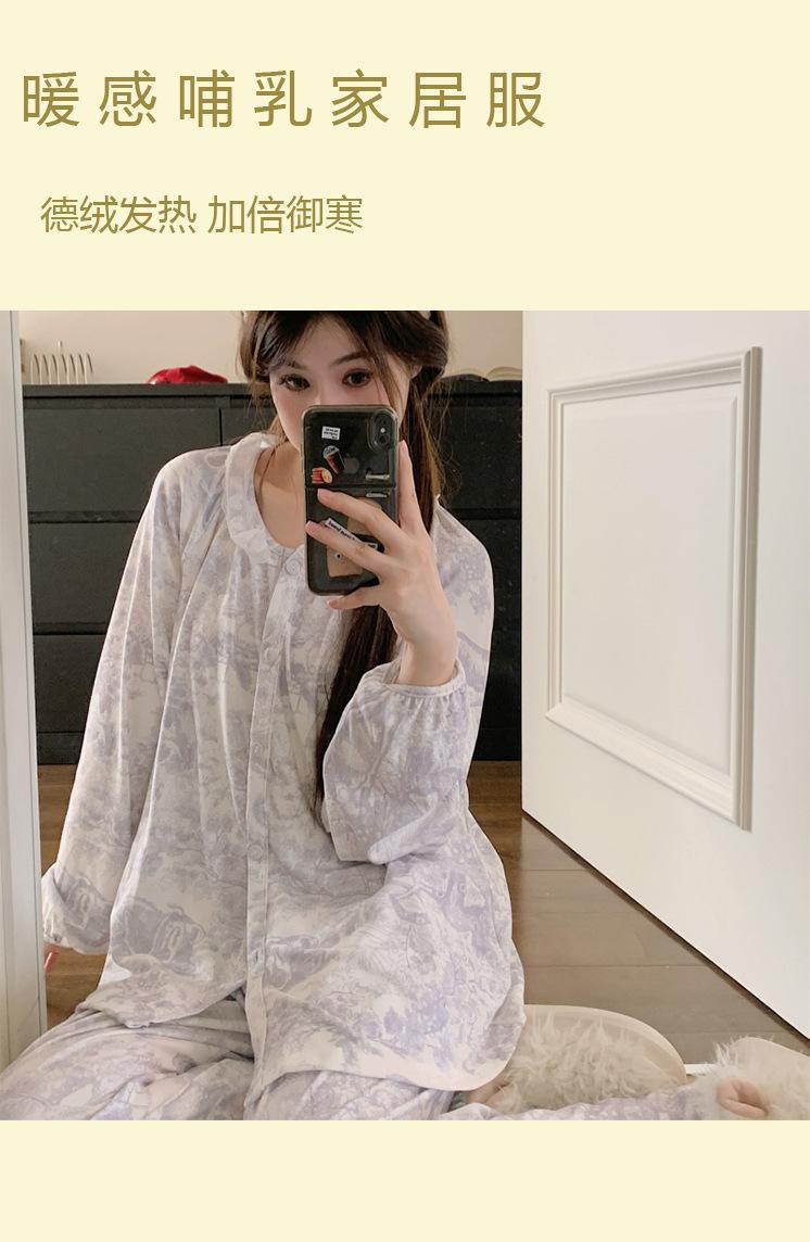 Xi Yue De terciopelo con copas en el pecho engrosado talla grande ropa de maternidad 2025 nuevo otoño e invierno mujeres embarazadas posparto lactancia pijama cálido