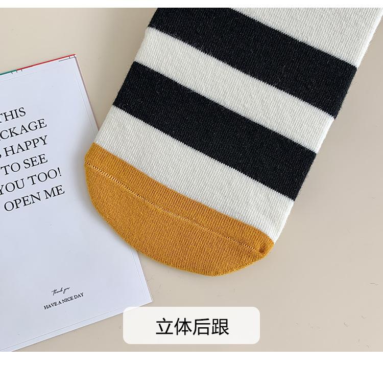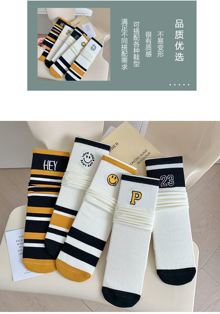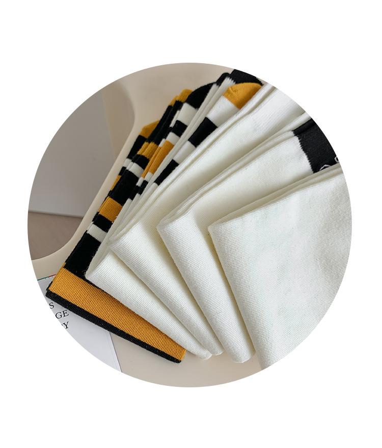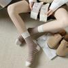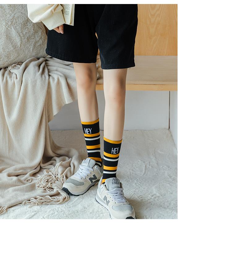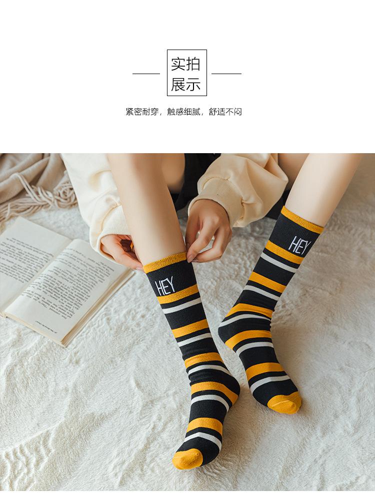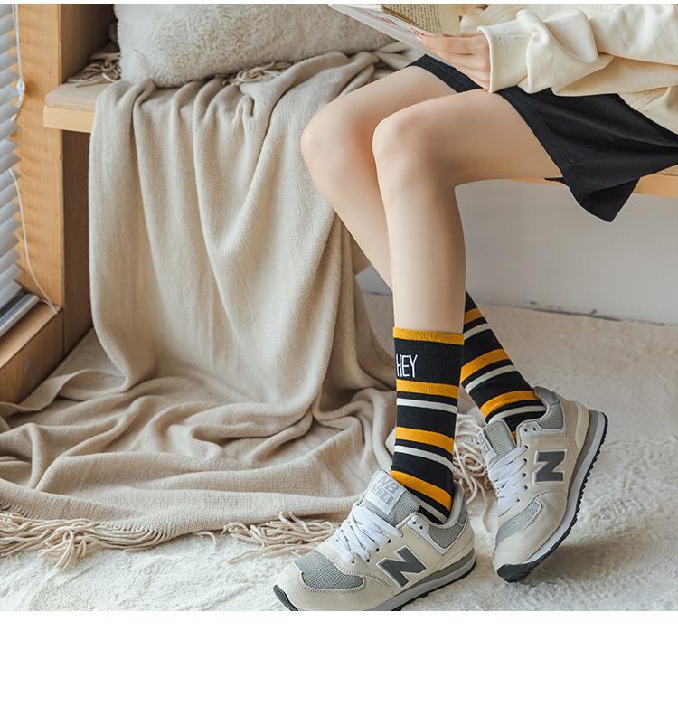 Calcetines de Felpa para Mujer Otoño e Invierno Nuevos Calcetines de Media Caña Tendencia Rayados Color Café Calcetines Largos Calcetines Japoneses con Letras Bordadas