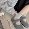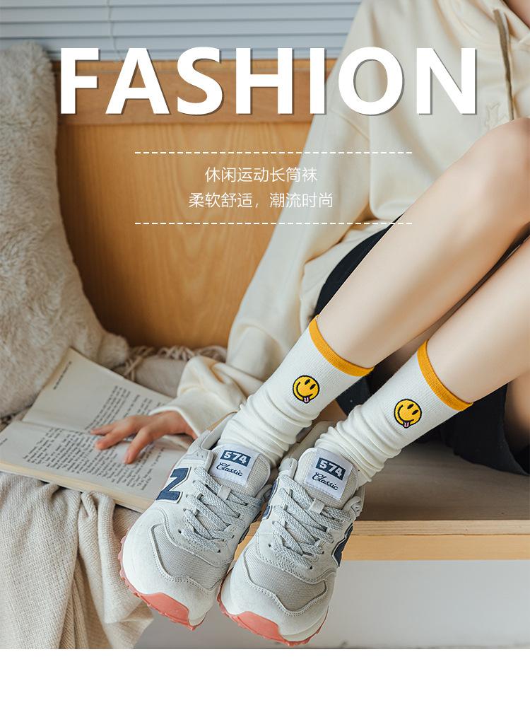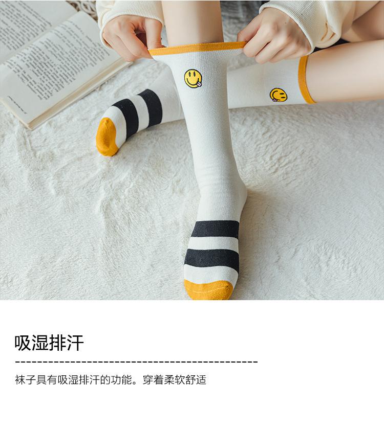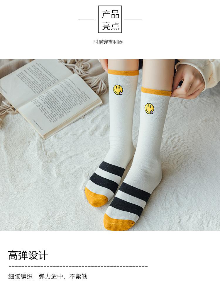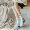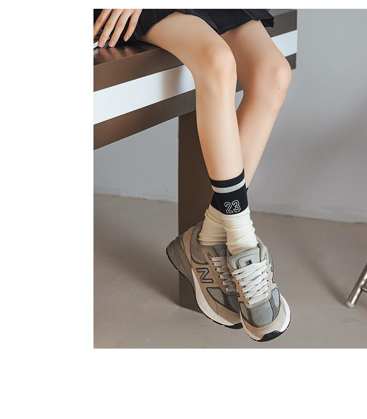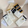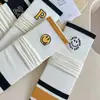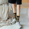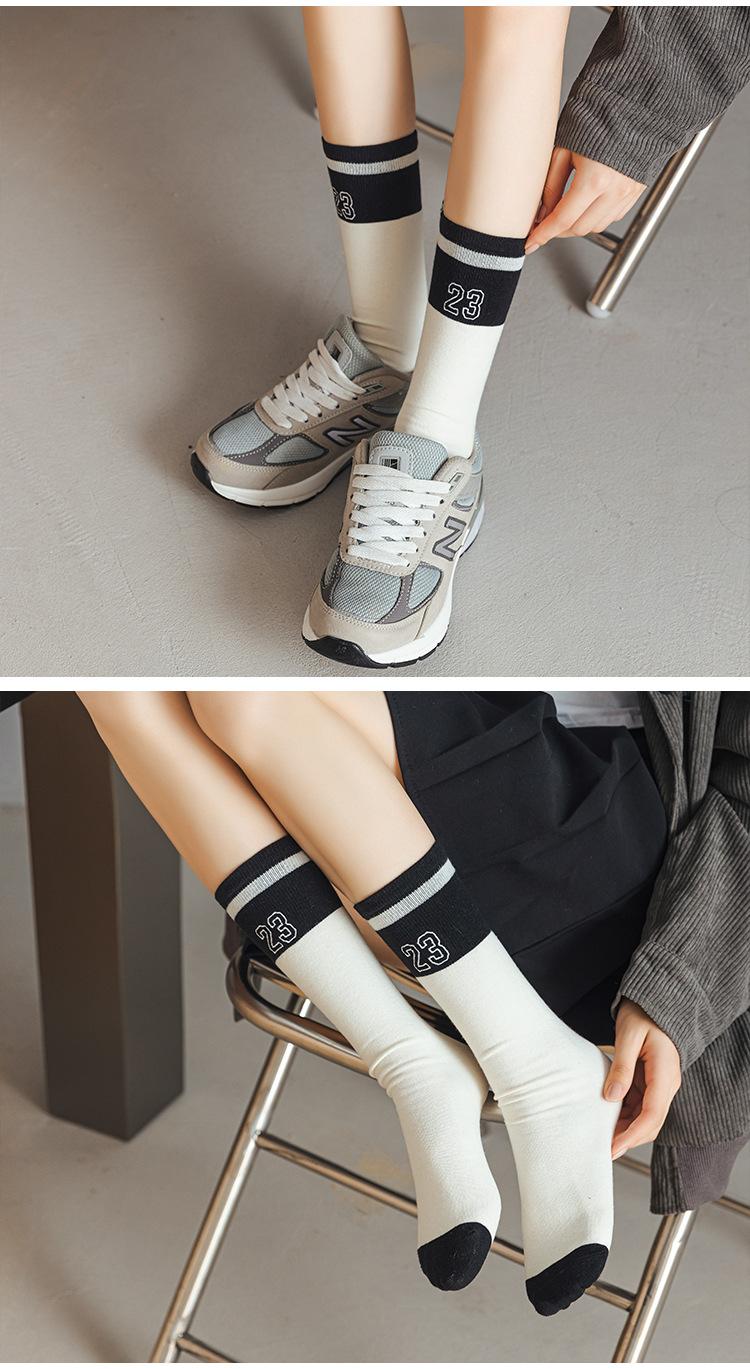 Calcetines de Felpa para Mujer Otoño e Invierno Nuevos Calcetines de Media Caña Tendencia Rayados Color Café Calcetines Largos Calcetines Japoneses con Letras Bordadas