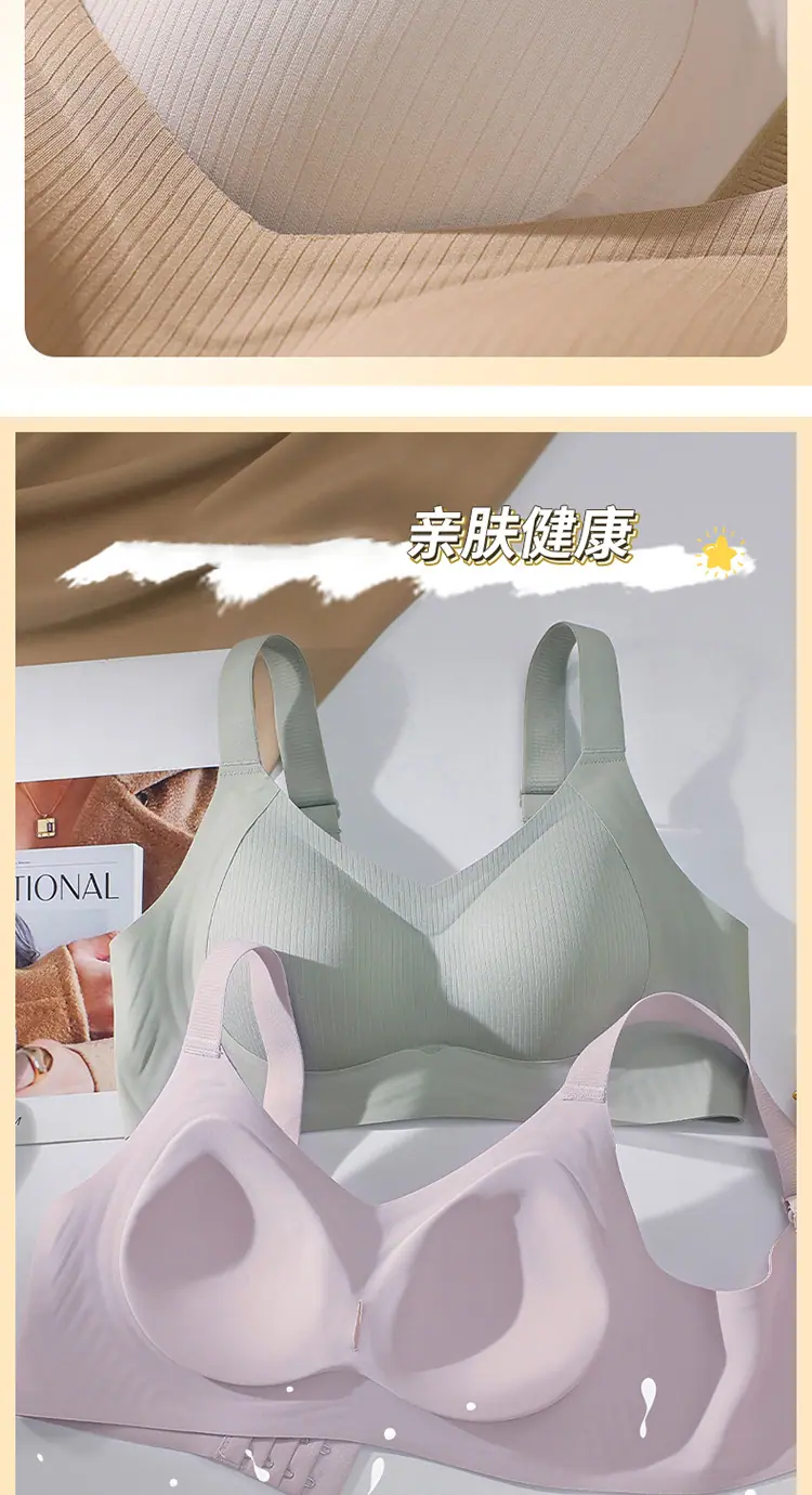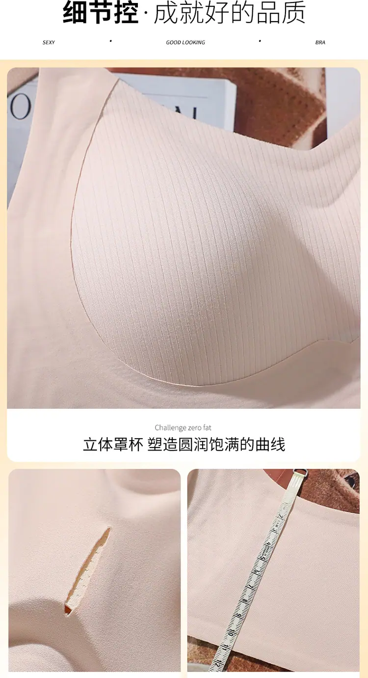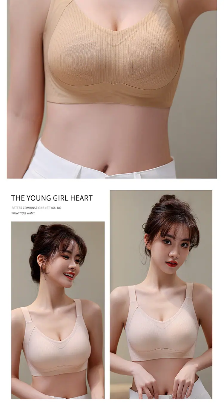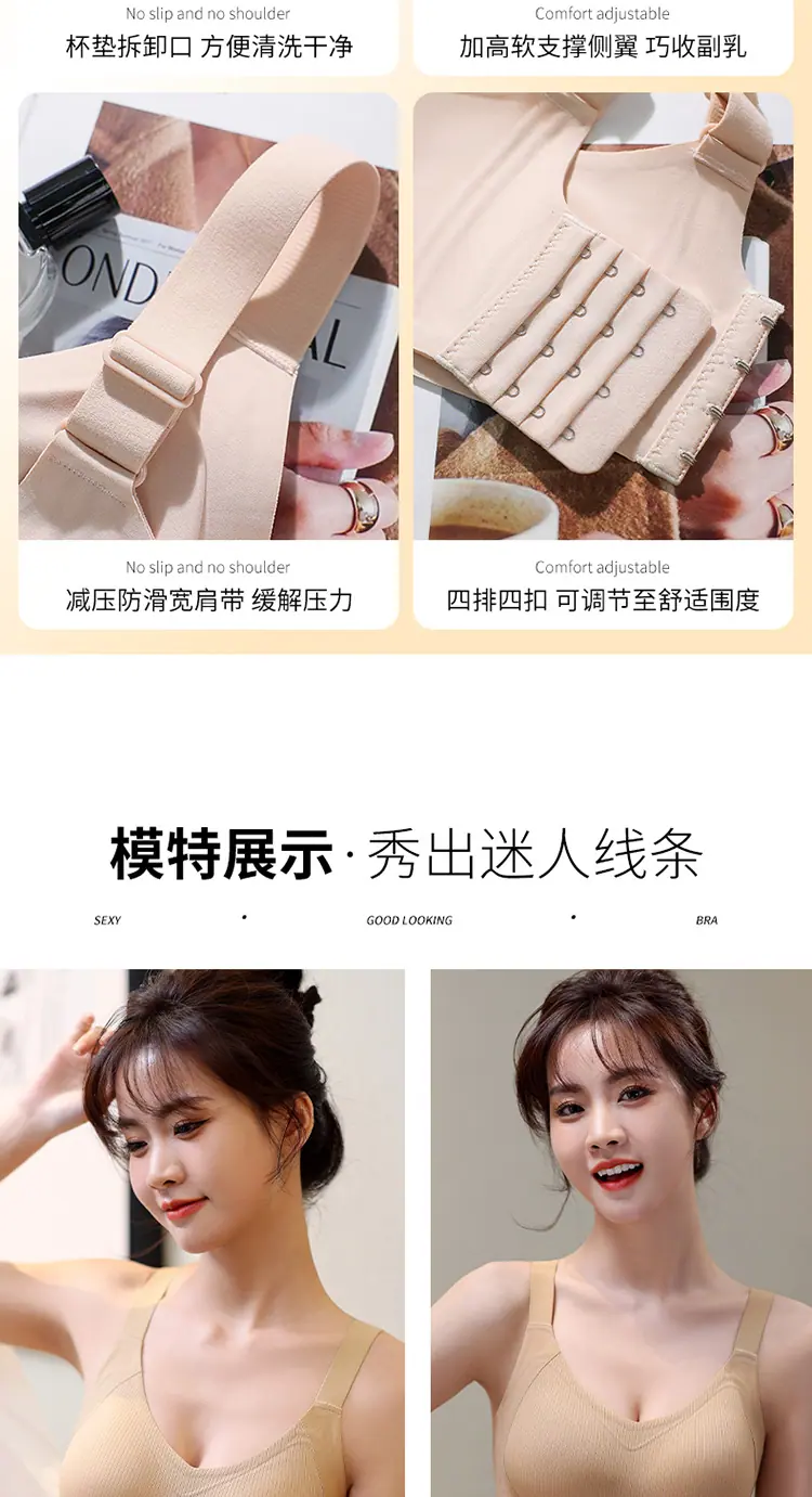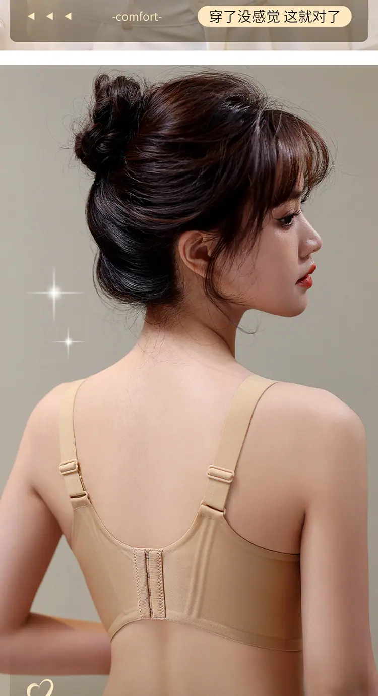 Ropa Interior para Mujer Verano Delgada Transpirable Pecho Pequeño Realce Soporte Lateral Anticaída Encaje Transpirable Sujetador sin Varillas