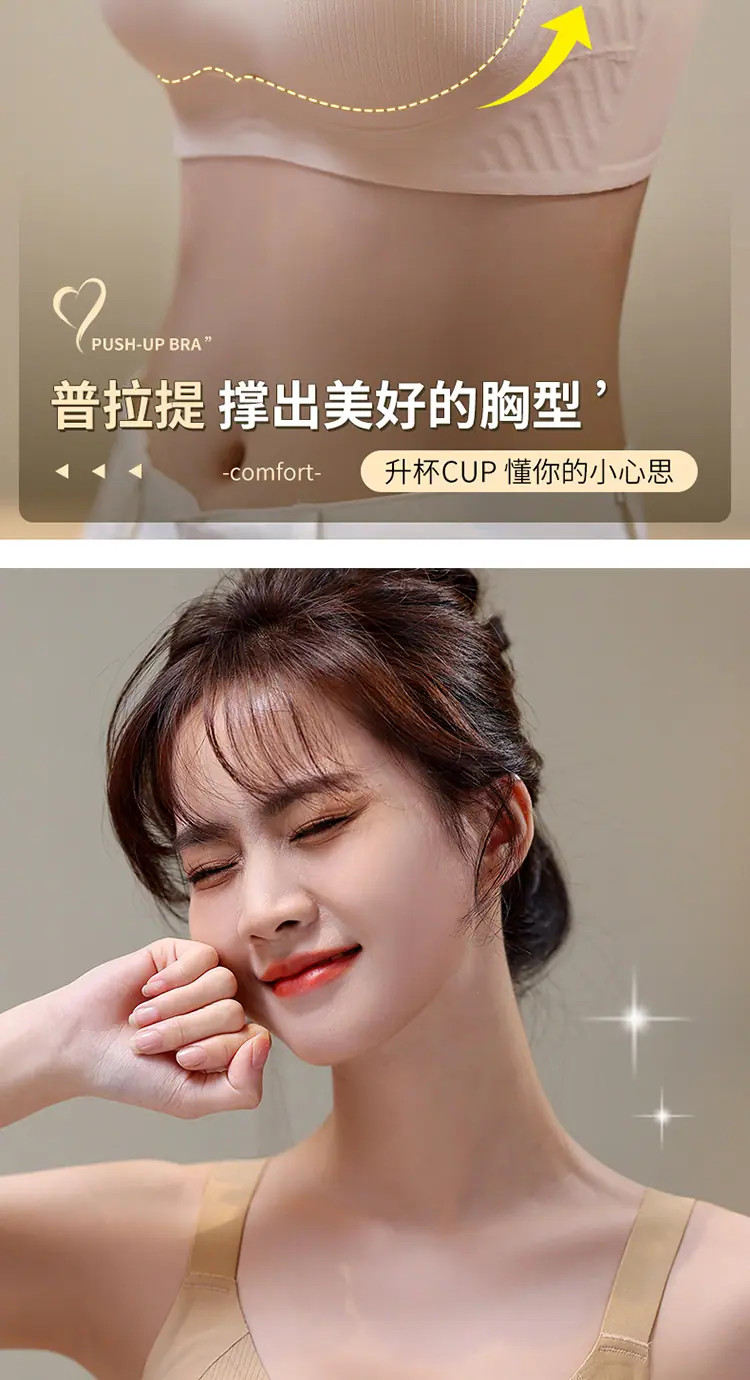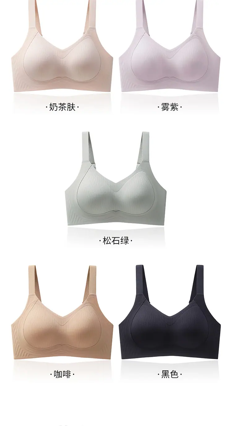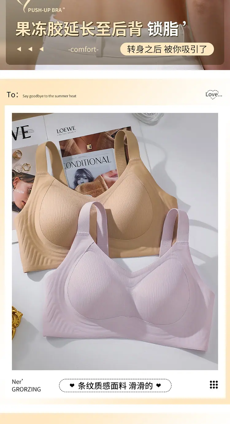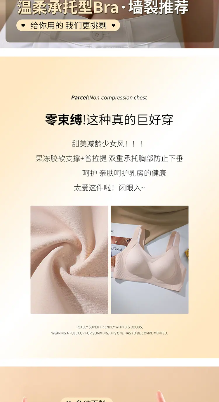 Ropa Interior para Mujer Verano Delgada Transpirable Pecho Pequeño Realce Soporte Lateral Anticaída Encaje Transpirable Sujetador sin Varillas