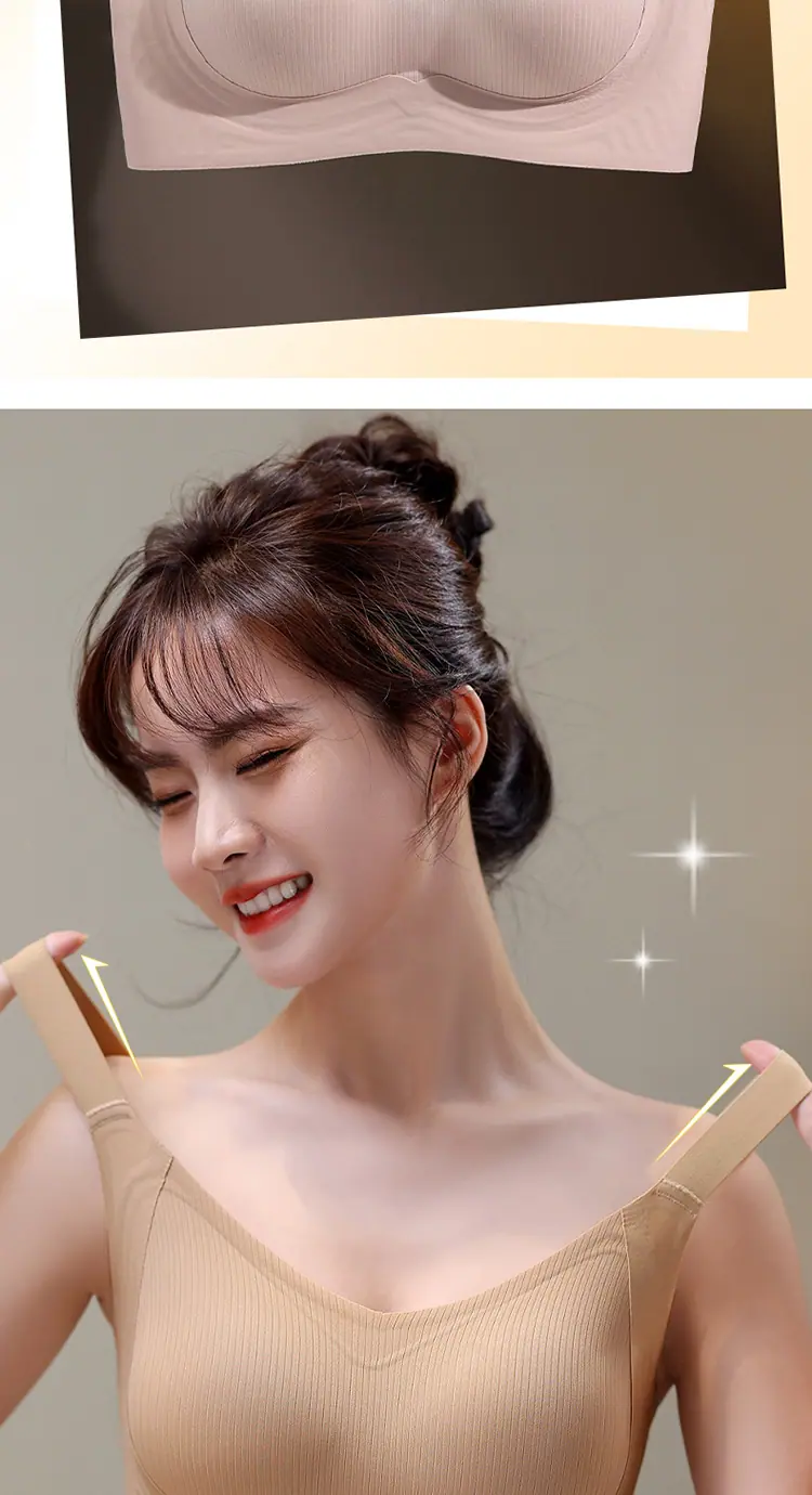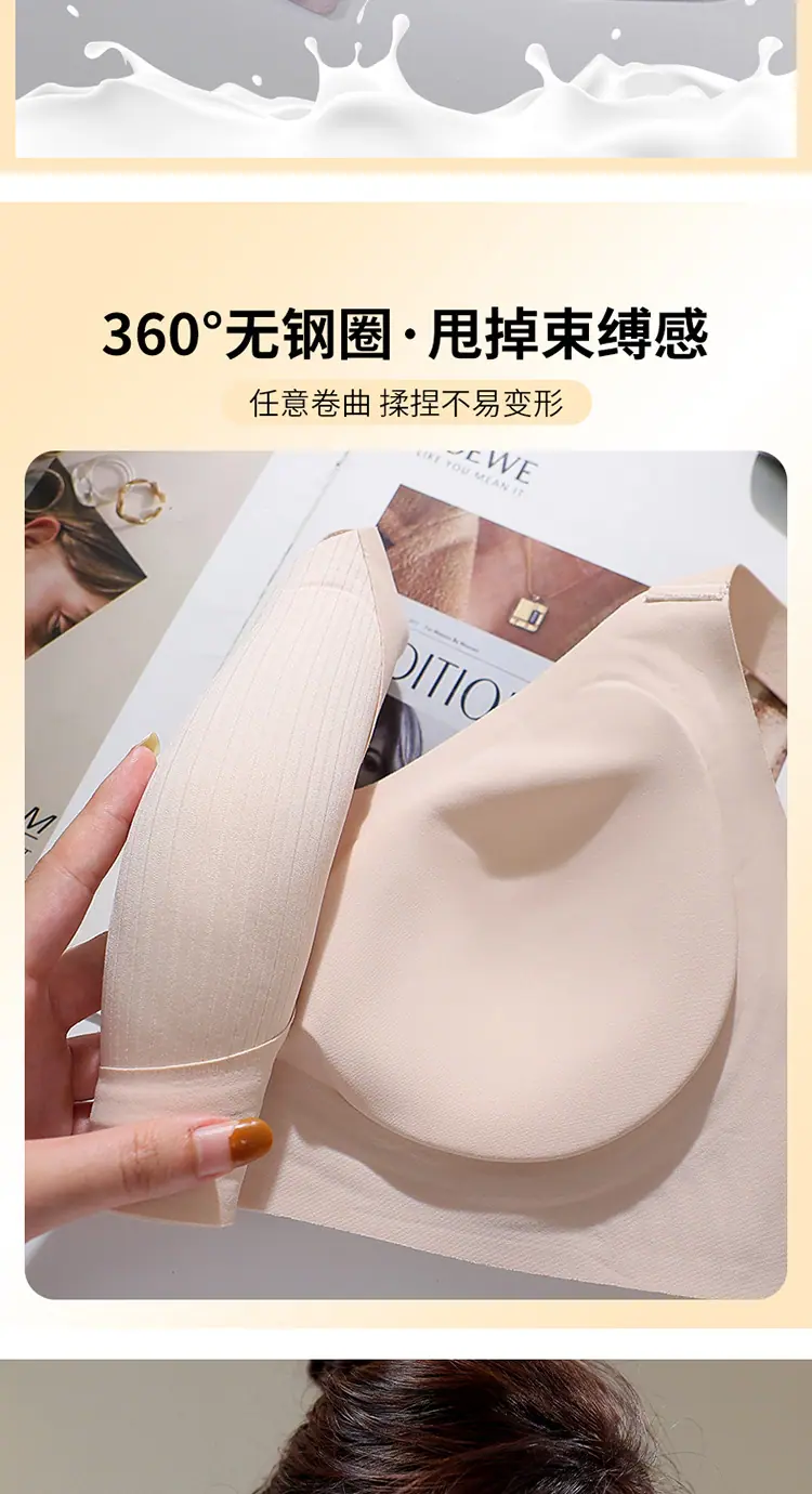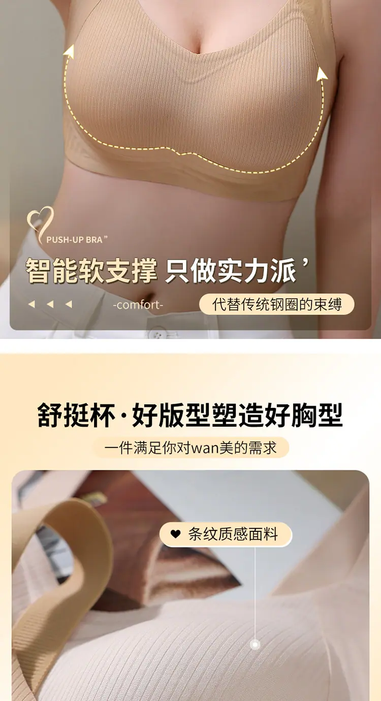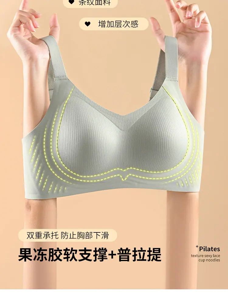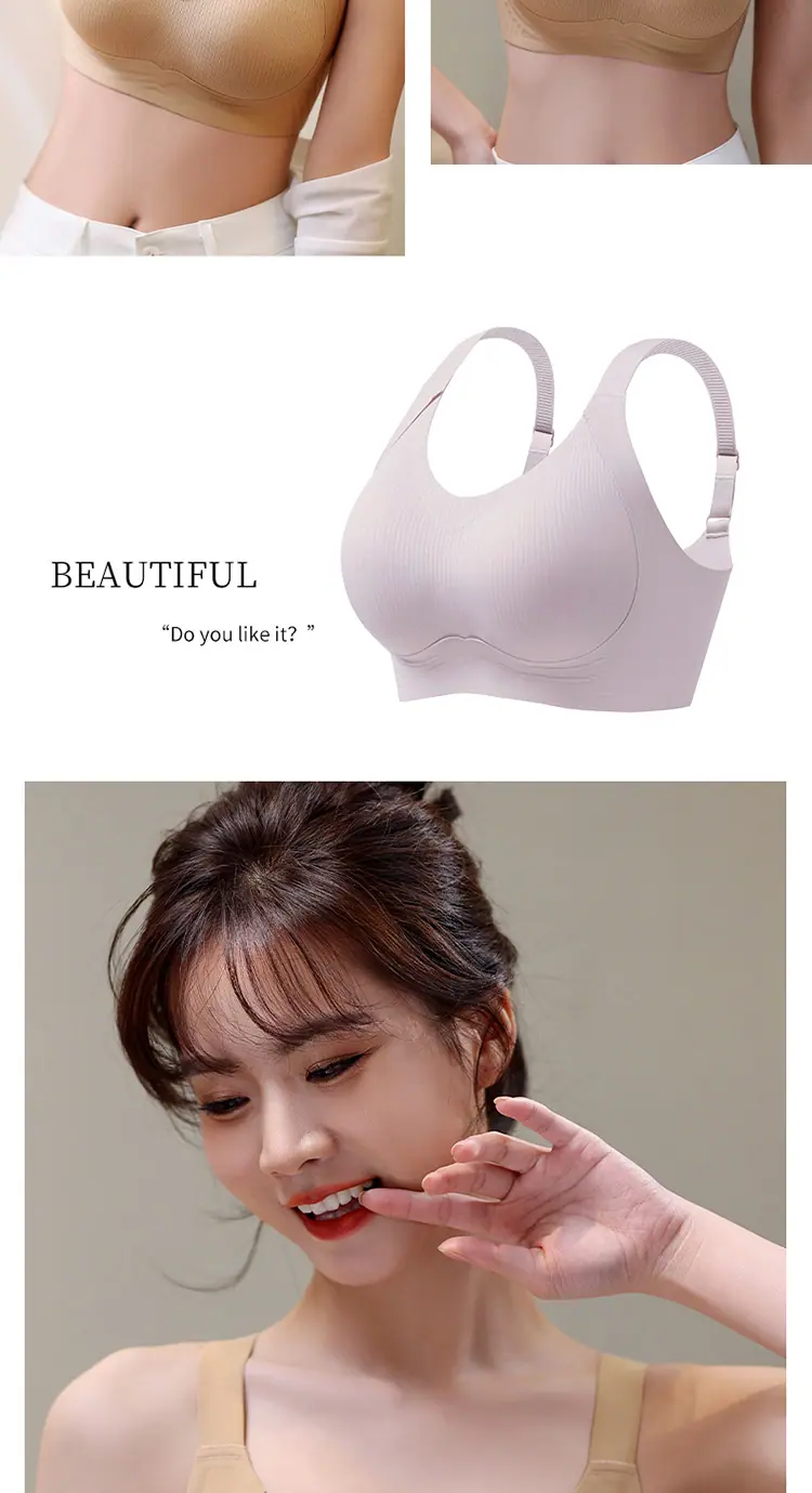 Ropa Interior para Mujer Verano Delgada Transpirable Pecho Pequeño Realce Soporte Lateral Anticaída Encaje Transpirable Sujetador sin Varillas