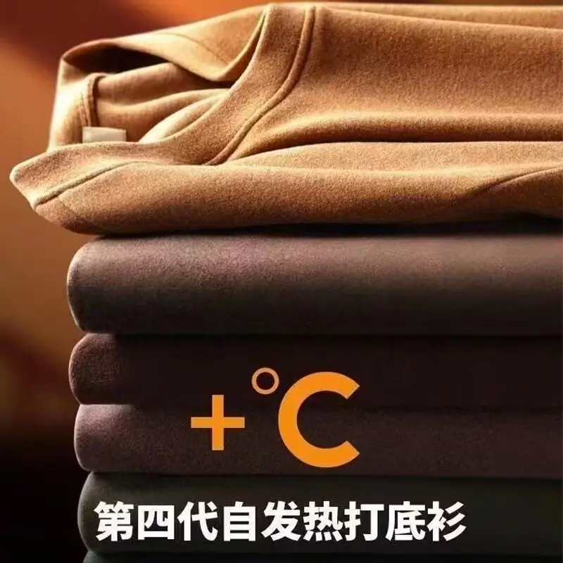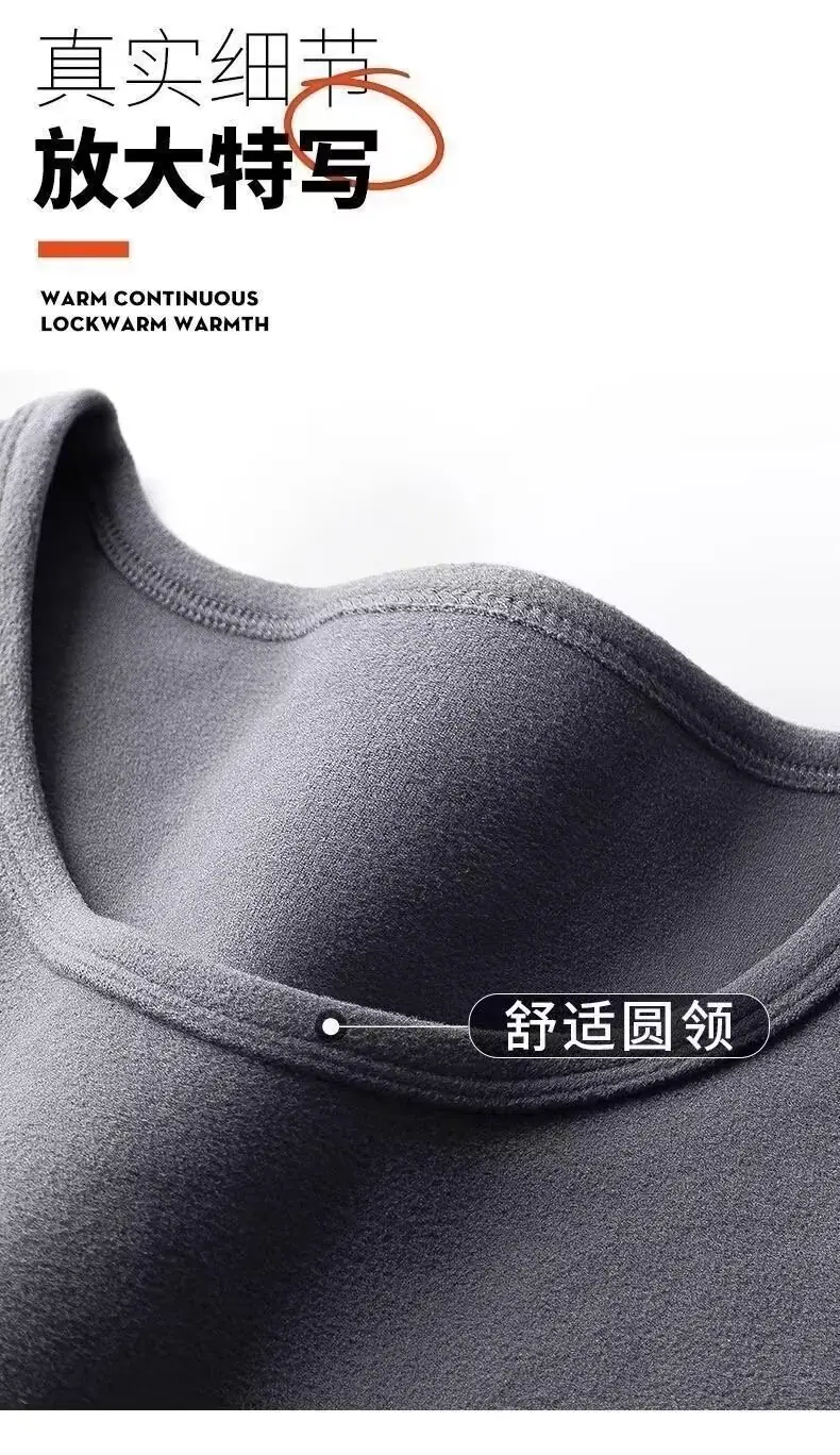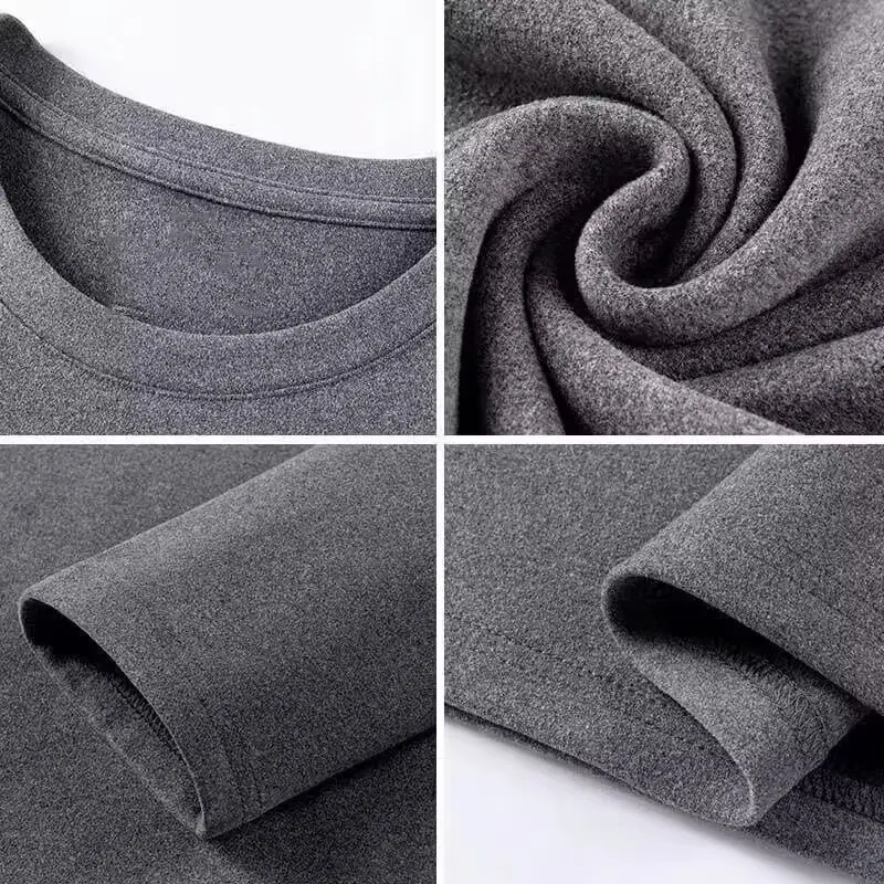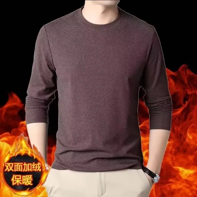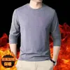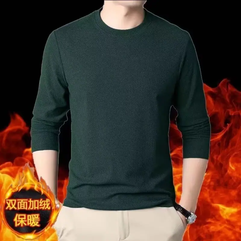 Otoño e invierno temperatura constante y calidez cuello redondo para hombre color sólido camiseta interior base nueva terciopelo alemán de doble cara camiseta de manga larga top para hombre