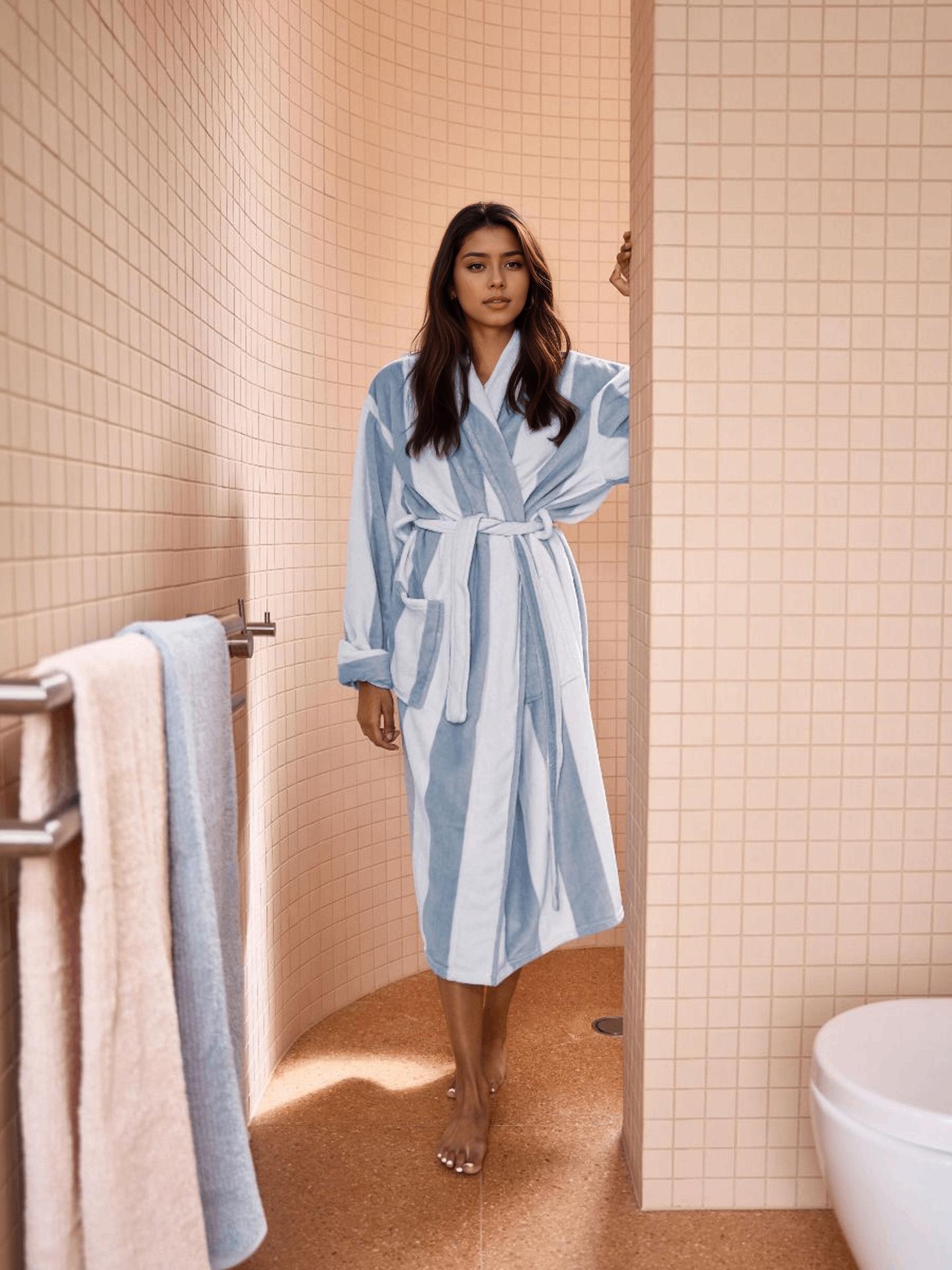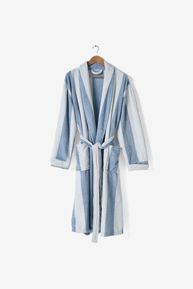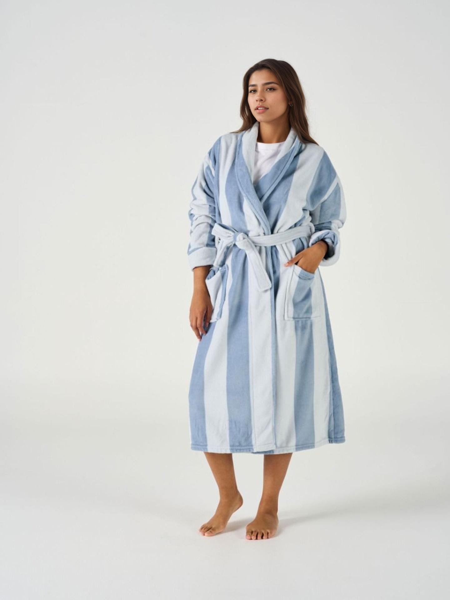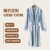 Bata de Casa para Mujer Personalizada Amazon Transfronteriza Bata Albornoz Franela Coral Larga Rayada Ropa de Casa Albornoz