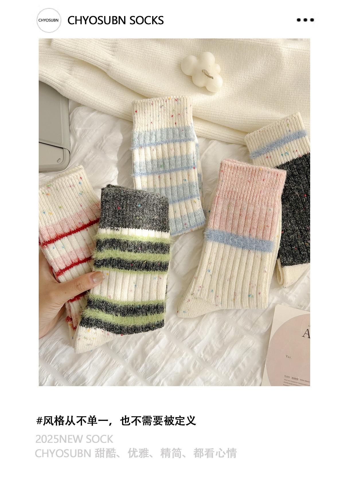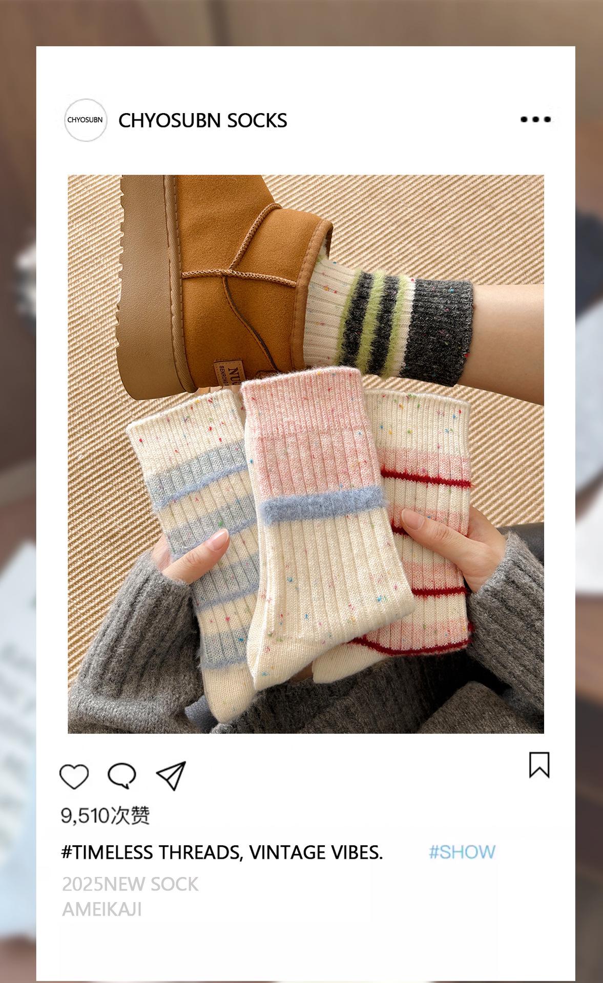 Calcetines de lana de otoño e invierno para mujer ins calcetines de algodón a rayas japoneses antibacterianos antiolor calcetines de algodón grueso de invierno calcetines modernos hasta la mitad de la pantorrilla