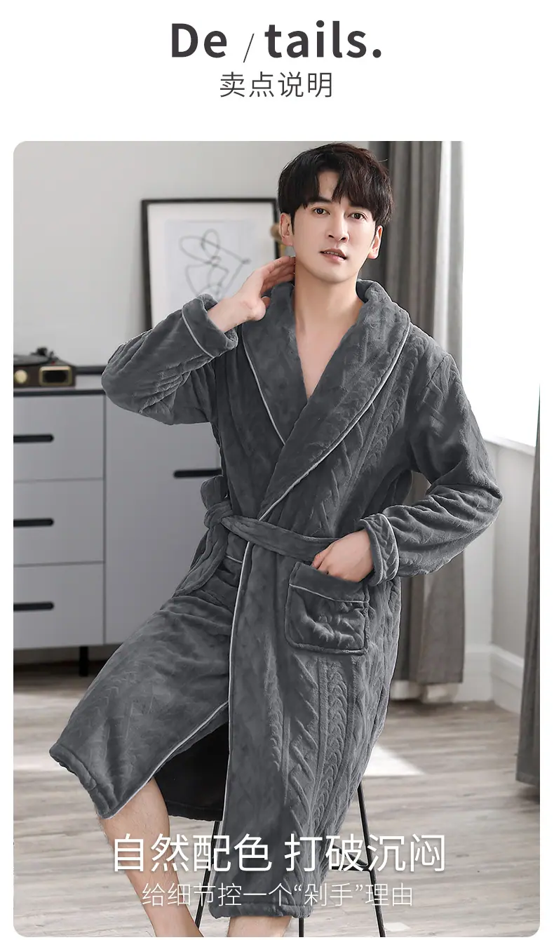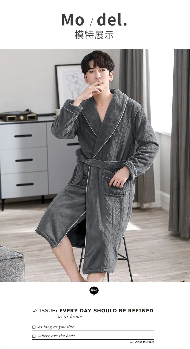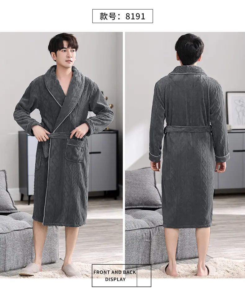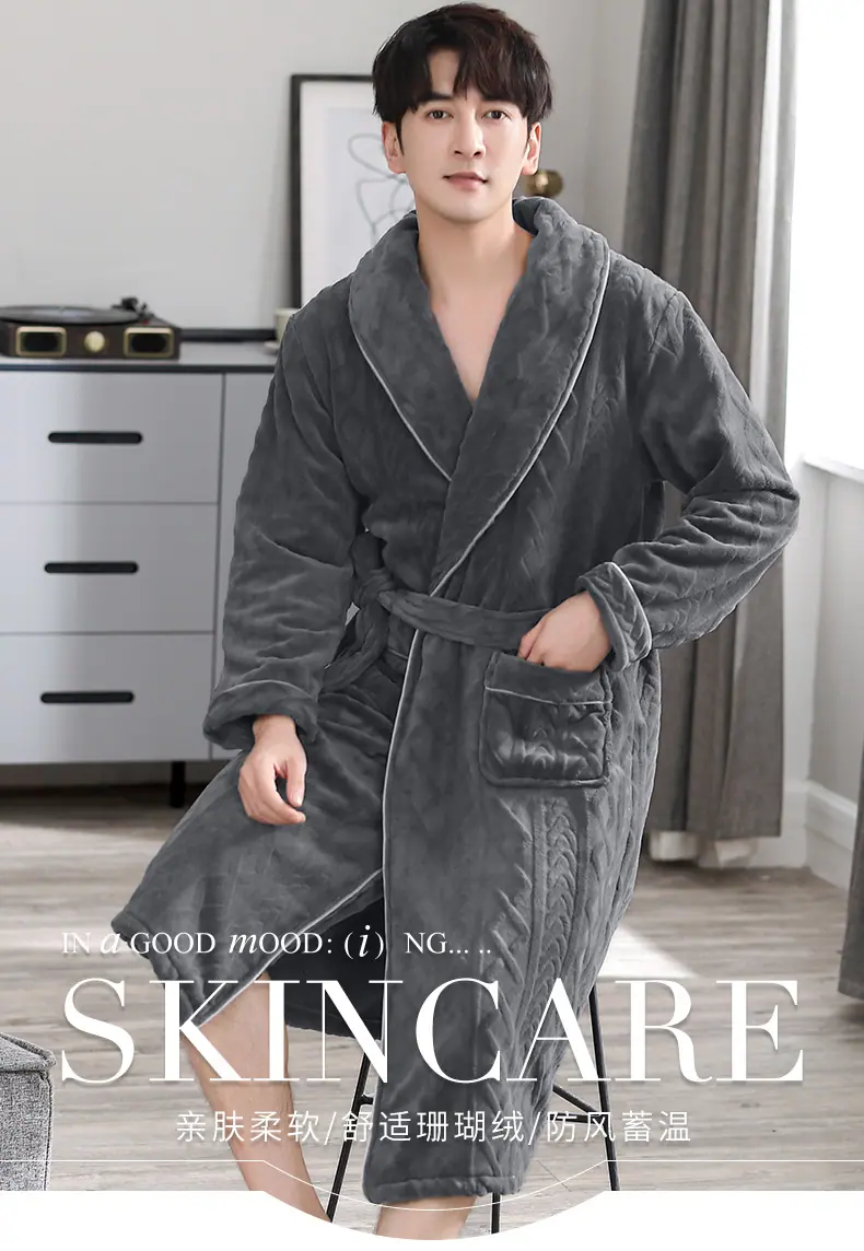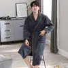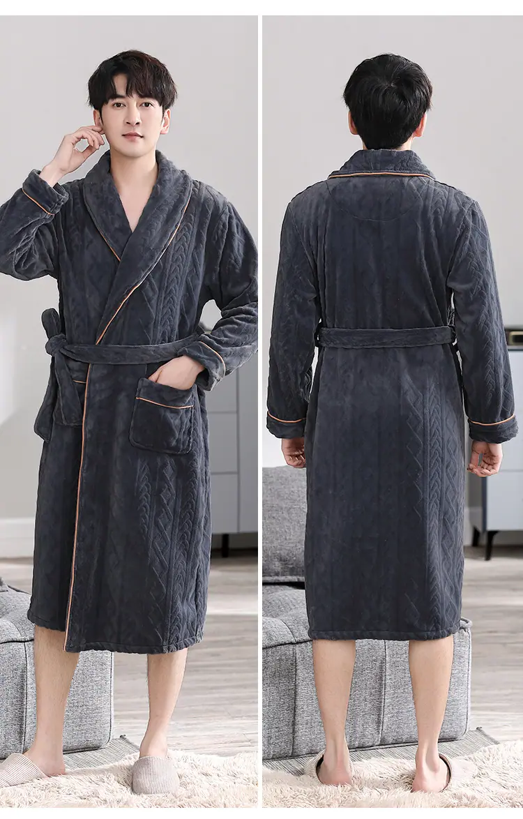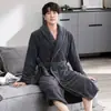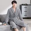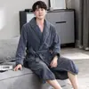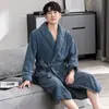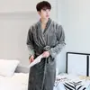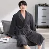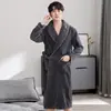 Bata Sólida para Hombre Otoño Invierno Media Longitud Gruesa Cálida Talla Grande Invierno Forro Polar Coral Bata Yukata Ropa para el Hogar