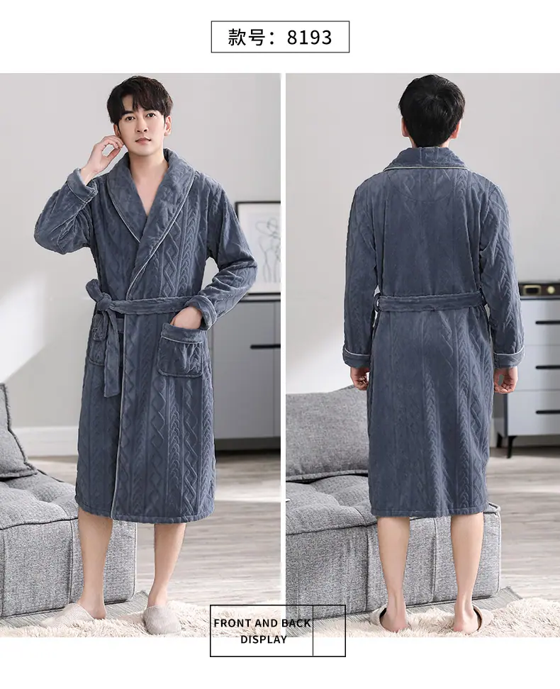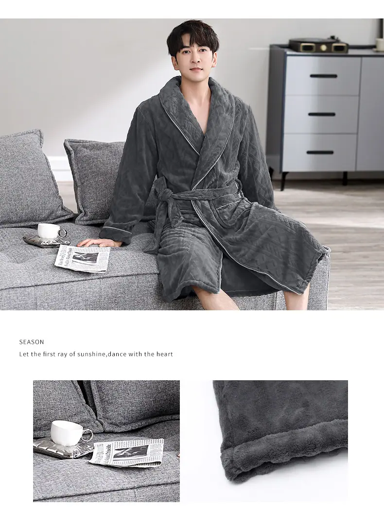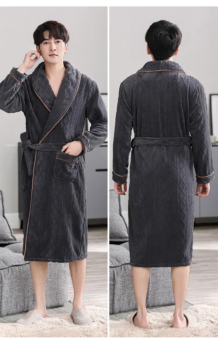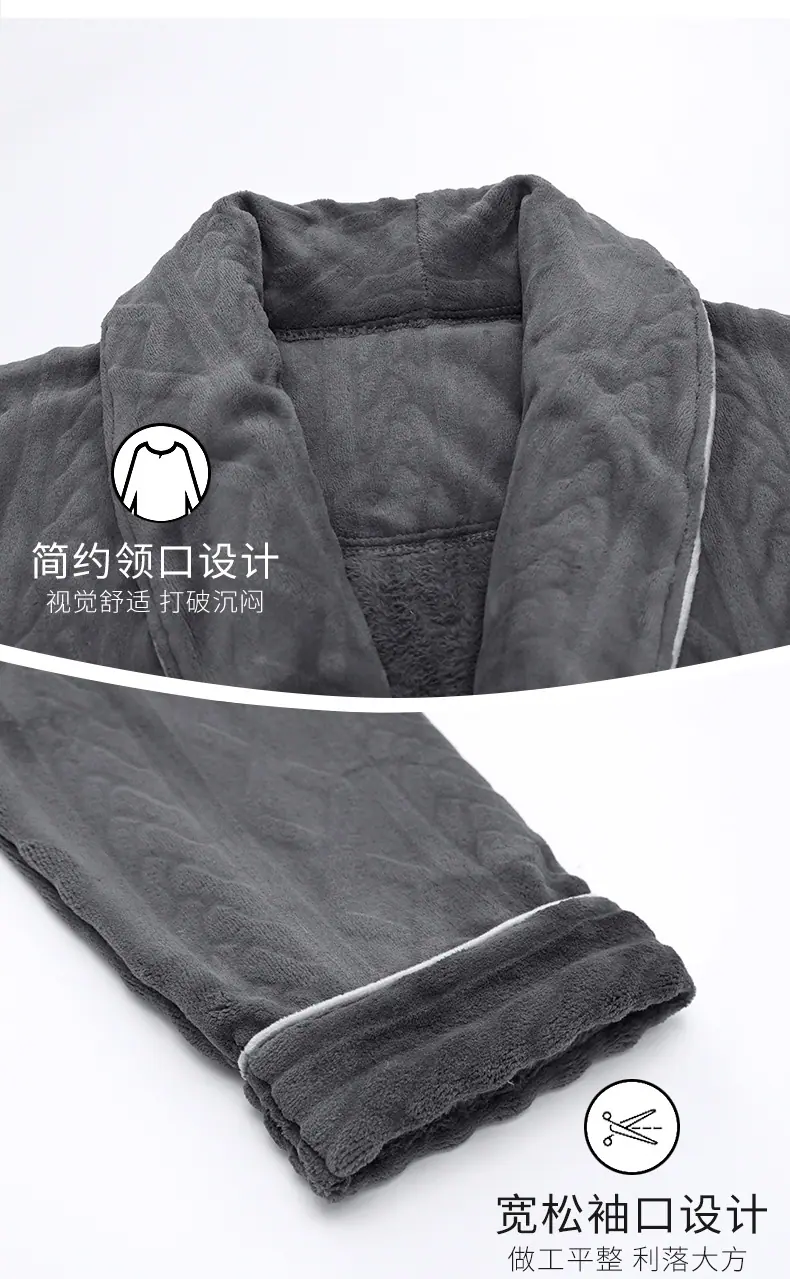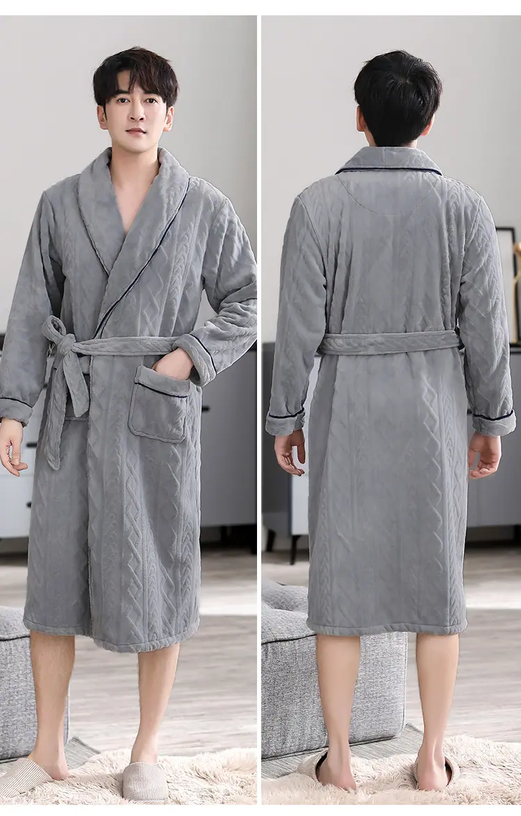 Bata Sólida para Hombre Otoño Invierno Media Longitud Gruesa Cálida Talla Grande Invierno Forro Polar Coral Bata Yukata Ropa para el Hogar