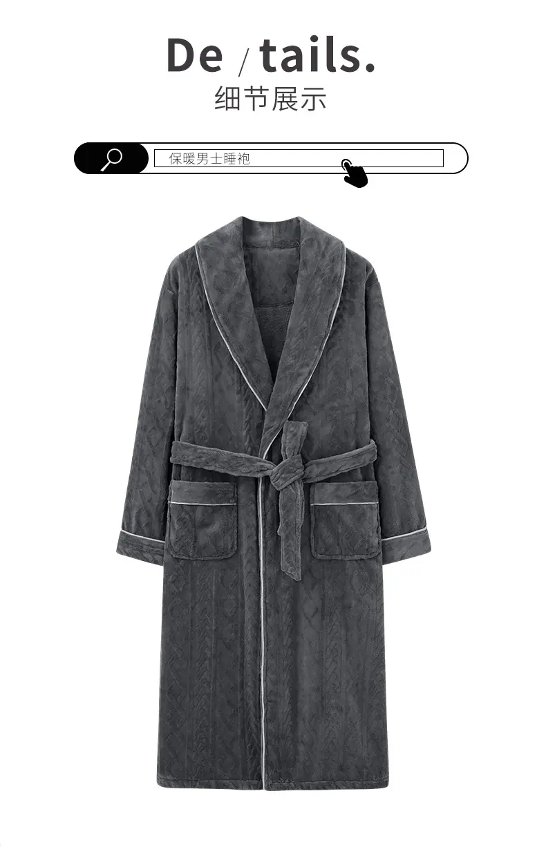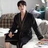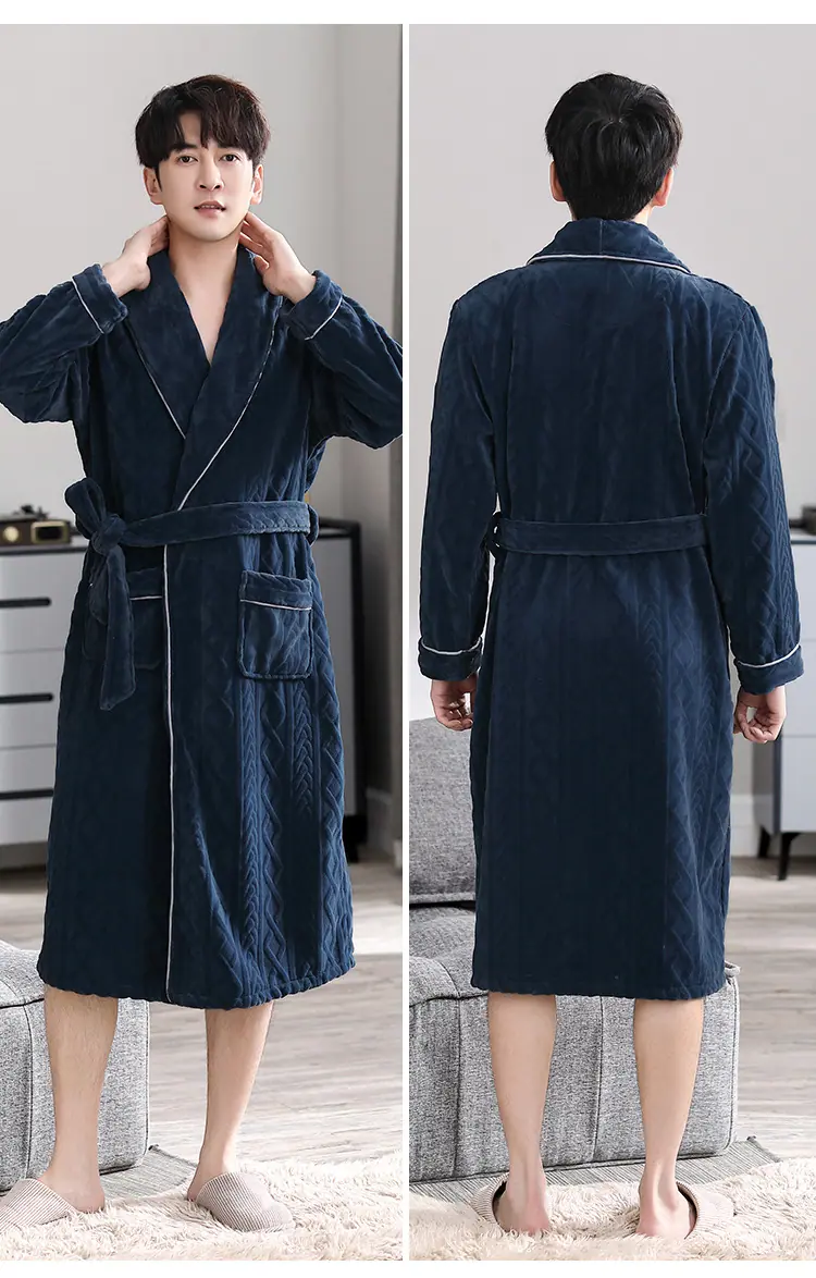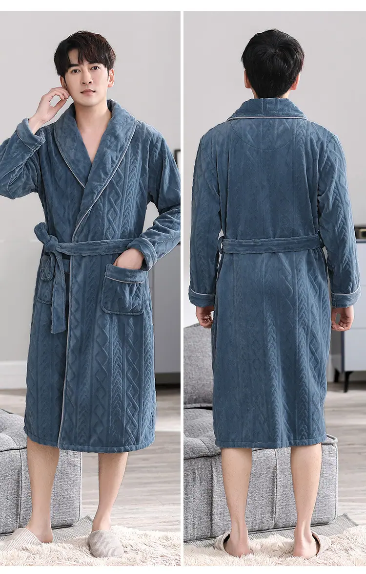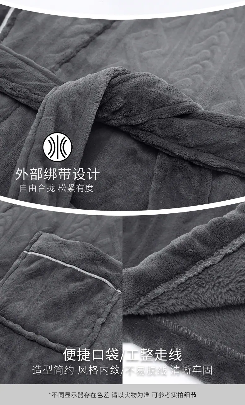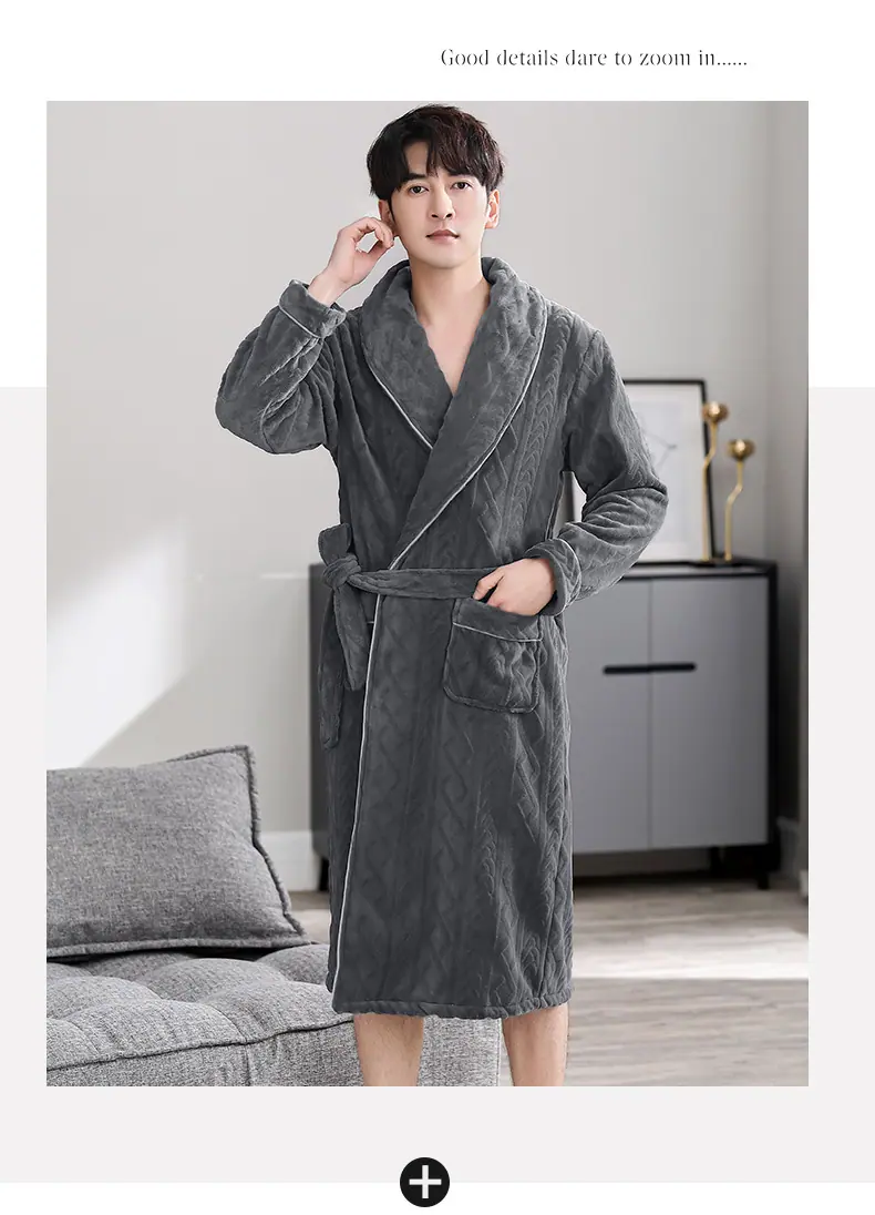 Bata Sólida para Hombre Otoño Invierno Media Longitud Gruesa Cálida Talla Grande Invierno Forro Polar Coral Bata Yukata Ropa para el Hogar