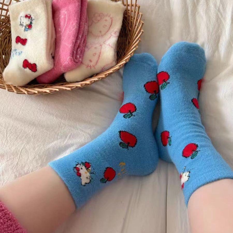 Calcetines de Media Caña para Mujer Otoño Invierno Gruesos Cálidos para Dormir Calcetines de Piso Felpa Lindo Dibujo Animado Calcetines de Piso para Casa