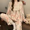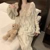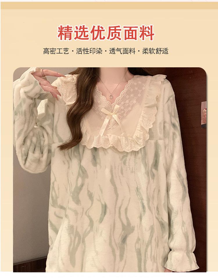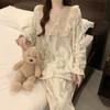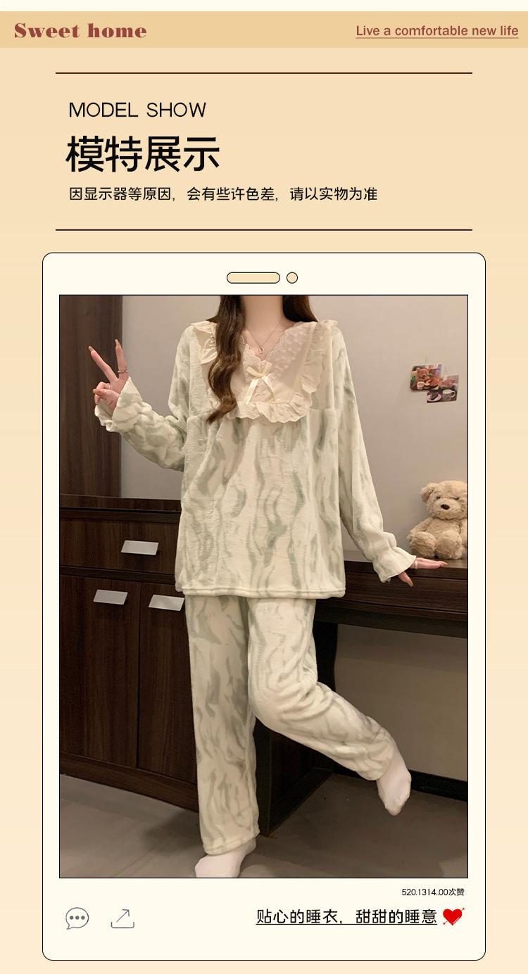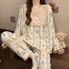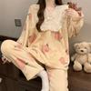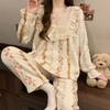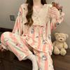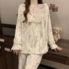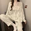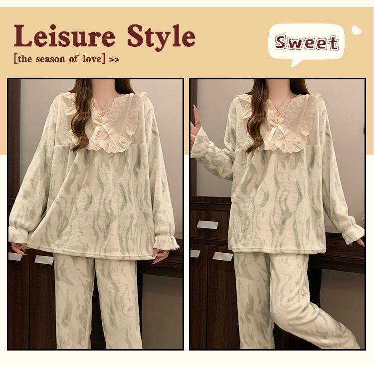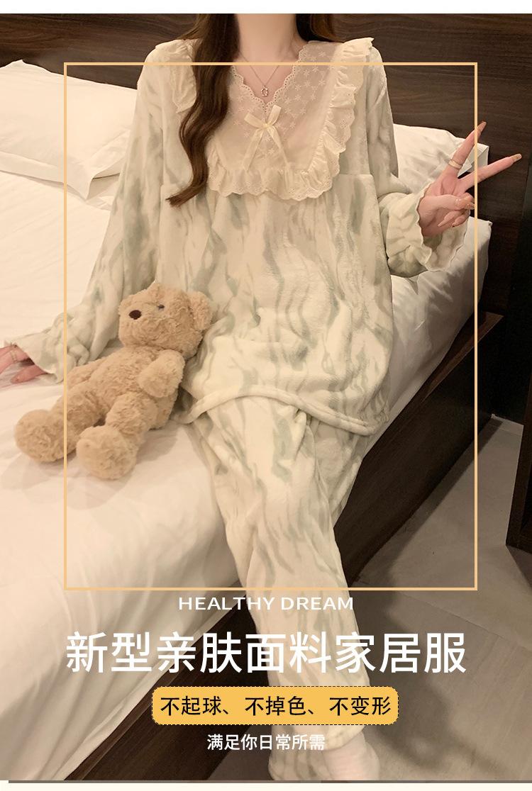 Invierno Nuevo Pijama de Franela Mujer Estilo Coreano Viento de Princesa Damas Encaje Cuello en V Jersey Dulce Ropa de Casa