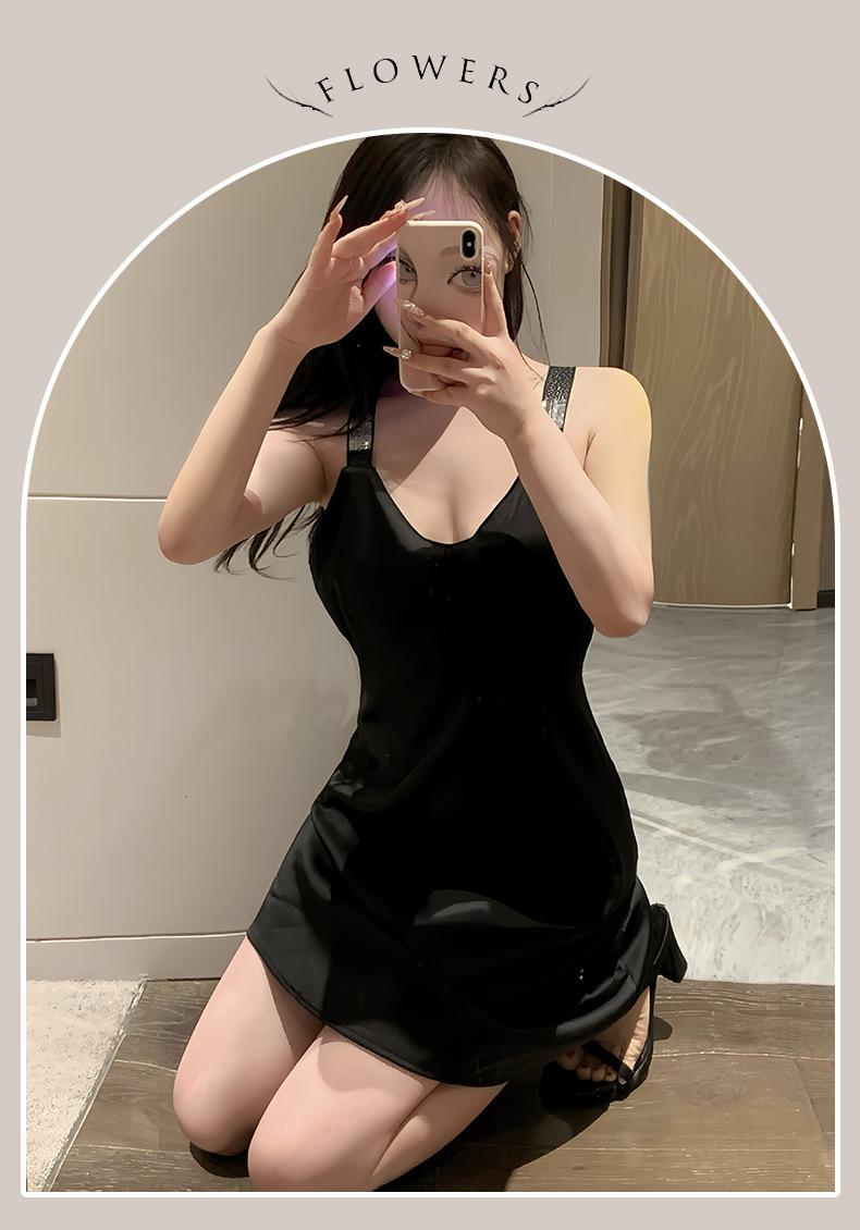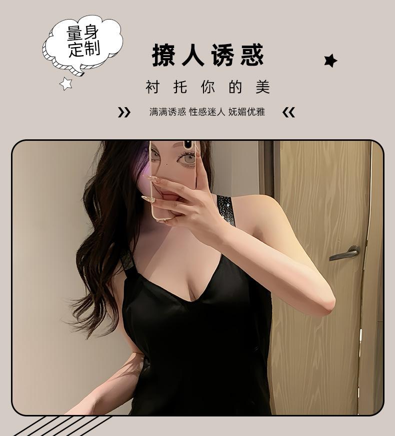 Camisón de Satén de Verano Primavera Delgado de Tirantes Sexy Pijama de Seda Sintética Holgado Ropa de Casa 8878