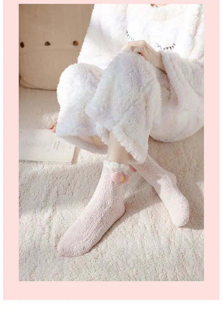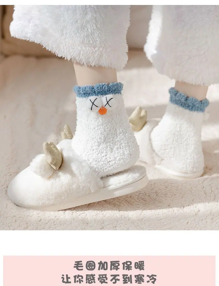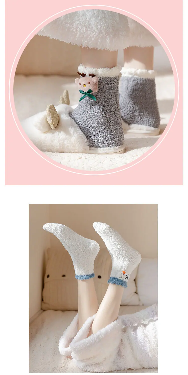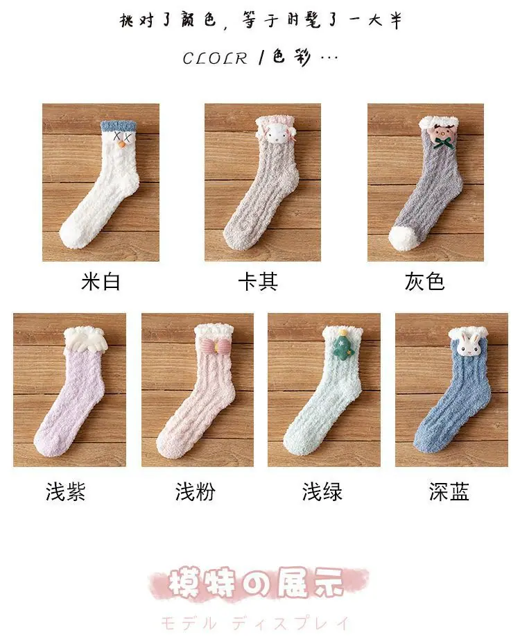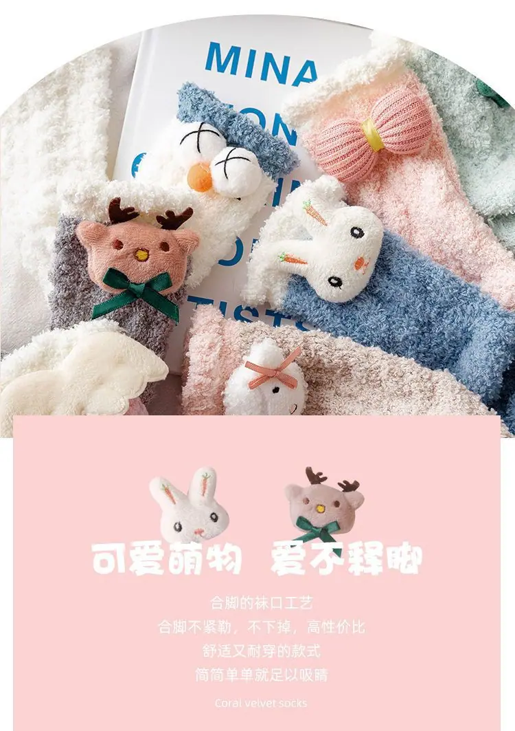 Calcetines de forro polar coral para mujer invierno engrosados cálidos para casa piso posparto calcetines de media pantorrilla calcetines para dormir esponjosos lindos