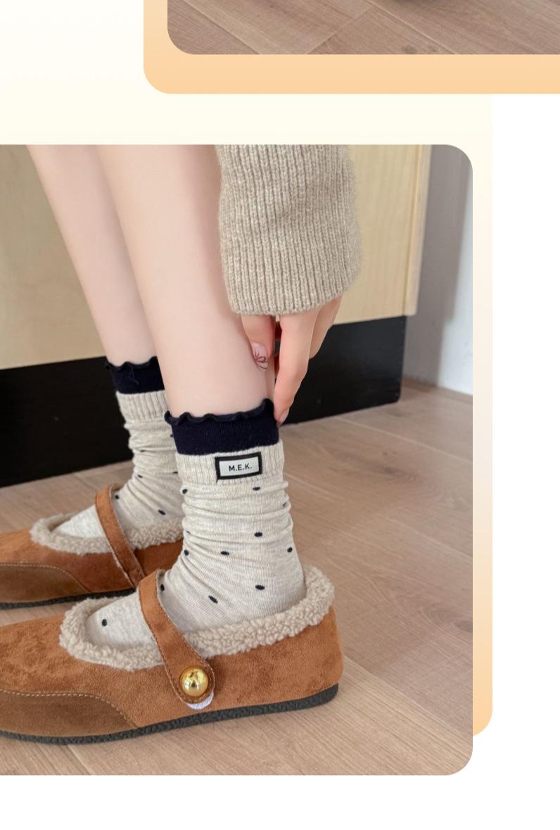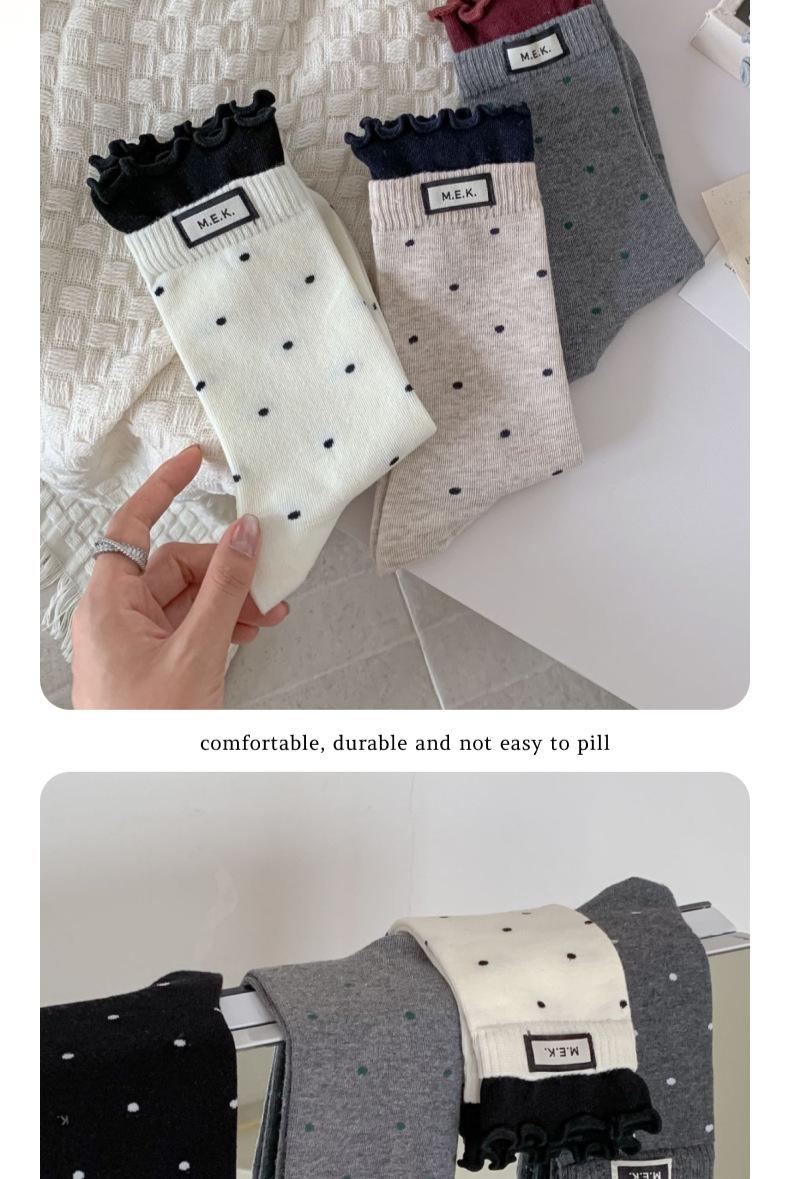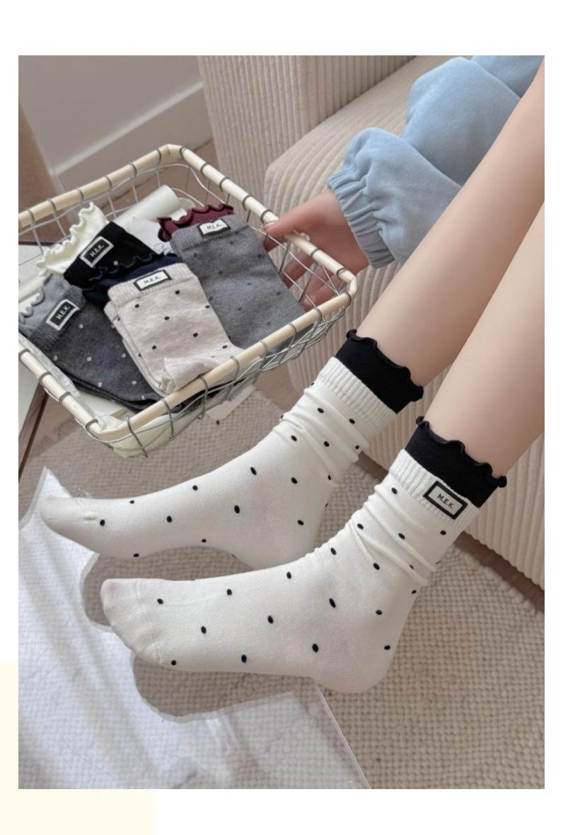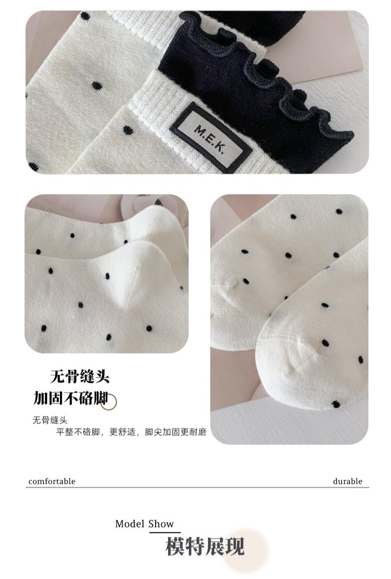 Calcetines de Media Caña de Otoño e Invierno con Borde de Hongo y Lunares, Versátiles, Diseño de Etiqueta de Tela Inglesa con Encaje, Calcetines para Mujer, Calcetines de Algodón Simples y Casuales